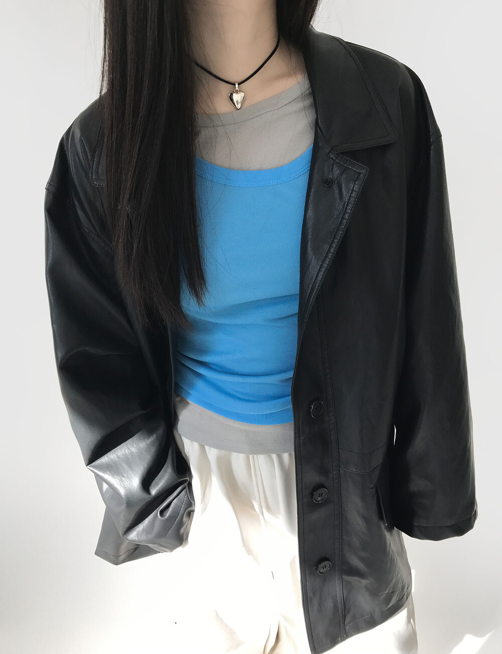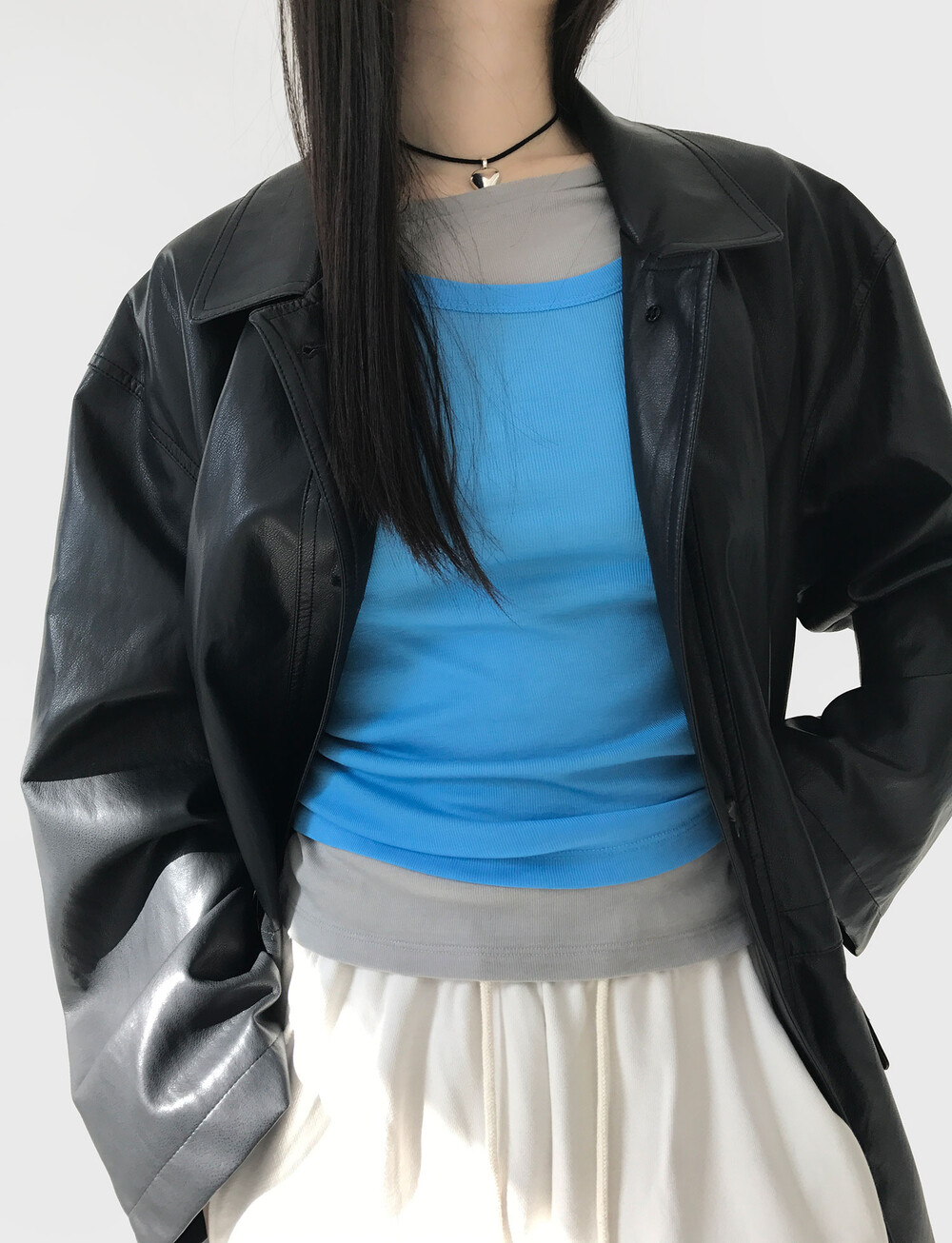 소재에서 오는 은은함 덕분에 어떤 아이템들과 매치해도 그 아이템을 돋보이게 해준다고 해야할까요? 같은 탑을 컬러만 다르게 해서 레이어드 해도 정말 멋스럽고, 탱크탑들과 매치해도 참 예쁜 제품입니다. 단독으로 입었을 때도 예쁜 제품이에요.