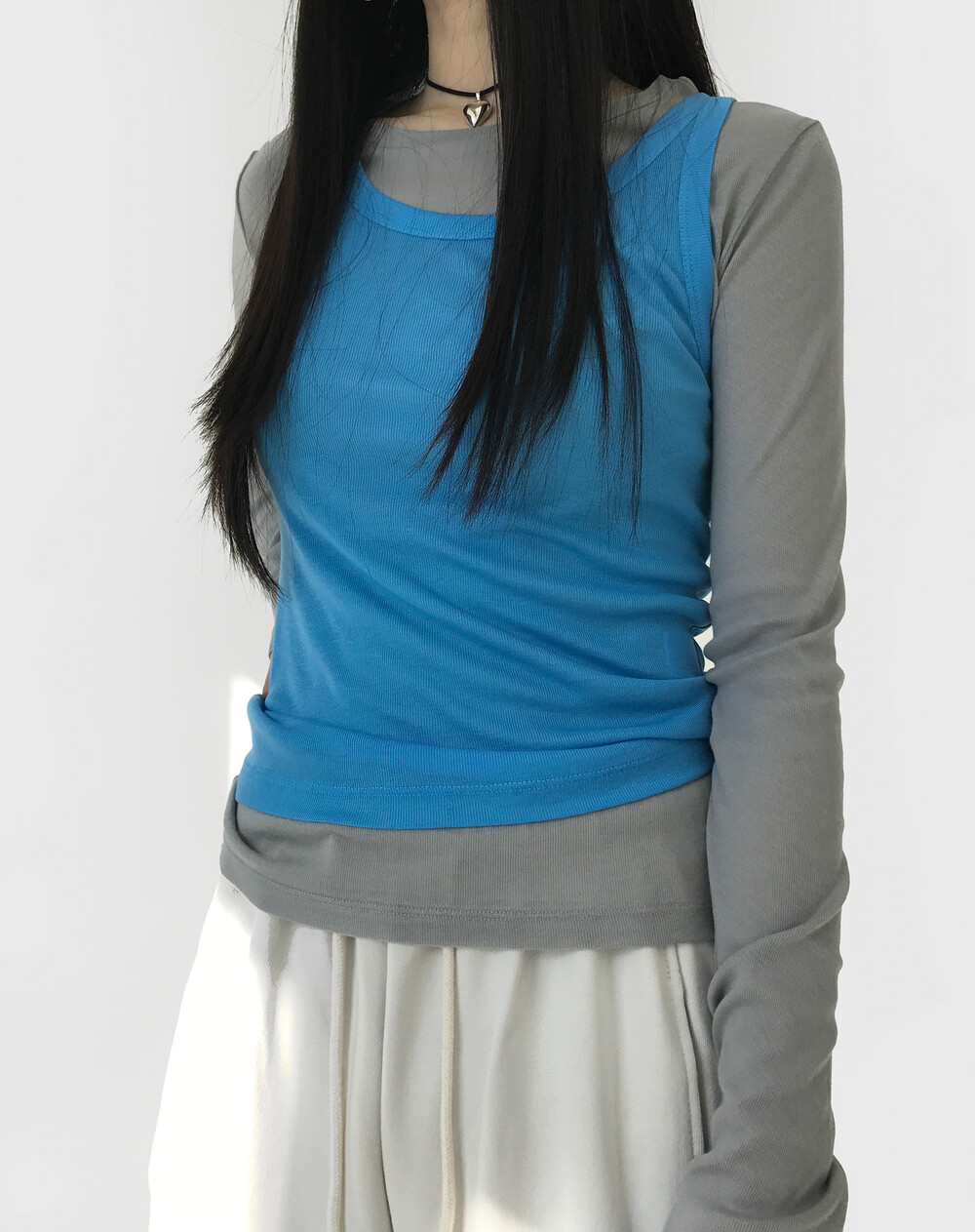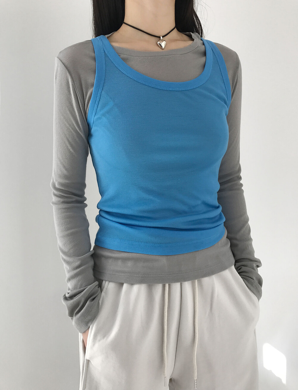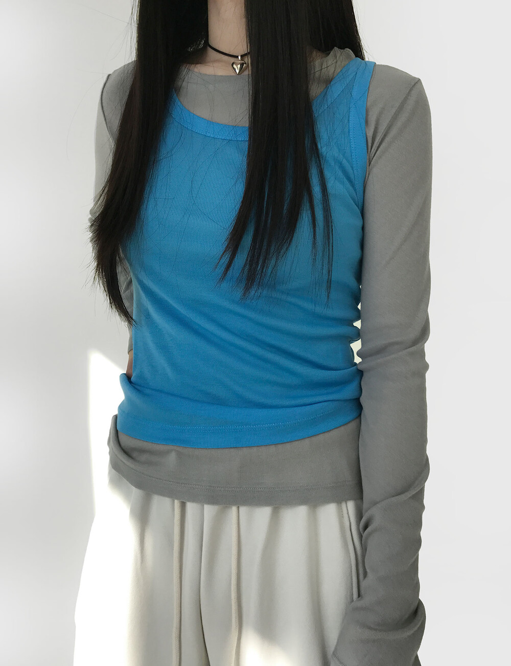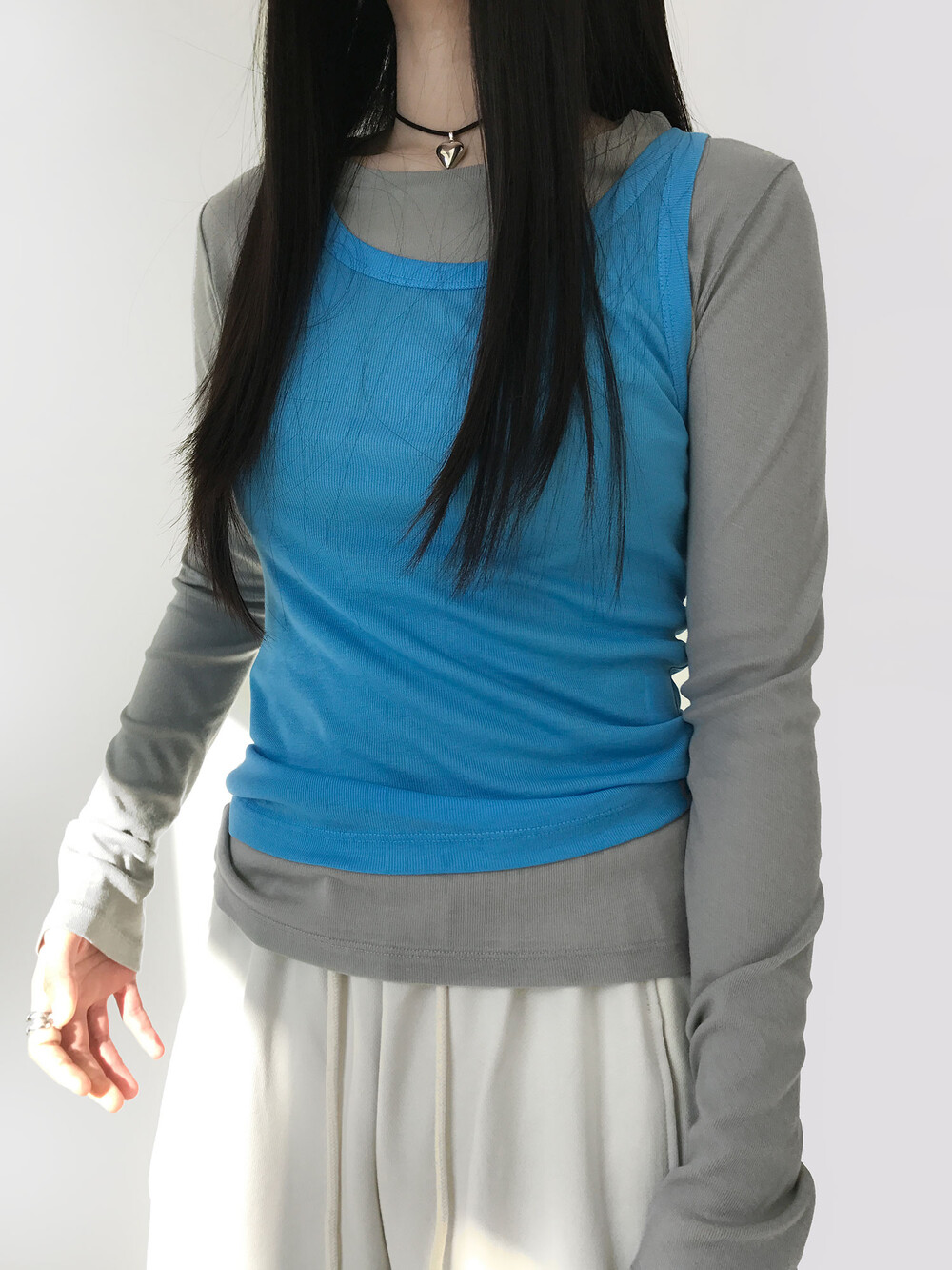 그 중 '선 페일 슬림 탑'은 가장 평소에 데일리 아이템으로 매치하기 좋은 제품이에요.