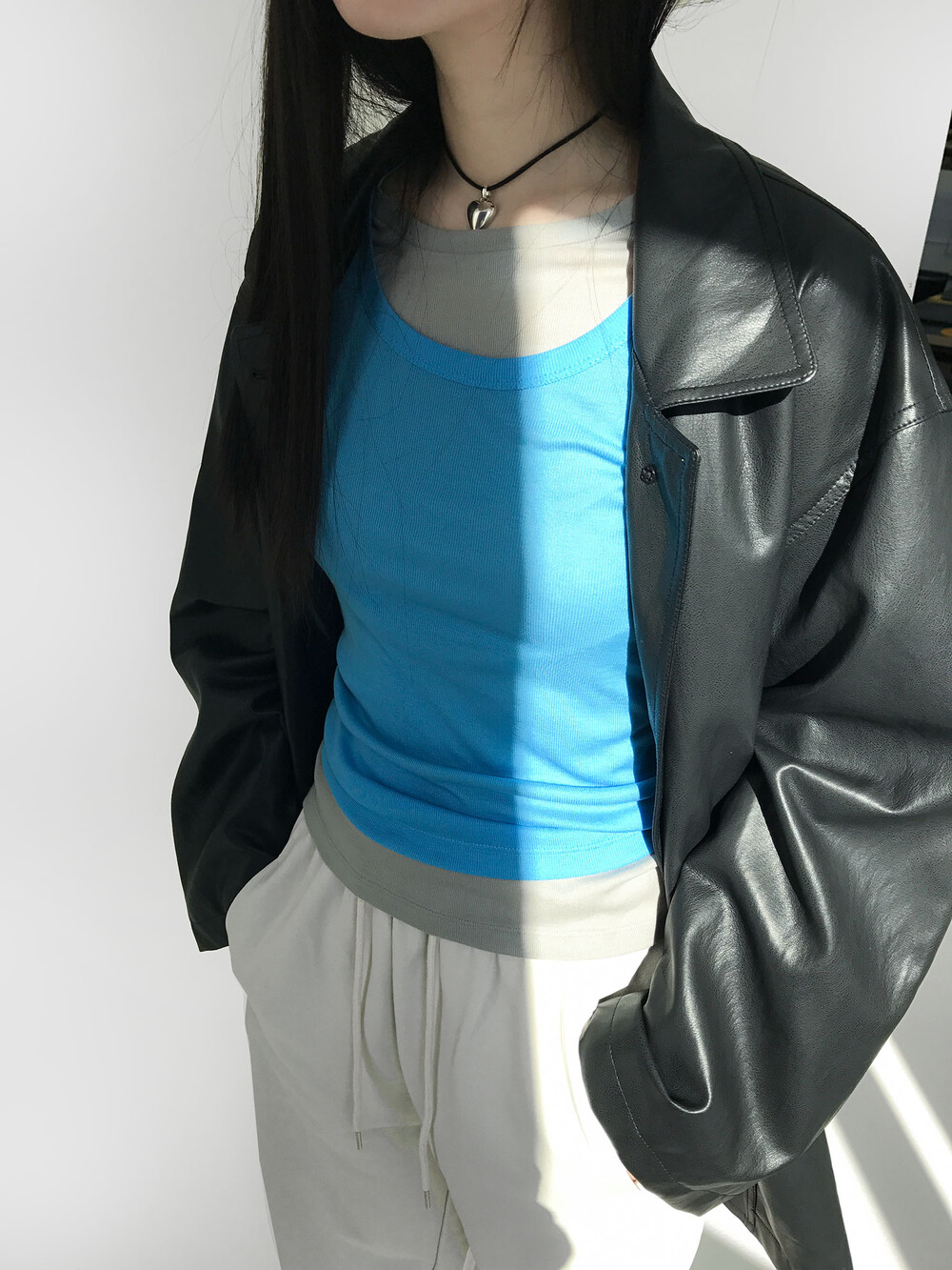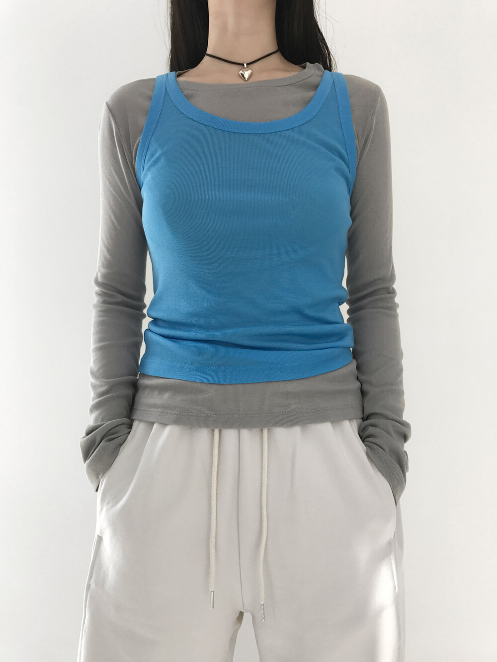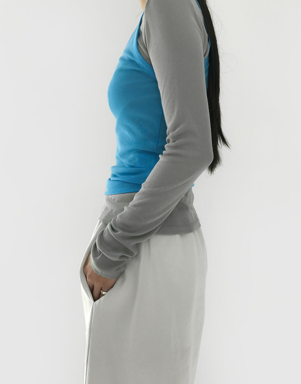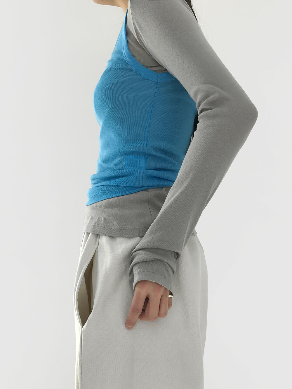 그 중 '선 페일 슬림 탑'은 가장 평소에 데일리 아이템으로 매치하기 좋은 제품이에요.