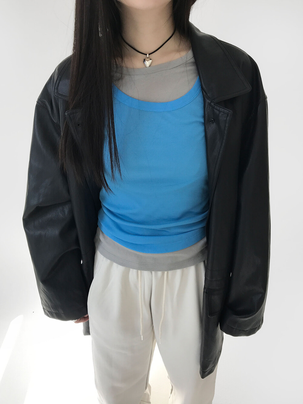 제가 이번 시즌 아이템 중 가장 많이 입었던 제품 중 하나기도 한데요. 저는 기본적으로 목부분이 답답한걸 선호하지 않아요. 이 페일 슬림 탑은 네크라인이 여유로워서 착용했을 때 그냥 전체적으로 하나도 불편함이 없었던 아이템이에요.