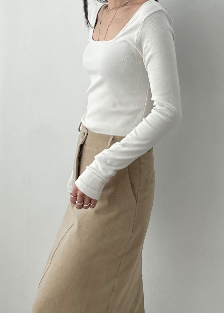 (마지막프리오더/단독진행) SOFT RIBBED SQUARE NECK TOP IN CREAM WHITE (3C)