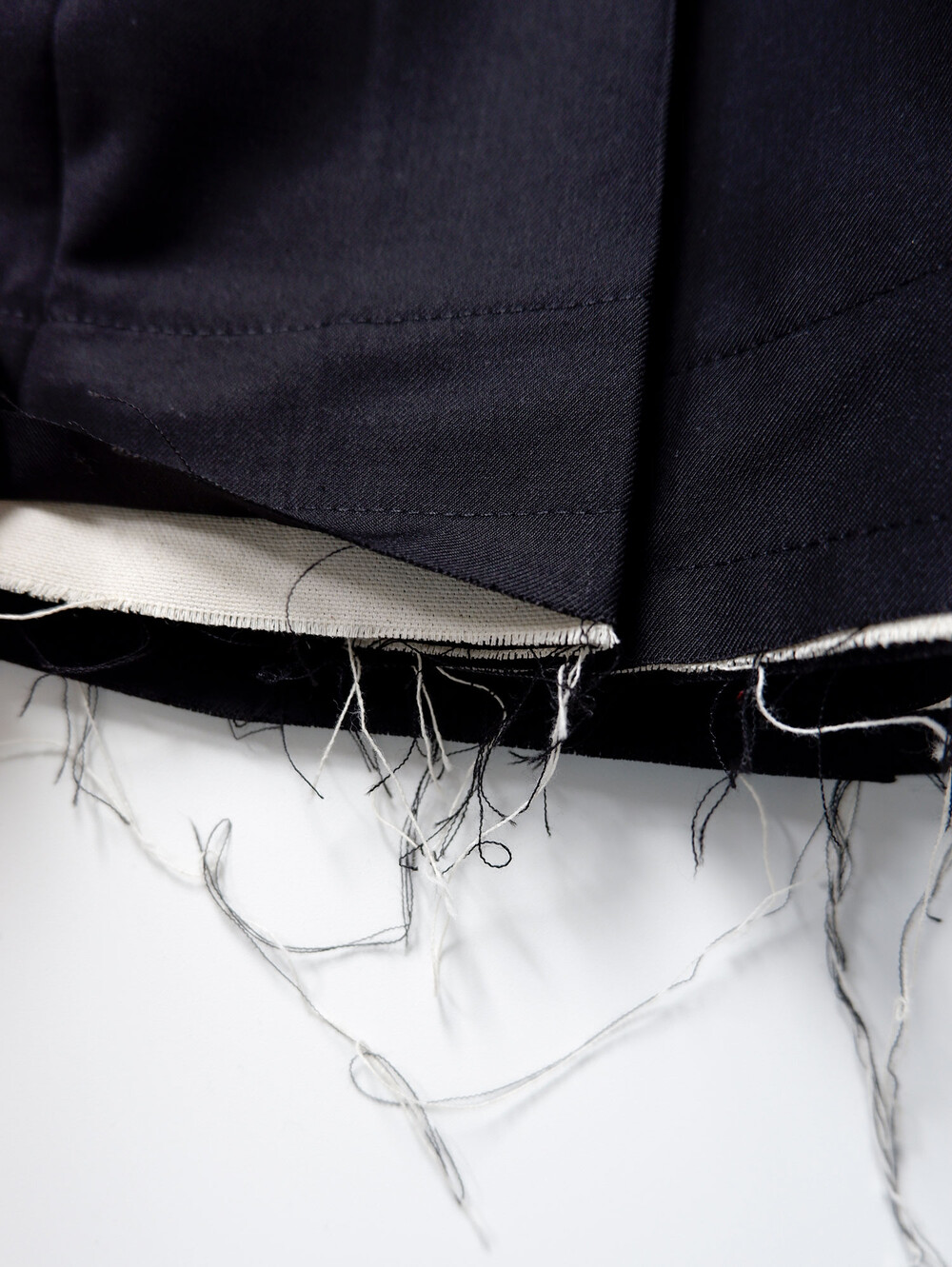 밑단 컷팅 디테일로, 밑단 부분만 3겹으로 덧대어 탄탄하게 잡아주었습니다.