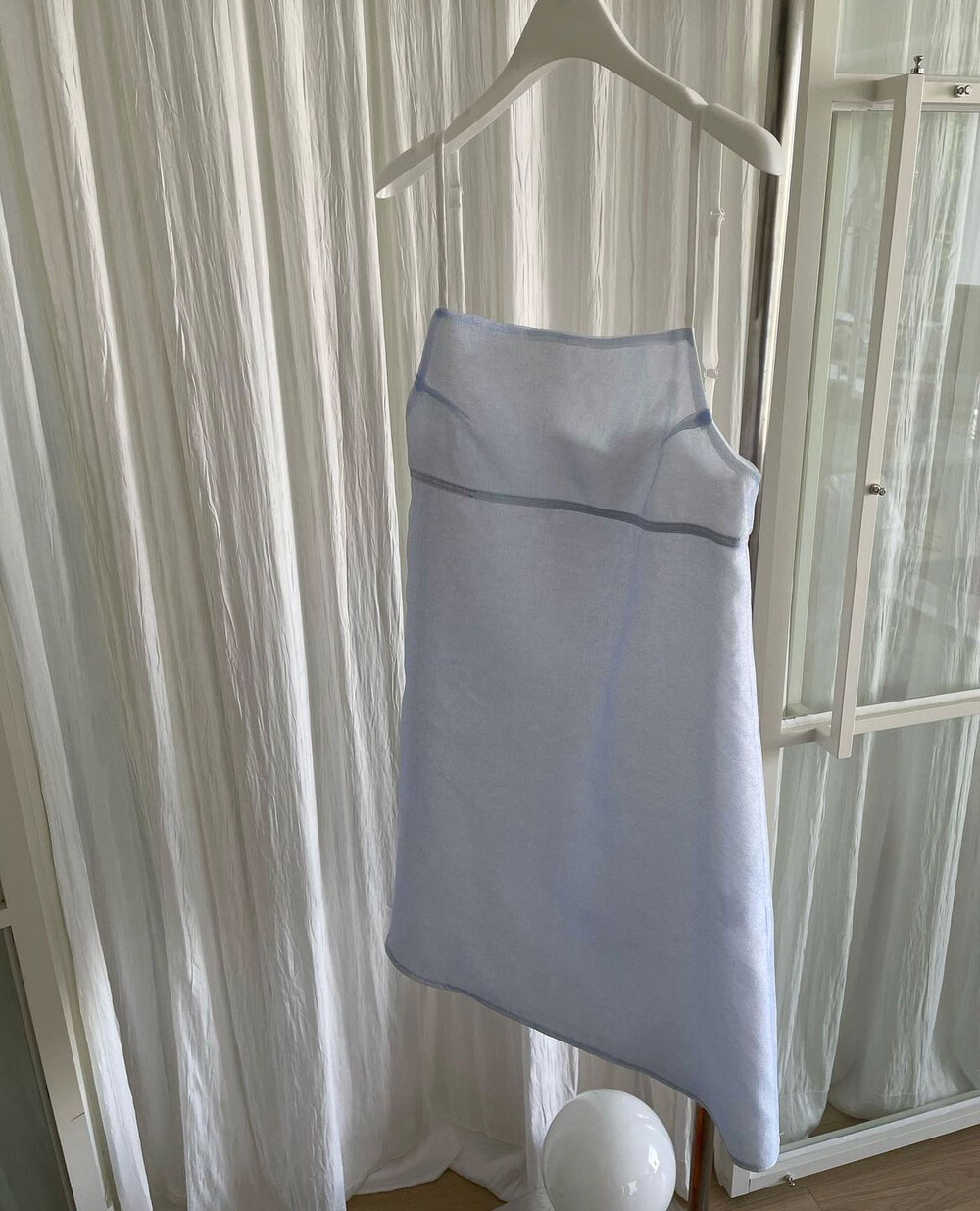 가슴 바로 밑부분에 절개 디테일 덕분에 입었을 때 굉장히 다리도 길어보이고
