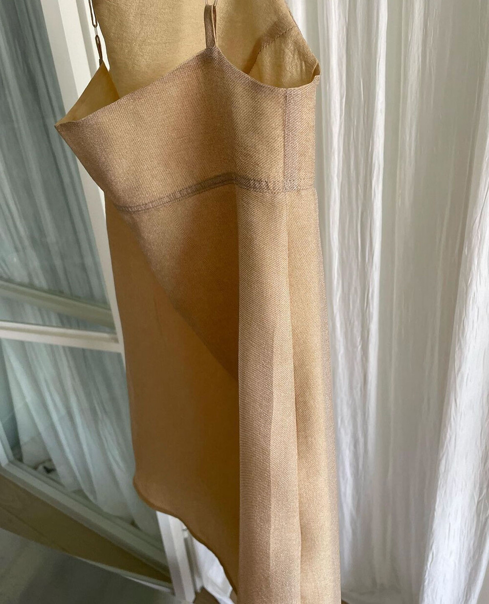 두겹으로 겹쳐 봉제해 매트한 느낌의 질감을 살린 굉장히 독특한 드레스에요.