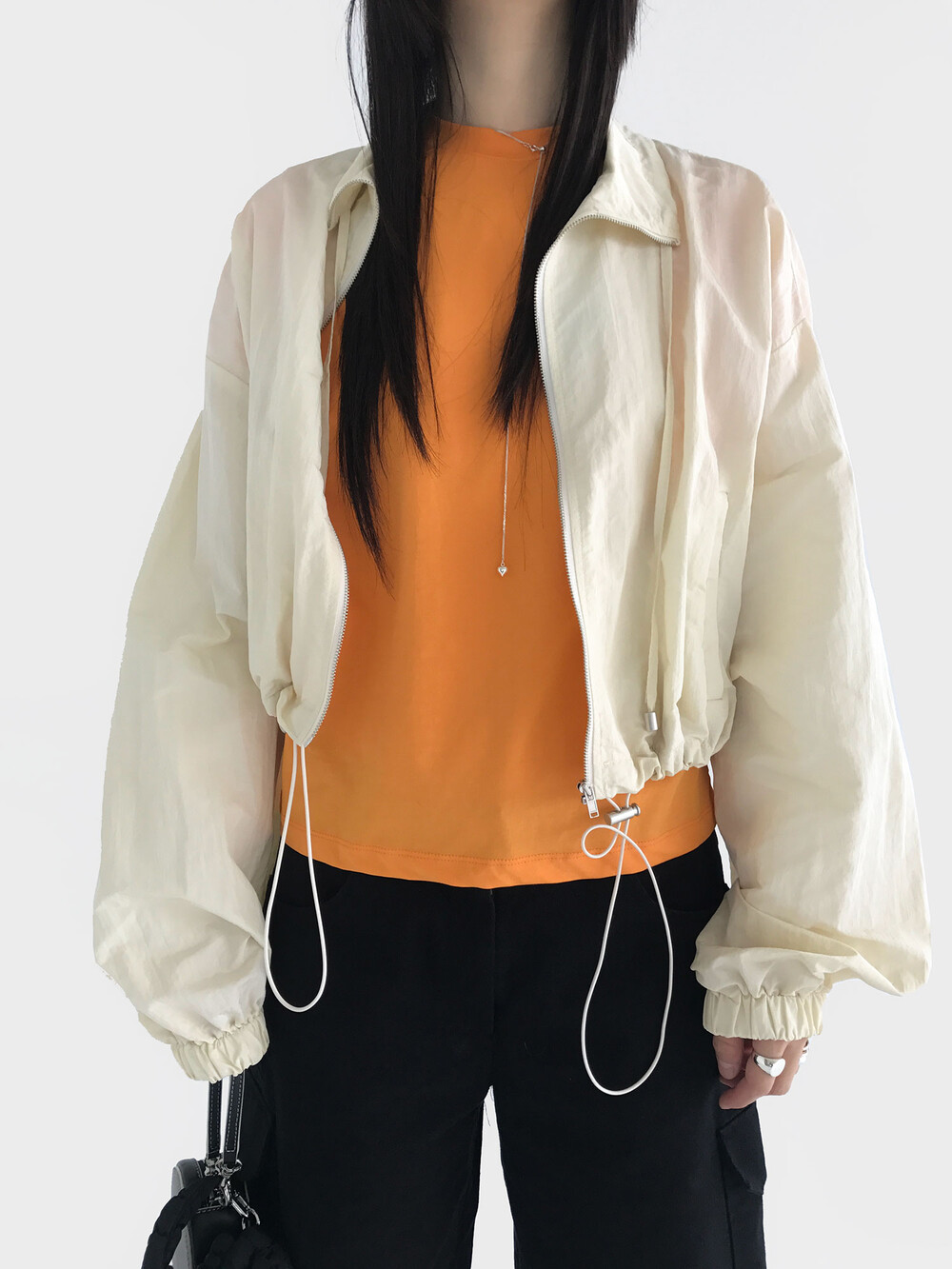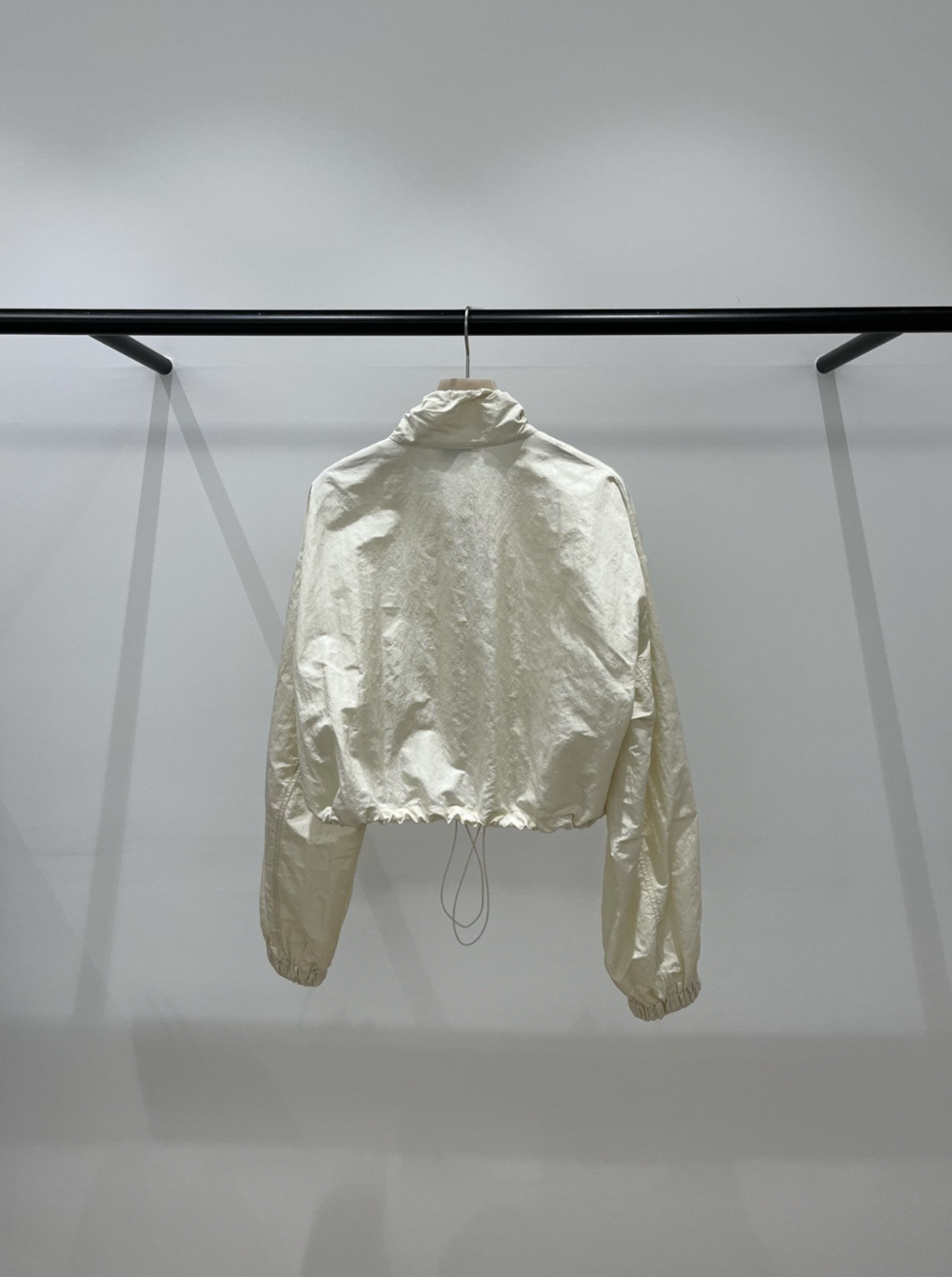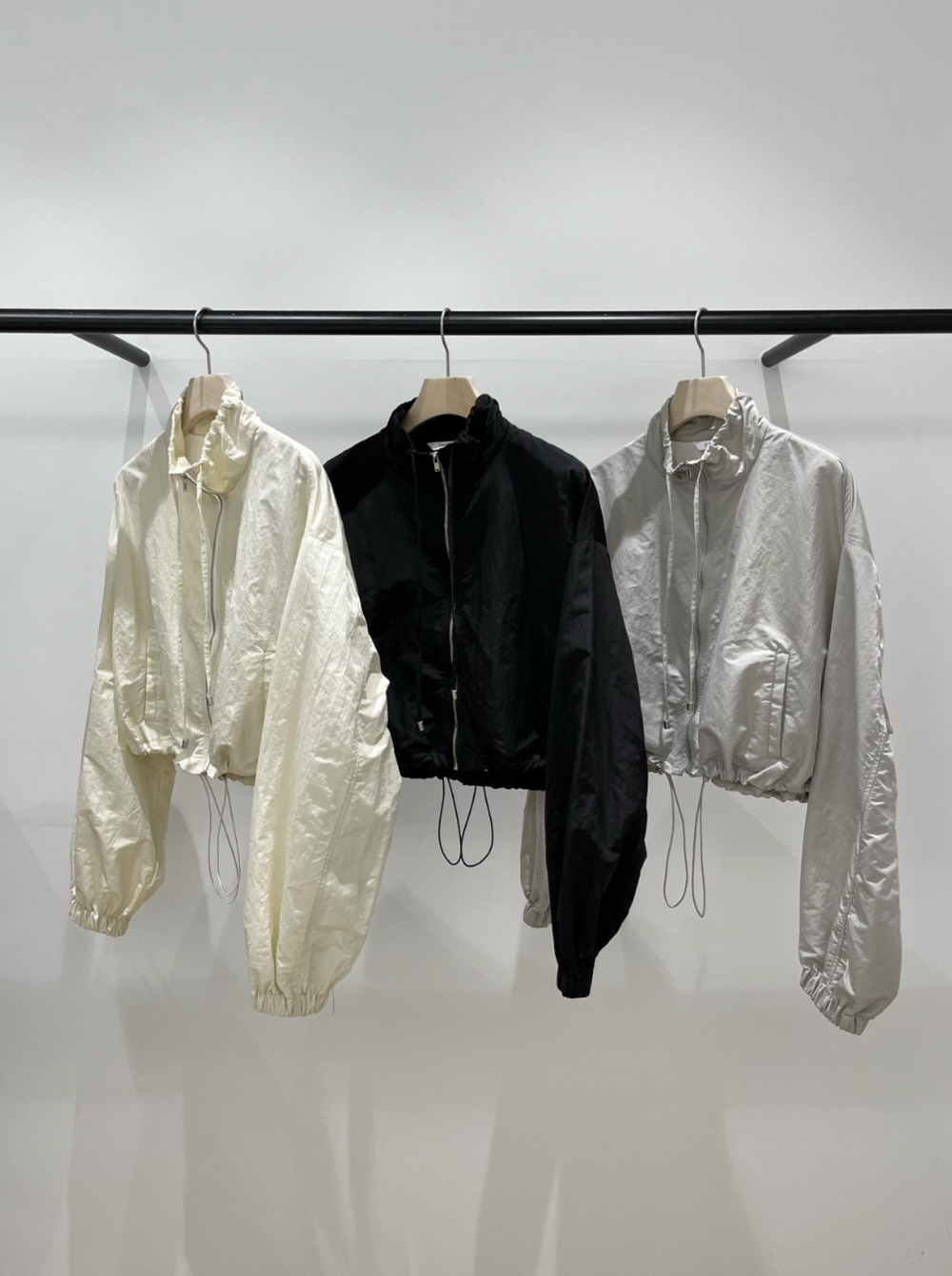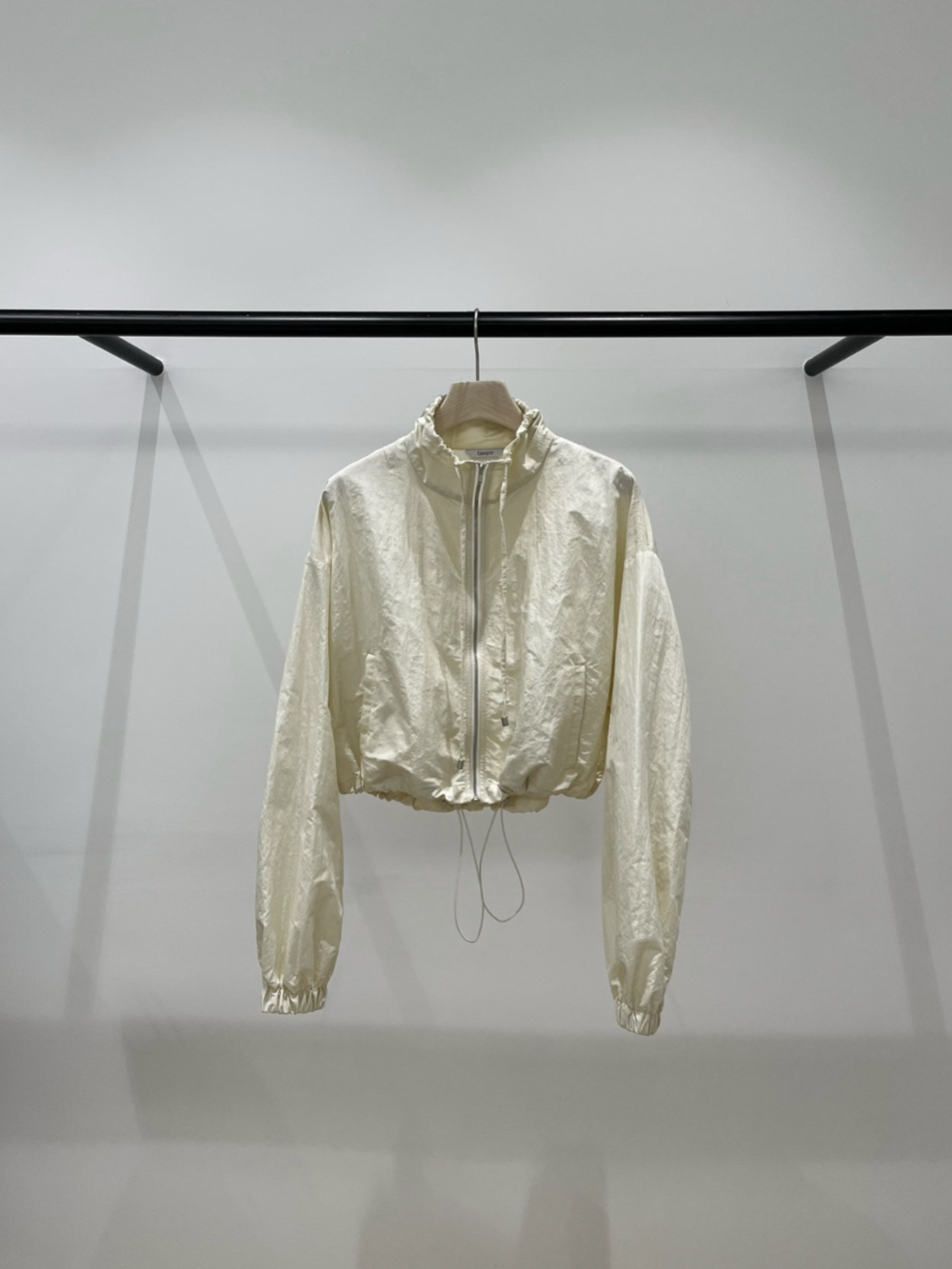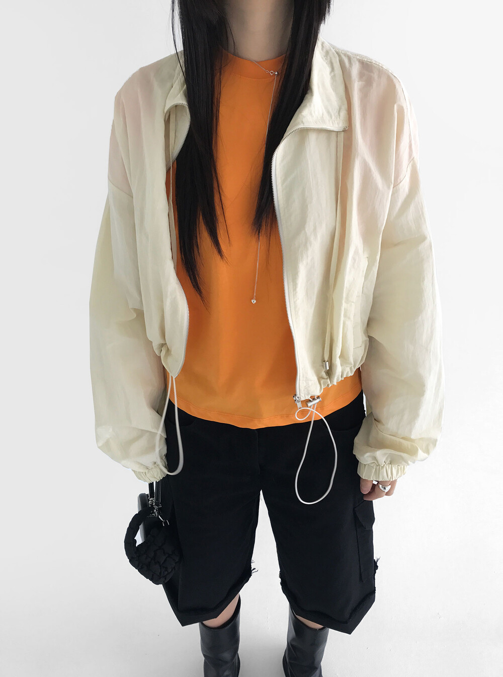 잘 접어서 가방에 넣기에도 좋은 그런 가벼운 크롭 바람막이 점퍼를 준비했어요.