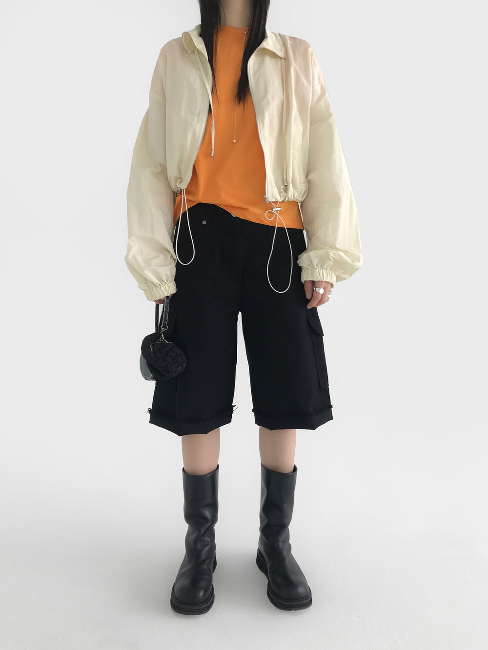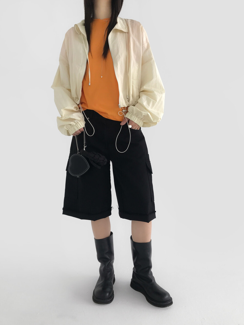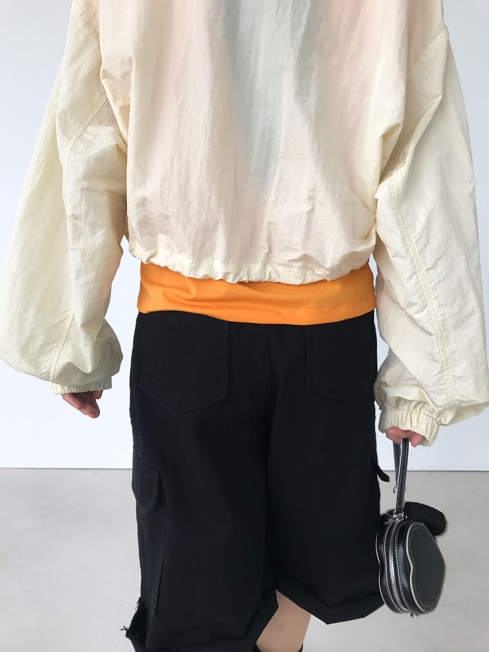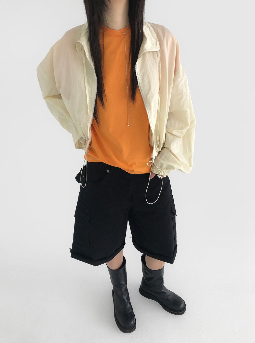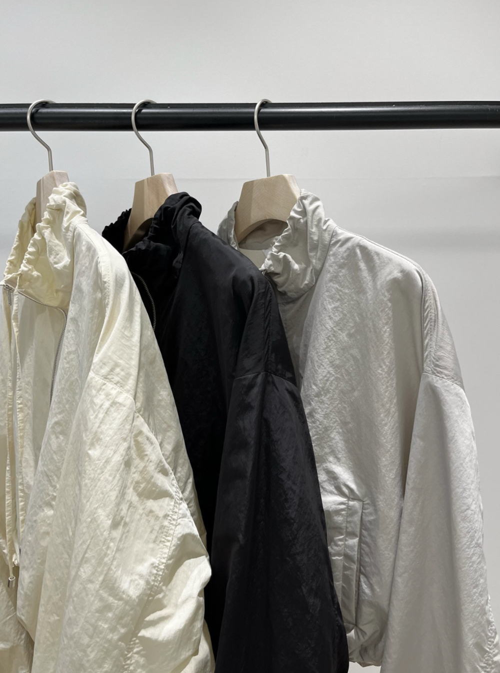 잘 접어서 가방에 넣기에도 좋은 그런 가벼운 크롭 바람막이 점퍼를 준비했어요.