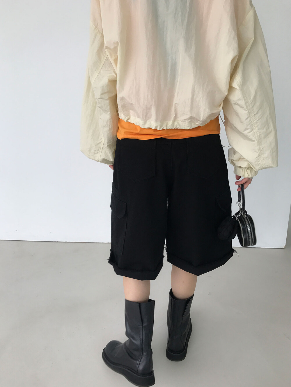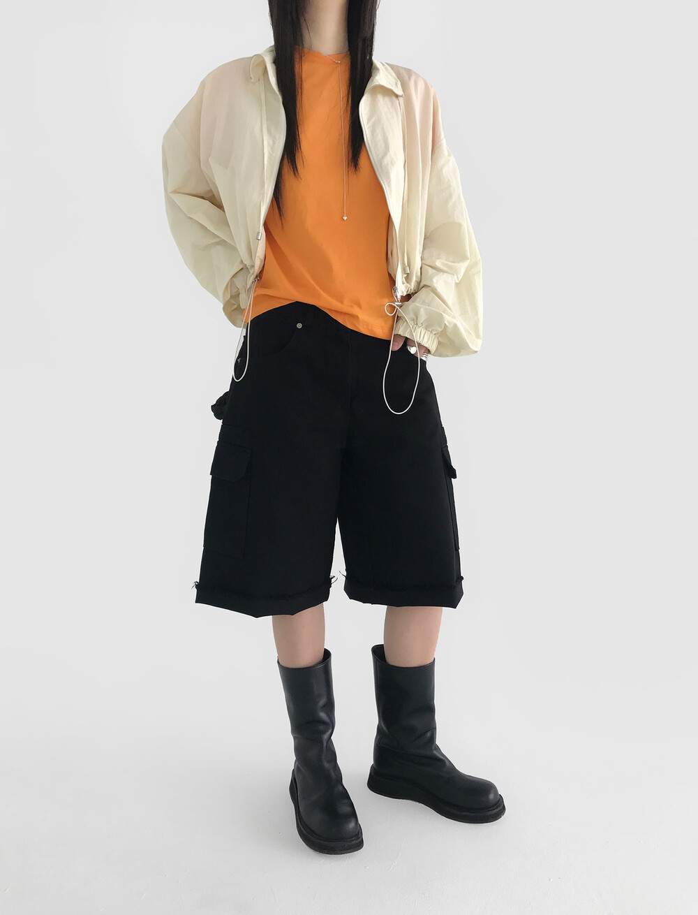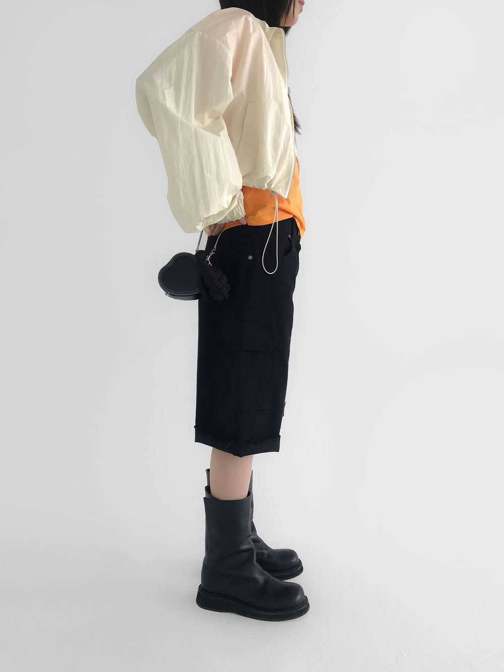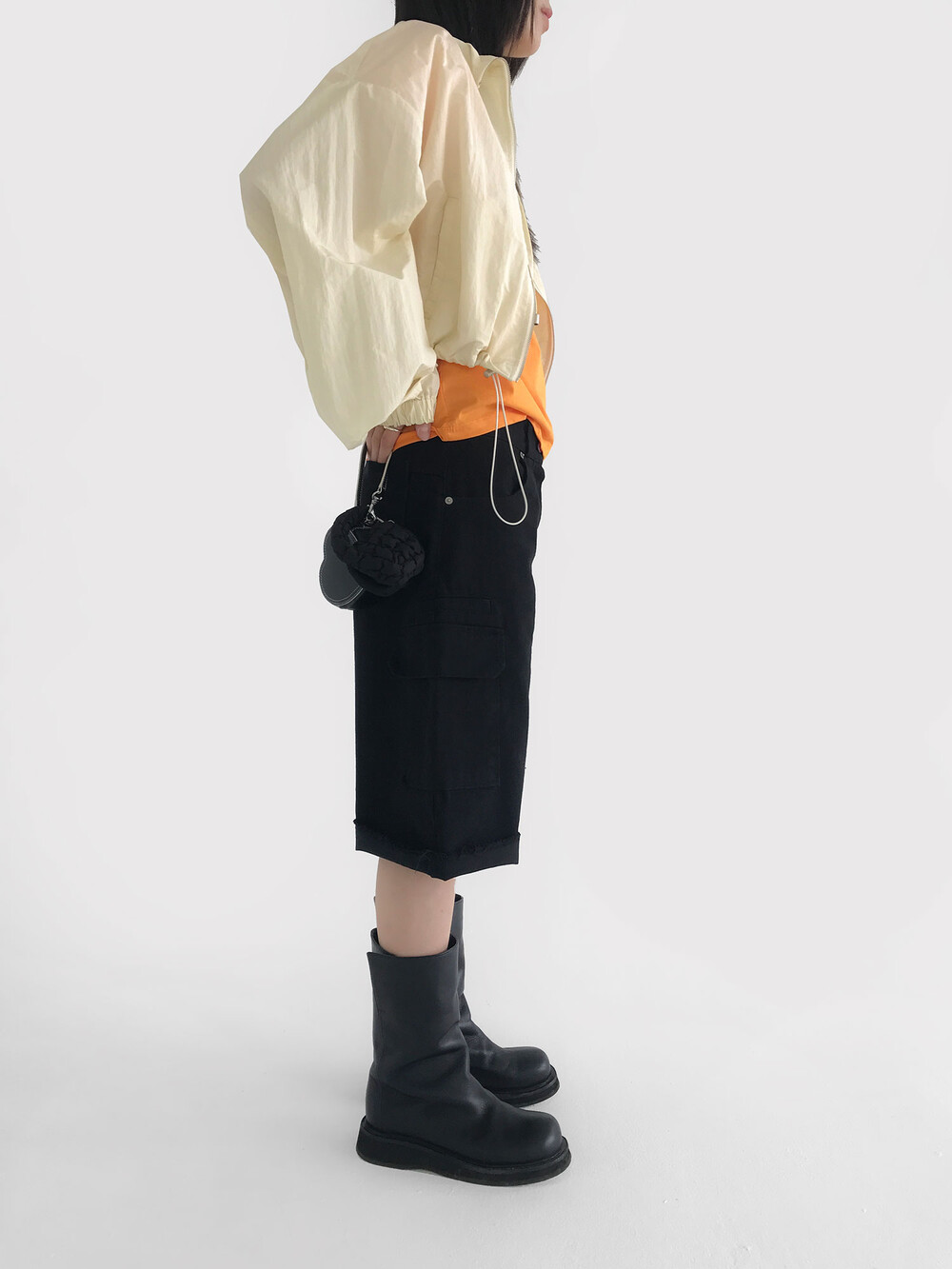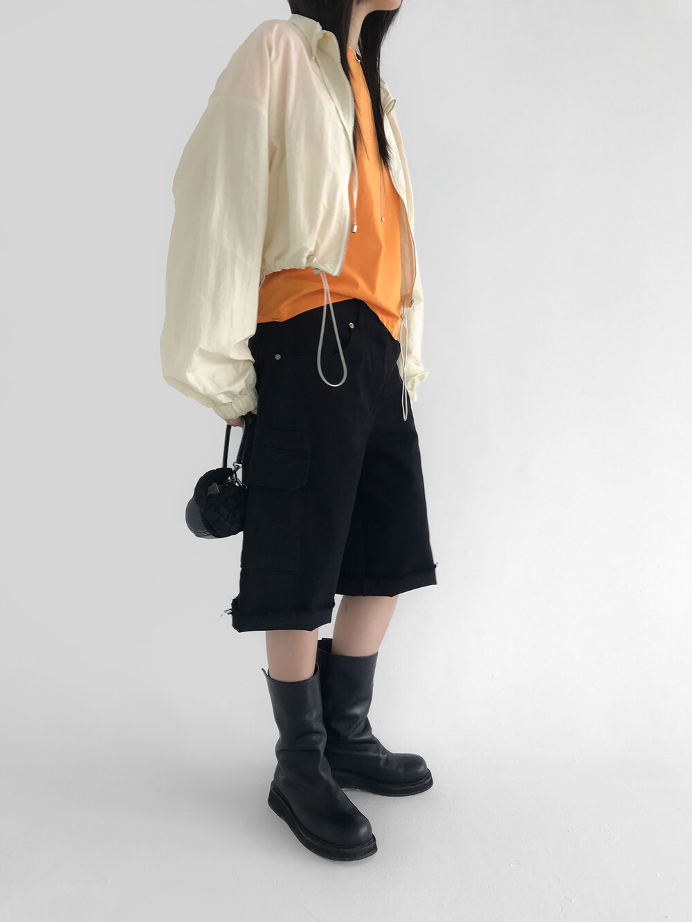 잘 접어서 가방에 넣기에도 좋은 그런 가벼운 크롭 바람막이 점퍼를 준비했어요.