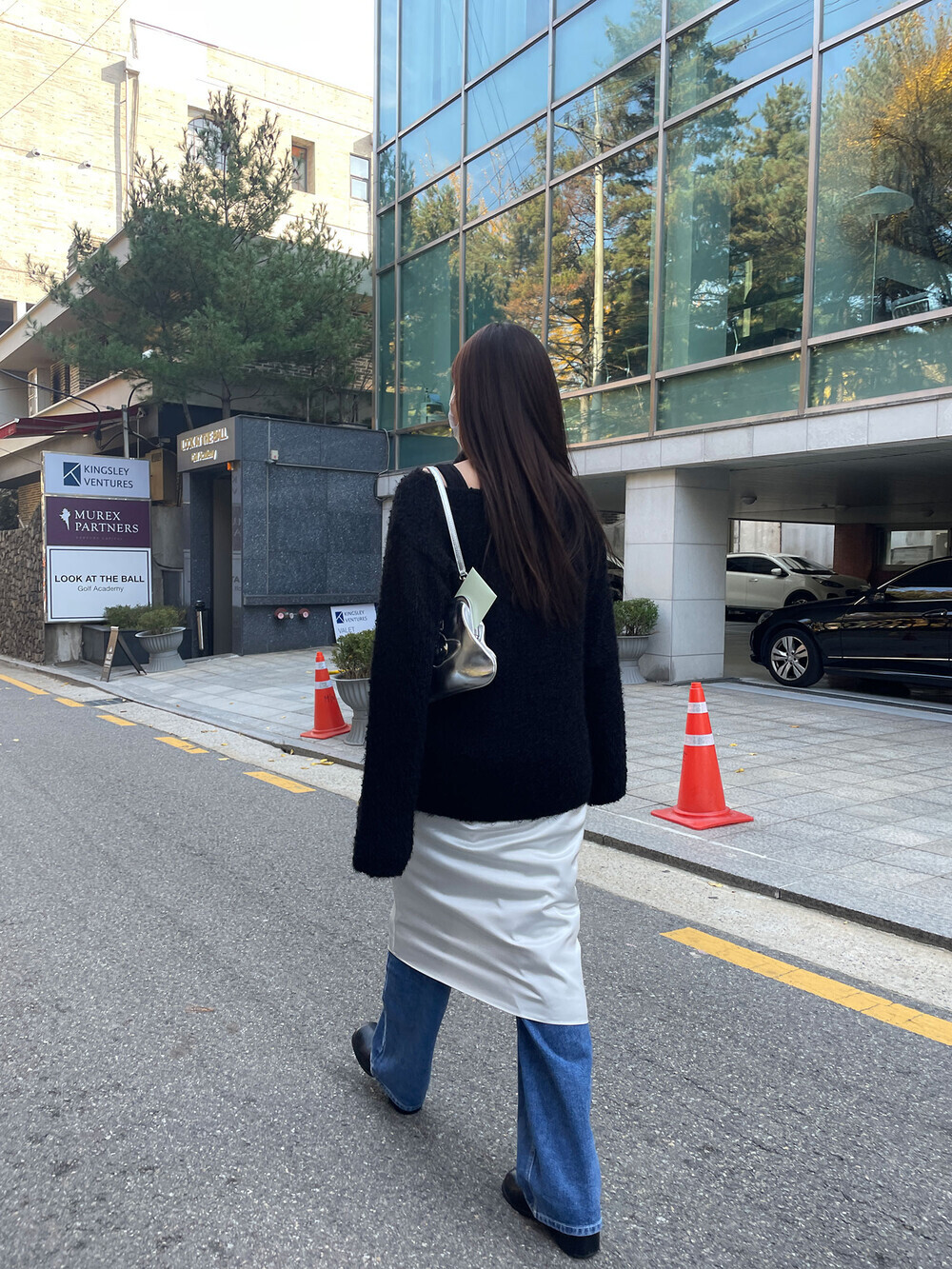 네크라인/소매/몸판 전체 시보리 없이 제끝 마감처리로 깔끔한 실루엣입니다.