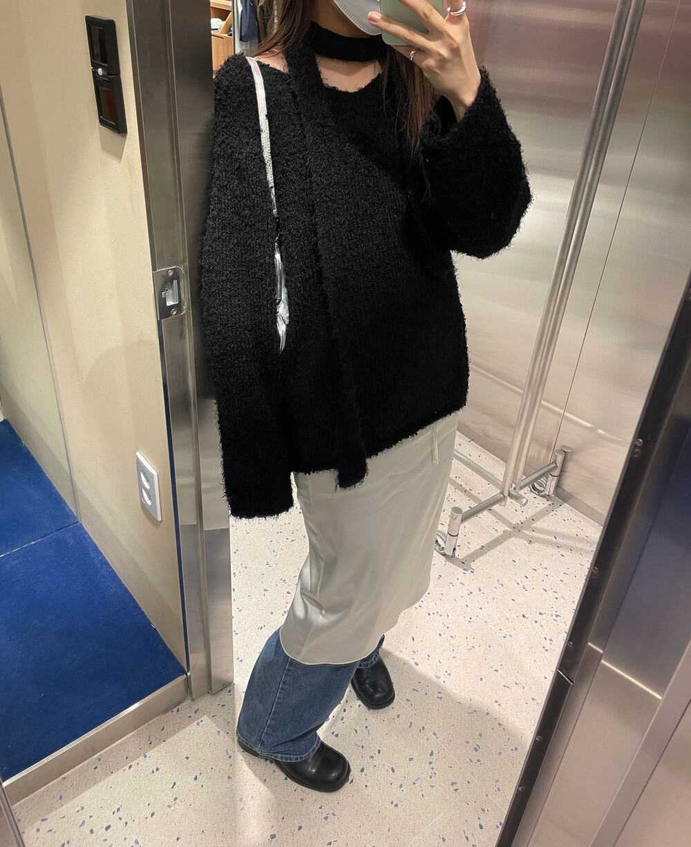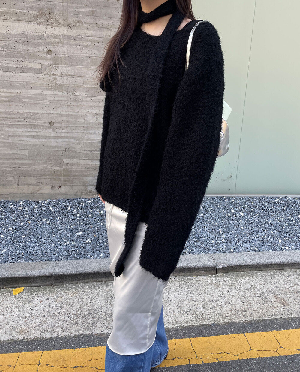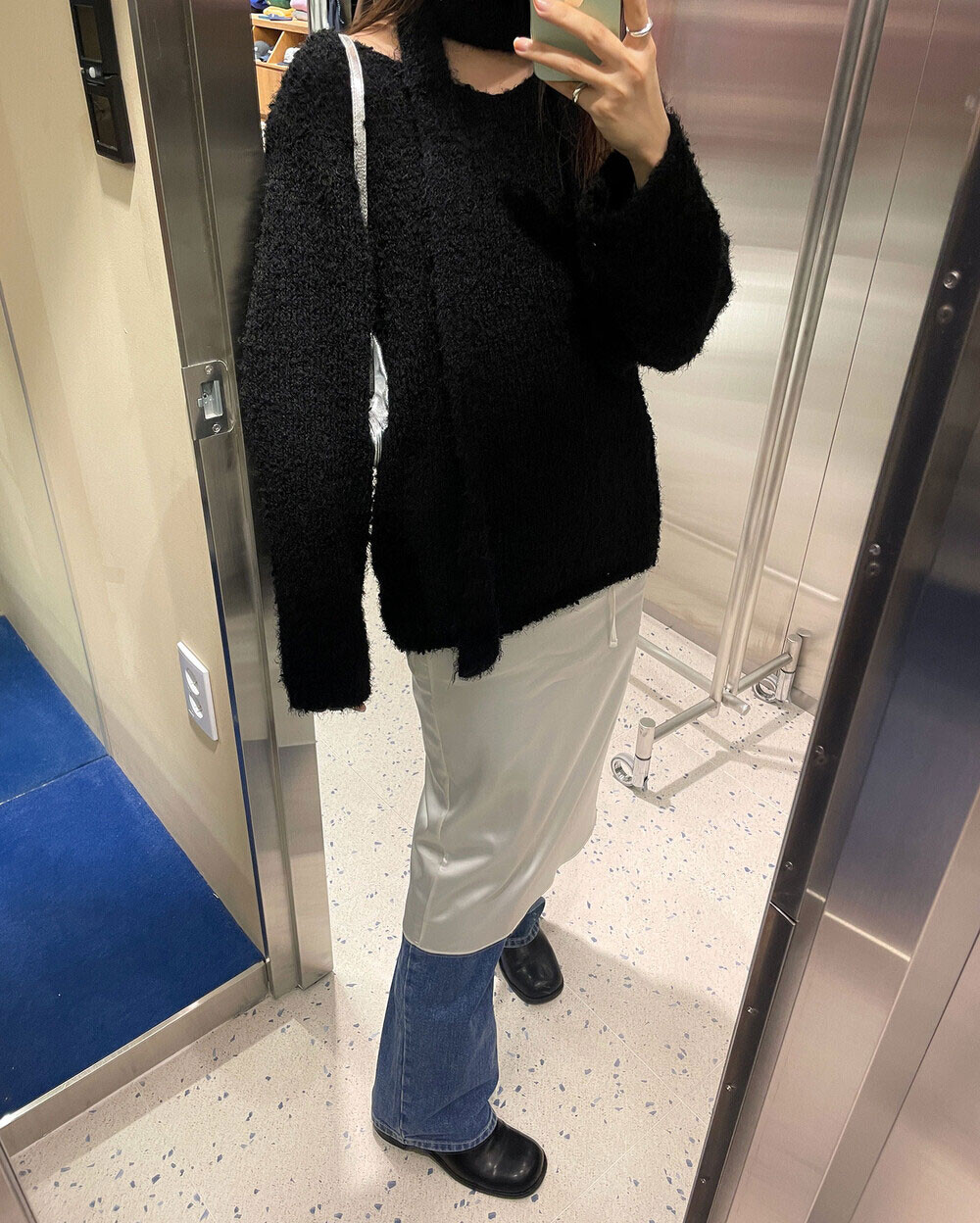FANCY DRIZZLY KNIT + MUFFLER SET, BLACK (3C)