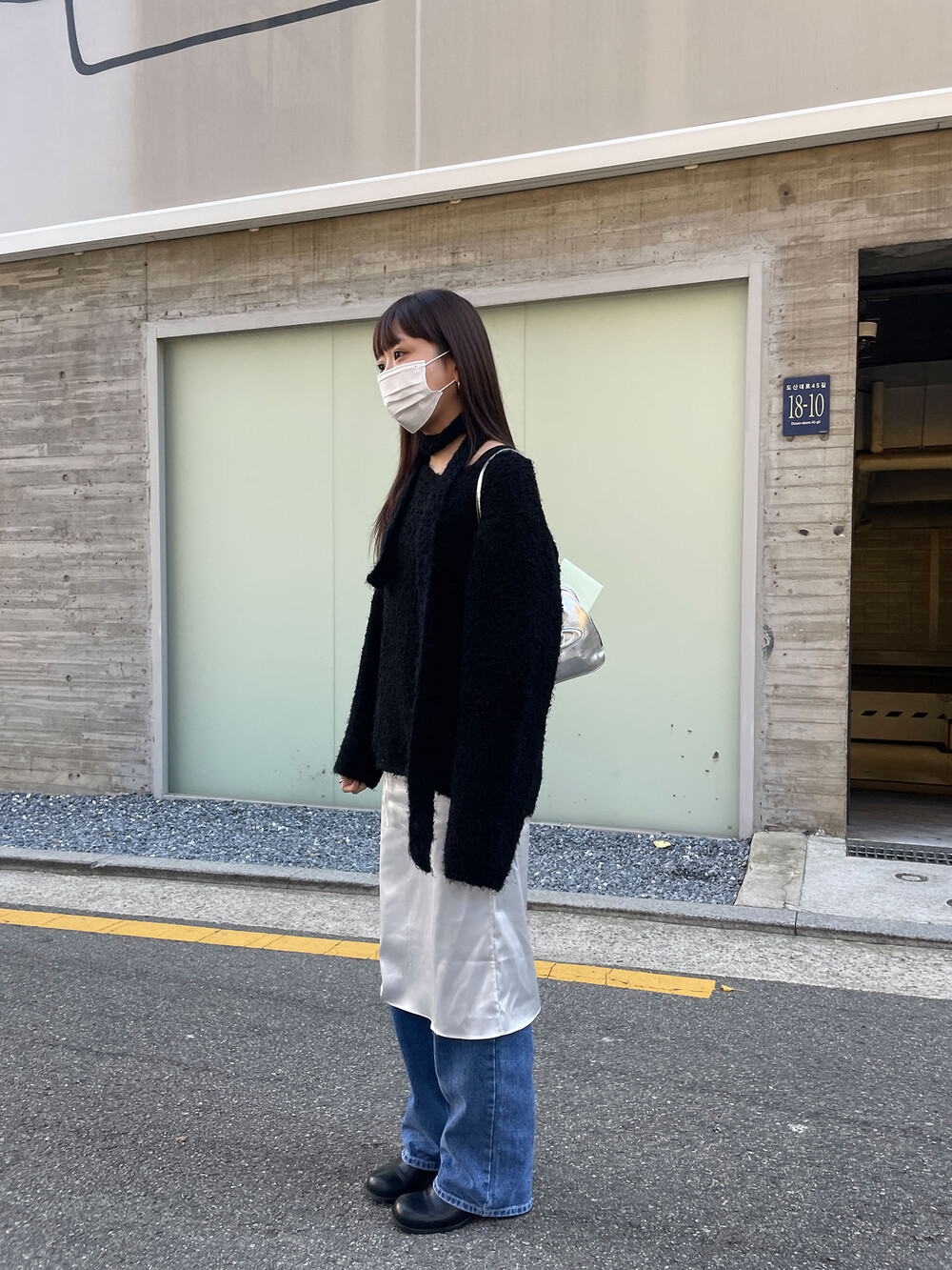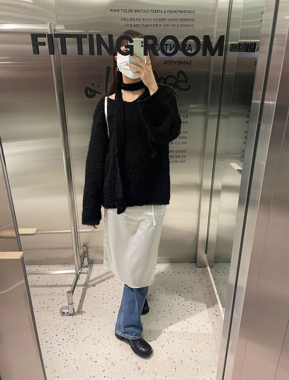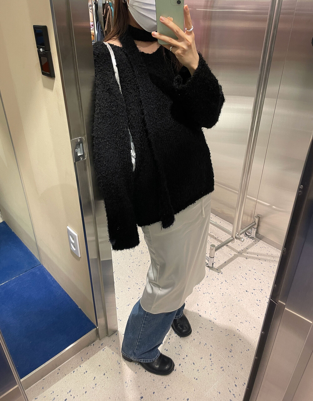 FANCY DRIZZLY KNIT + MUFFLER SET, BLACK (3C)