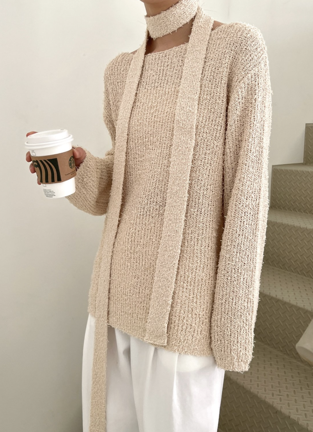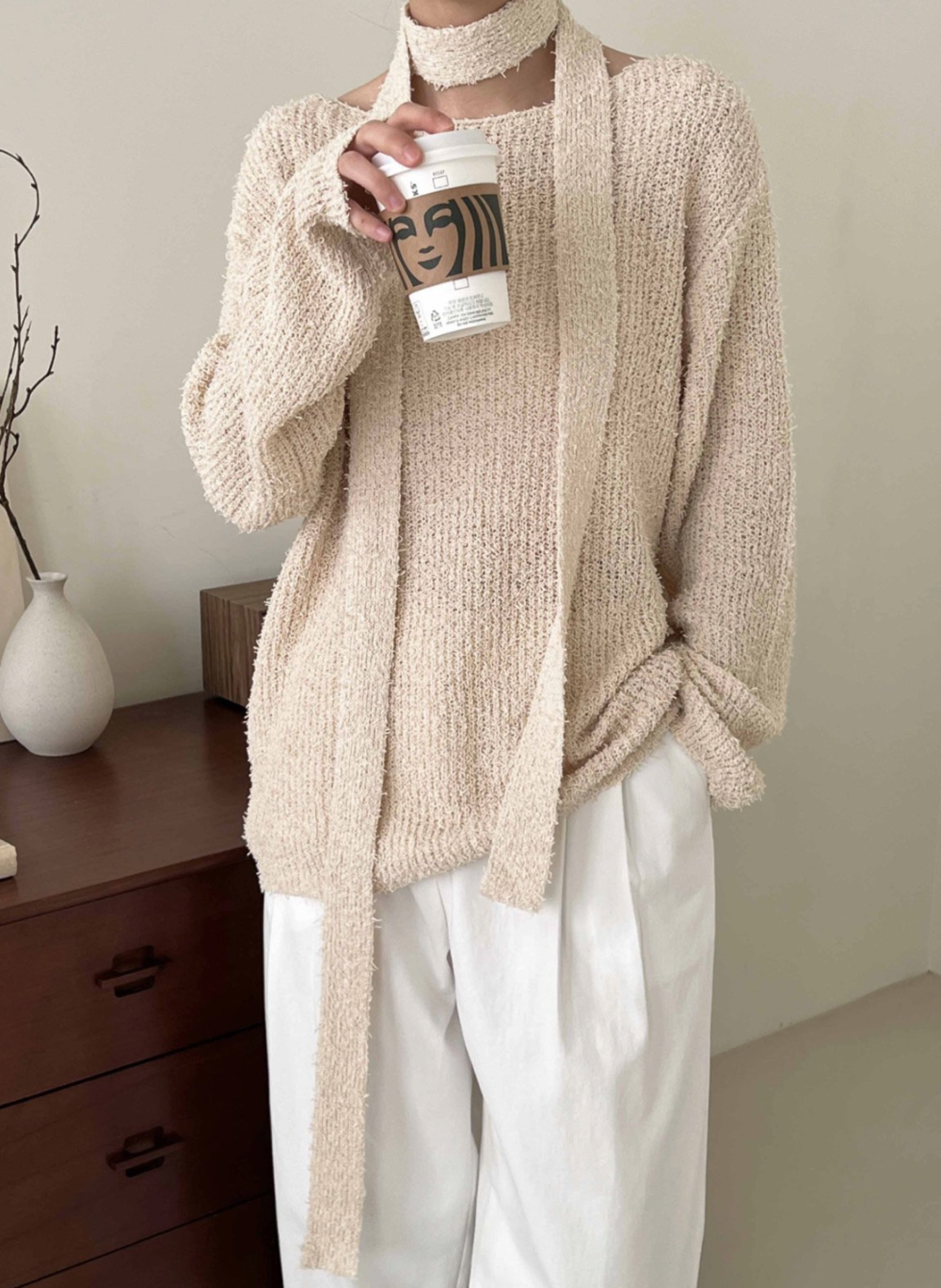 FANCY DRIZZLY KNIT + MUFFLER SET, CREAM (3C)