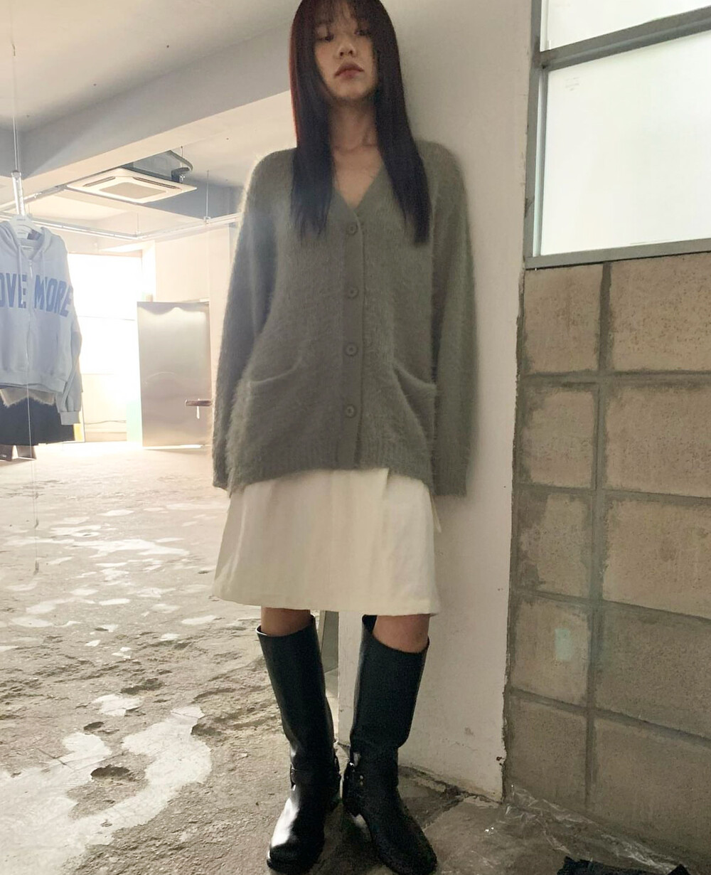특유의 박시한 가디건에서만 나오는 그런 코지한 무드!