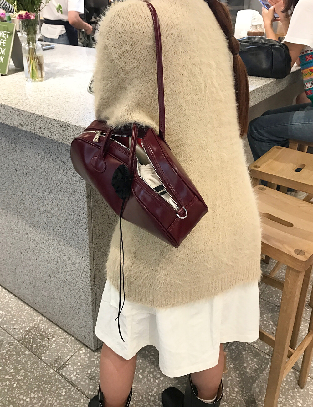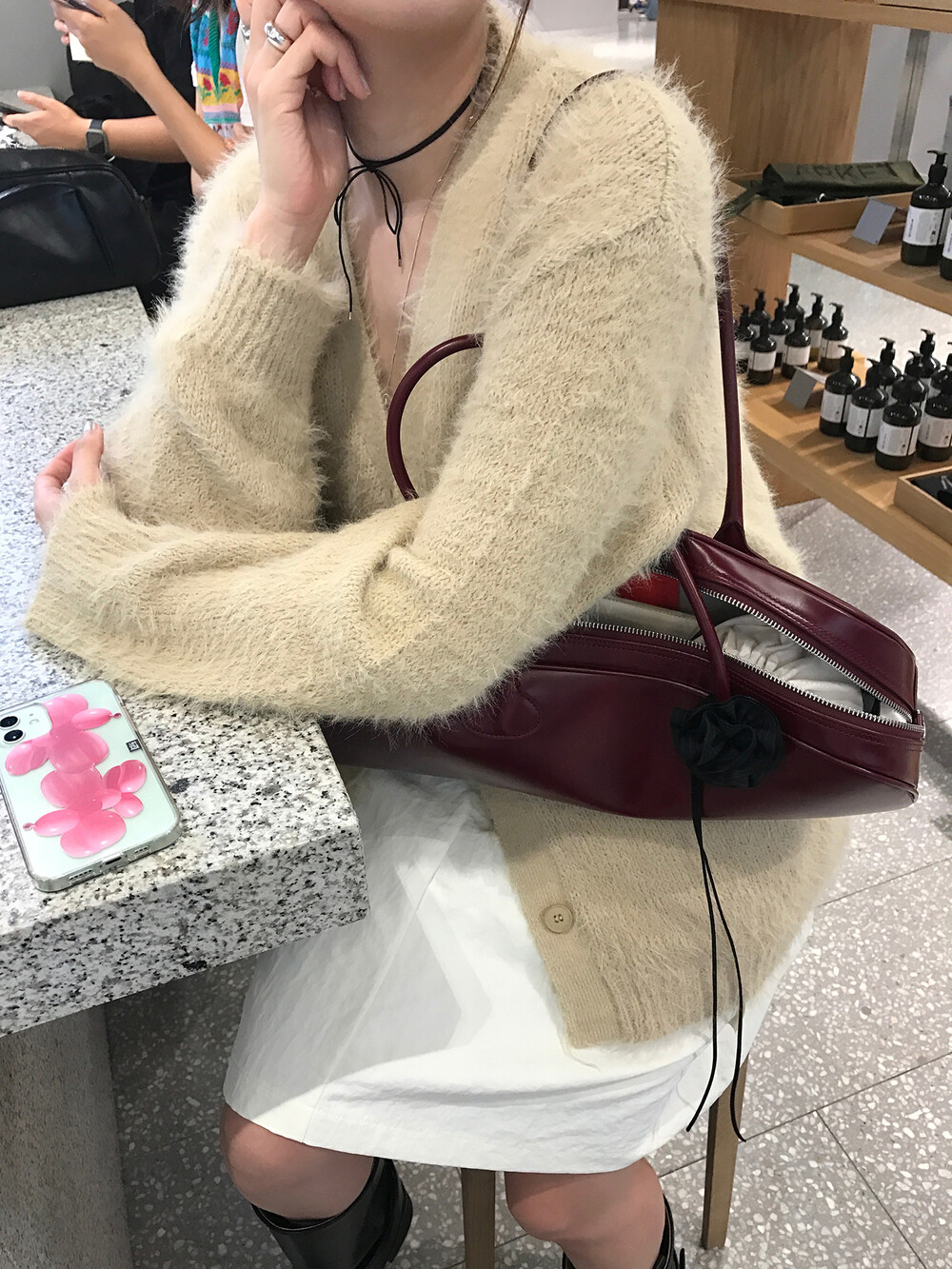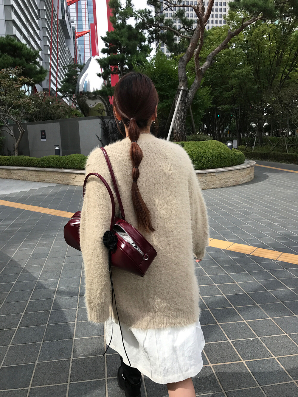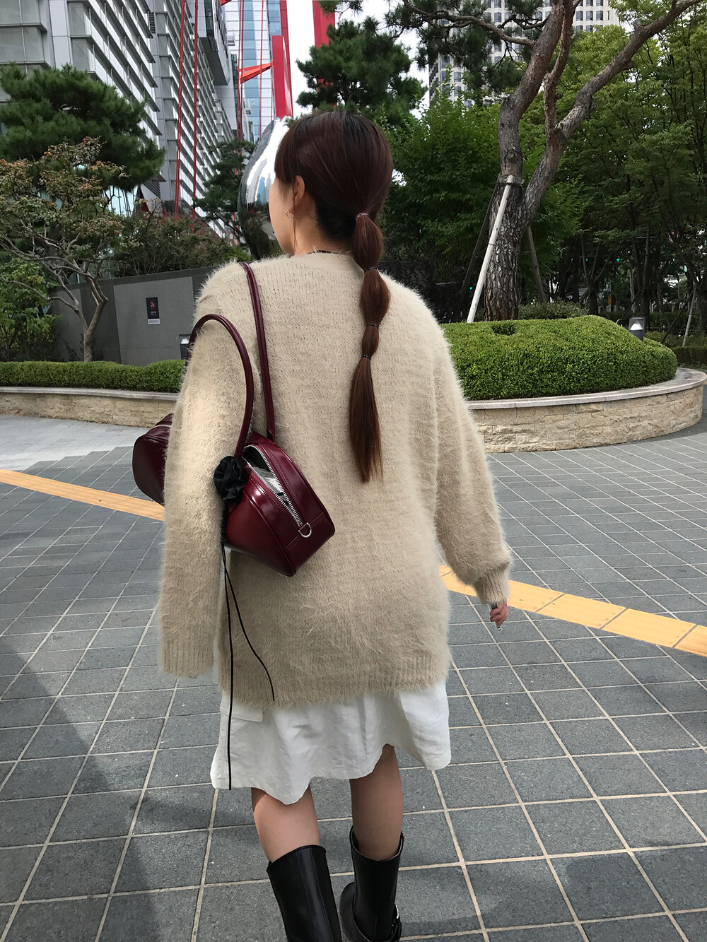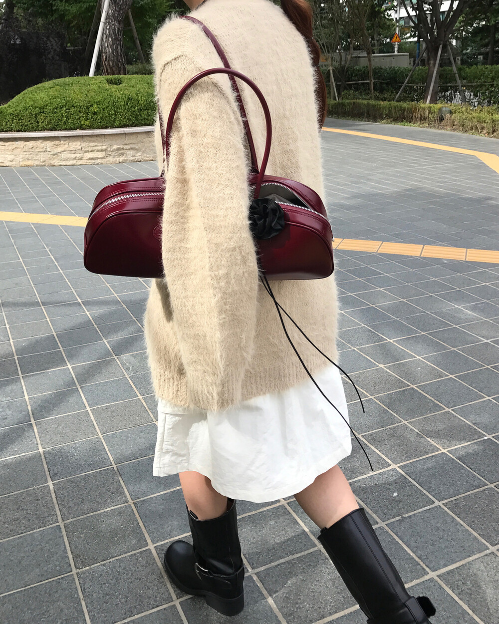 스커트에 매치하면 훨씬 사랑스러운 무드러 연출이 가능하더라구요.