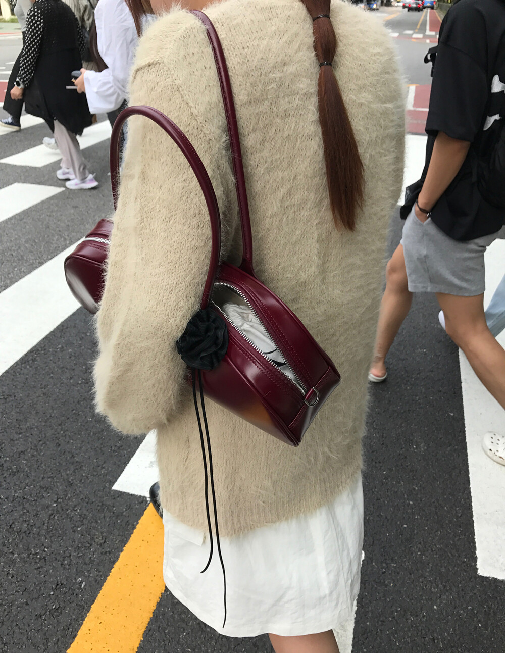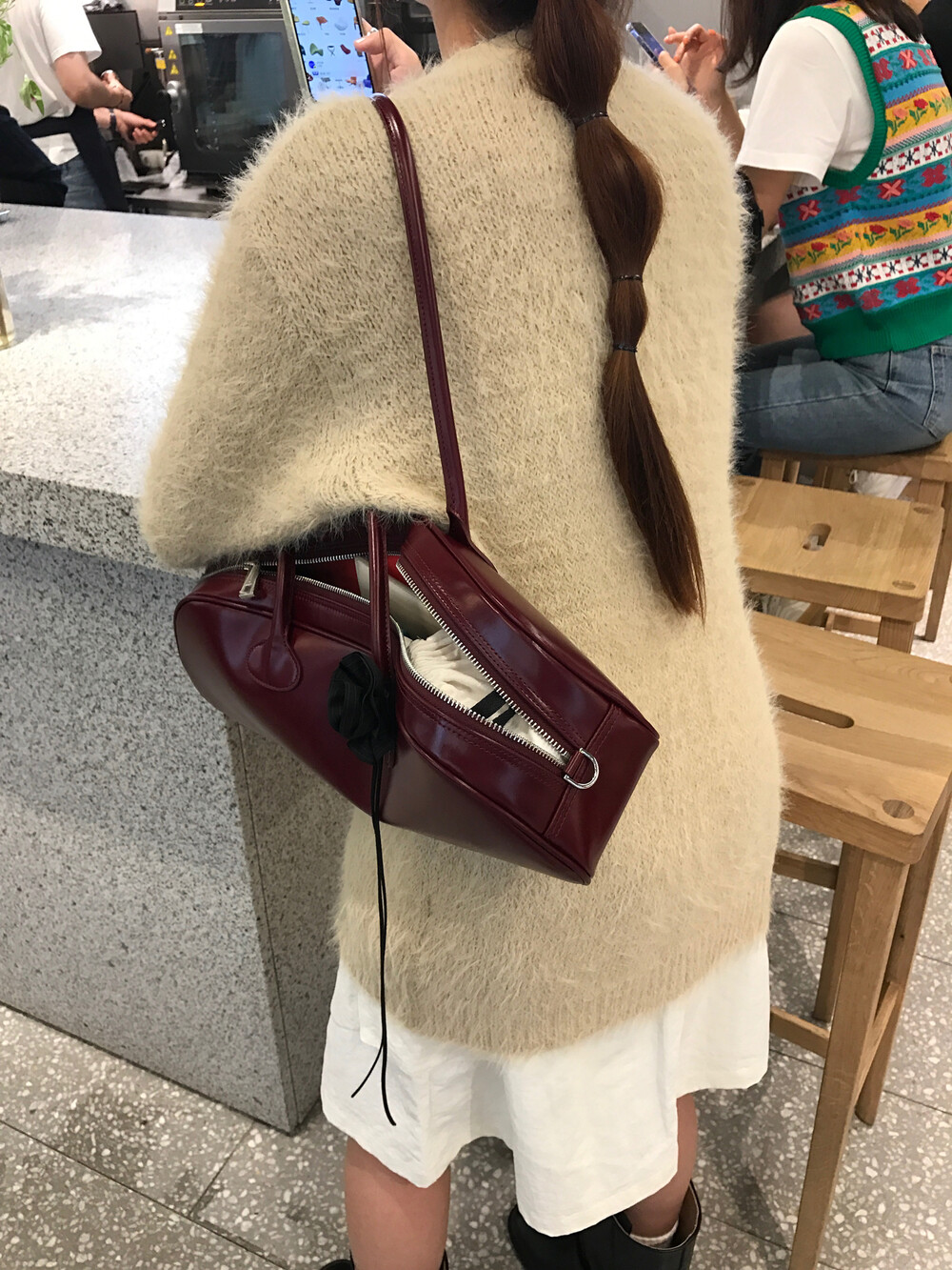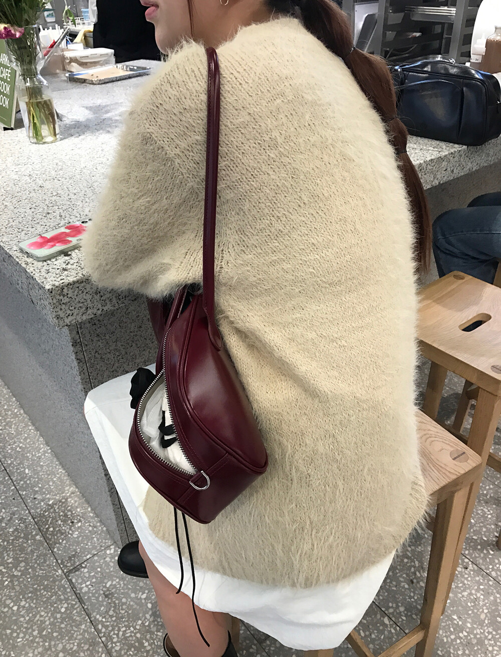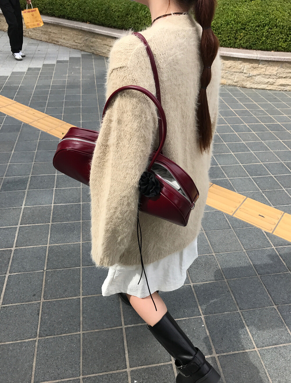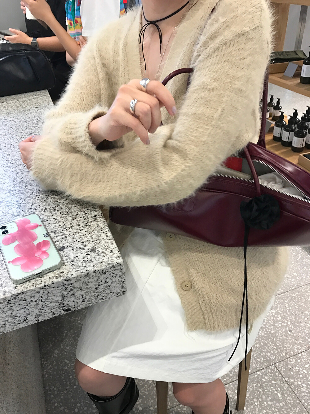 스커트에 매치하면 훨씬 사랑스러운 무드러 연출이 가능하더라구요.