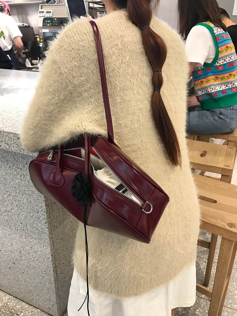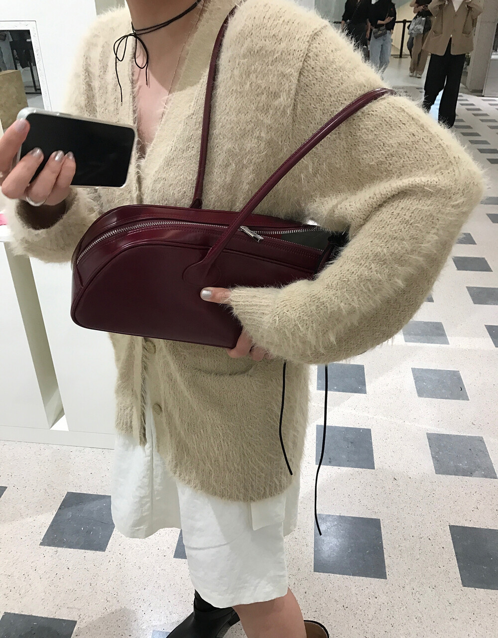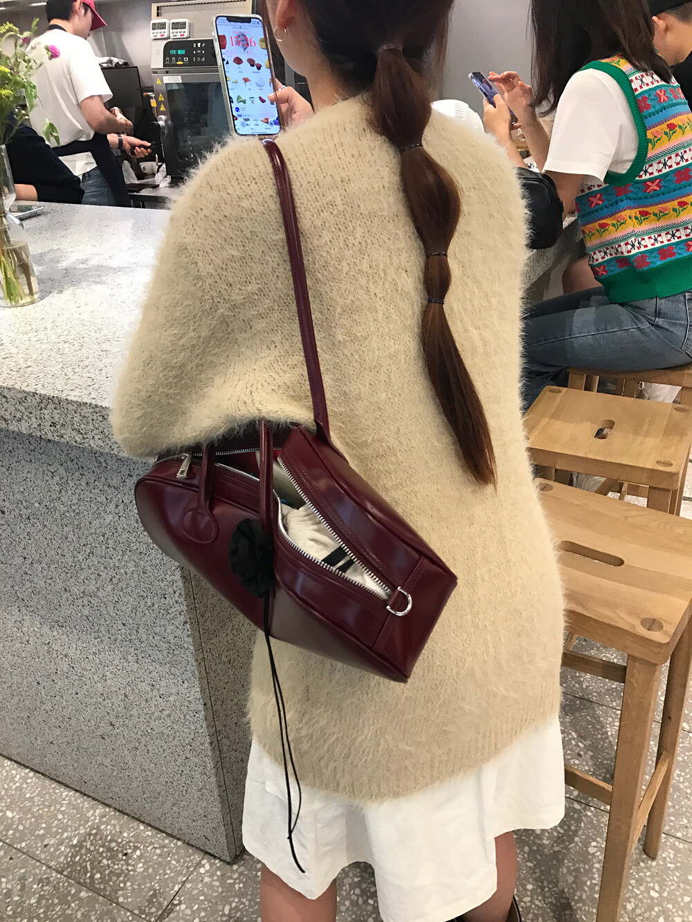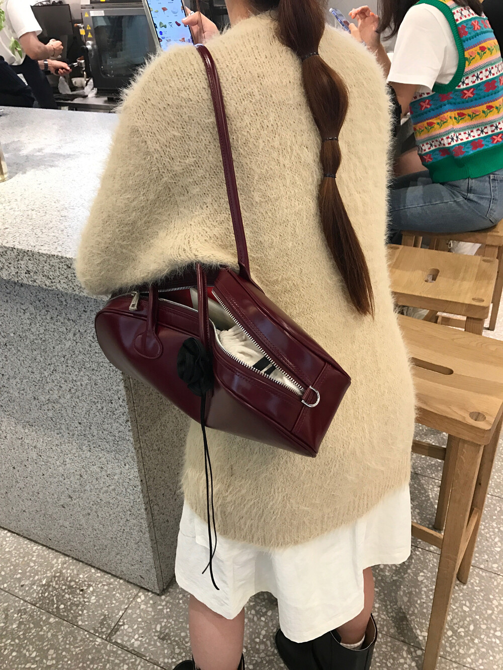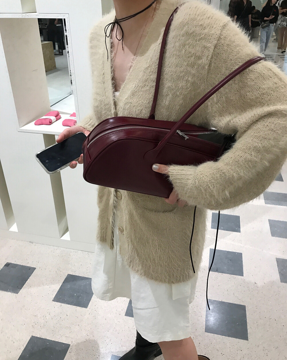 스커트에 매치하면 훨씬 사랑스러운 무드러 연출이 가능하더라구요.