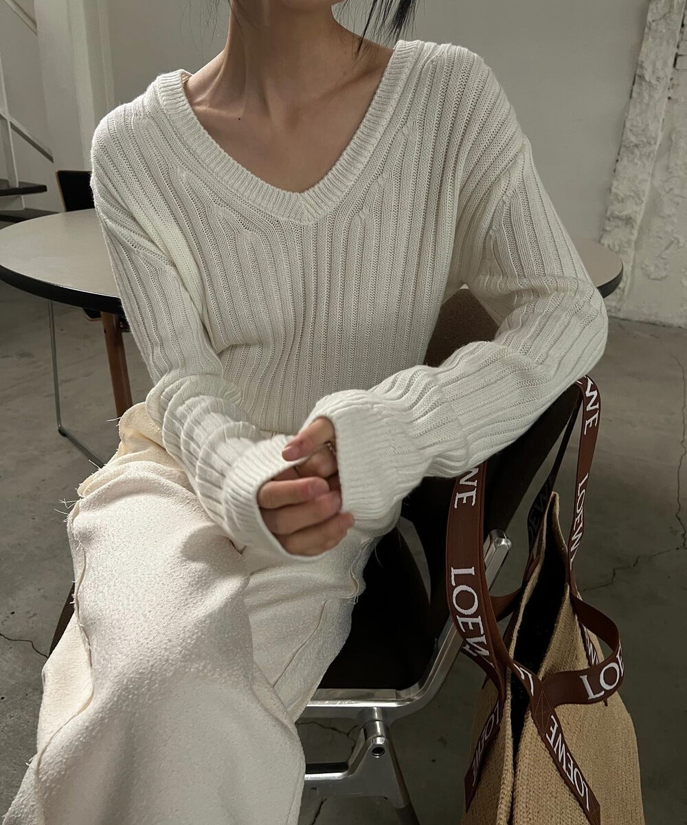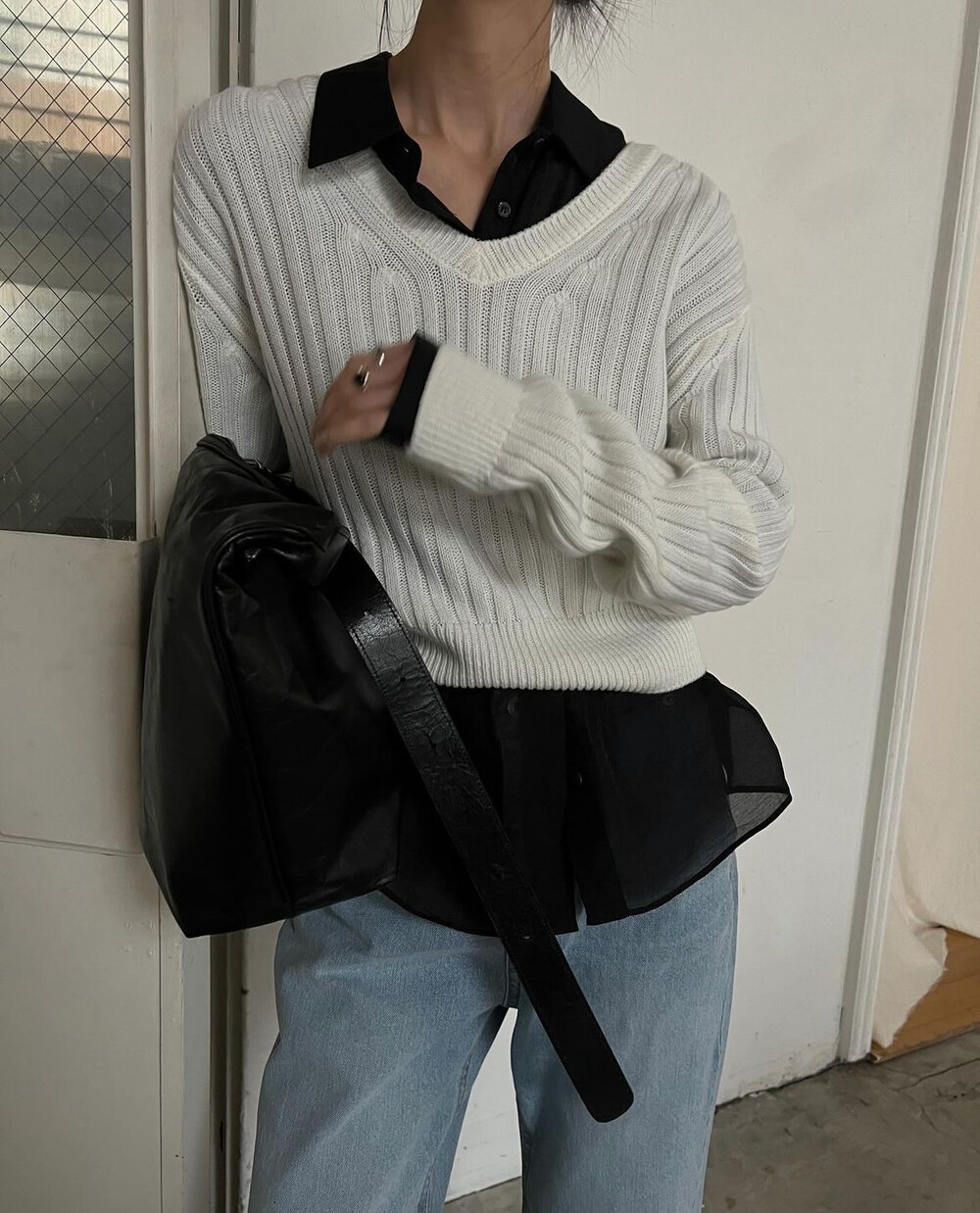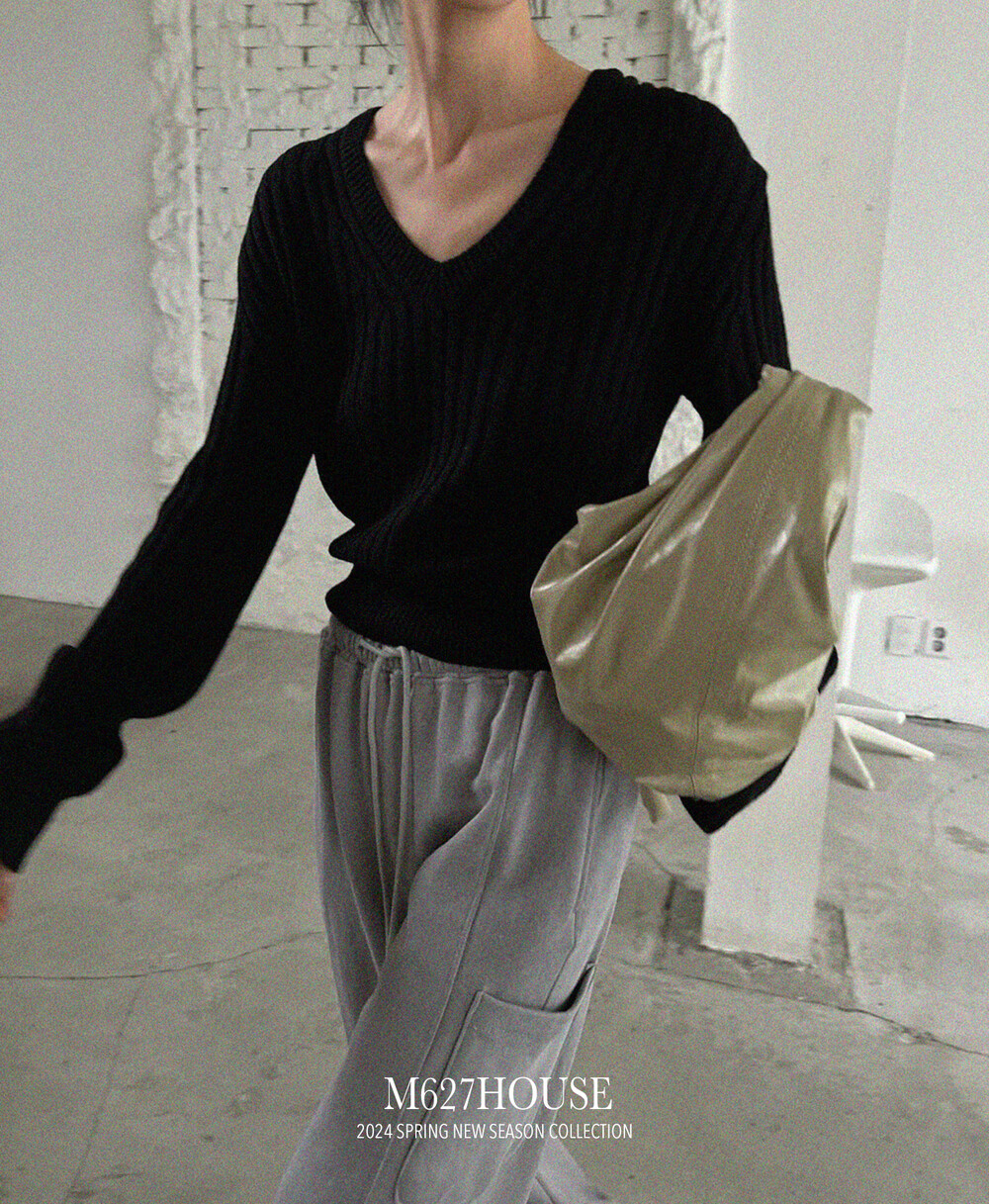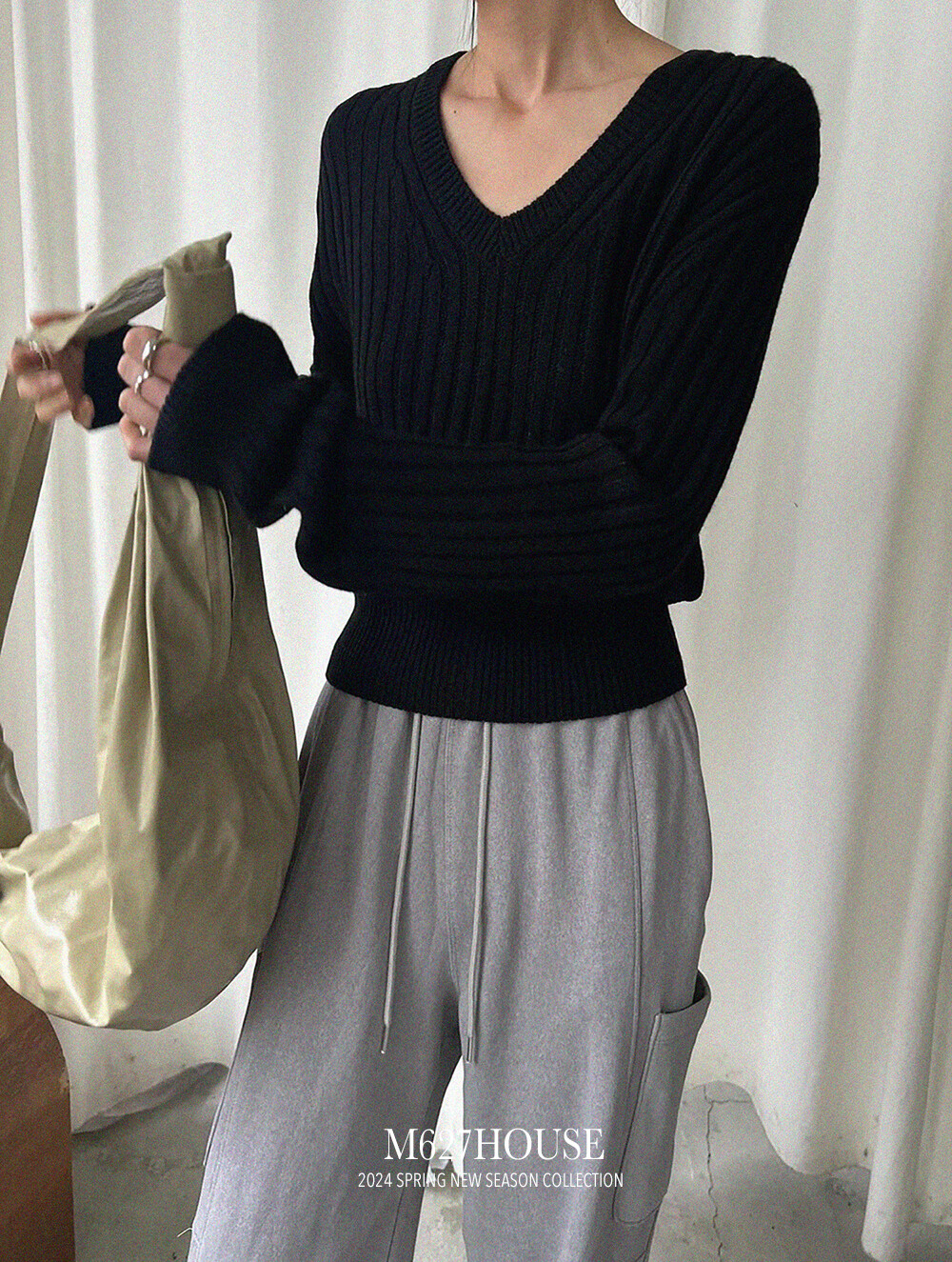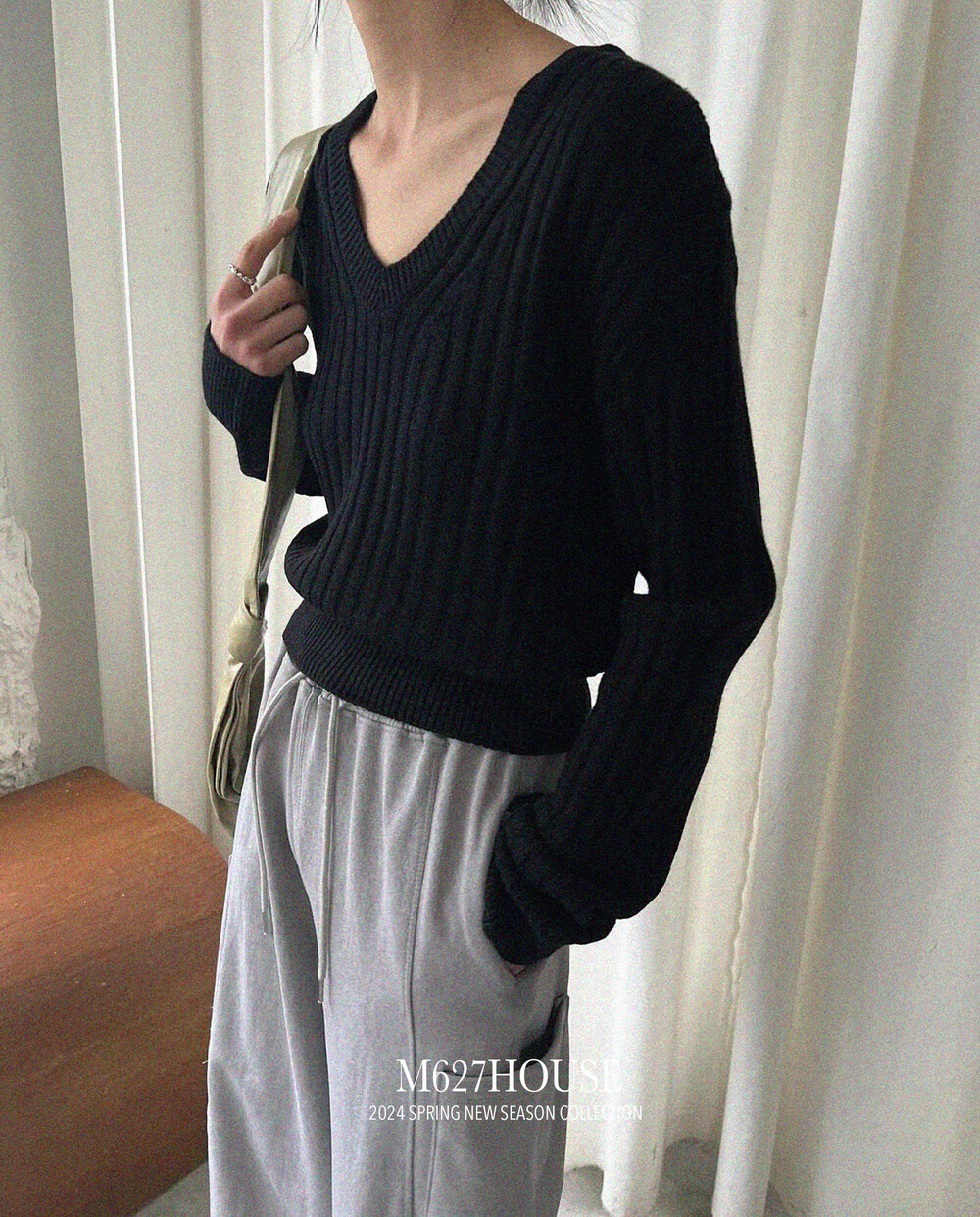 BACK BUTTON V-NECK KNIT, BLACK (2C)