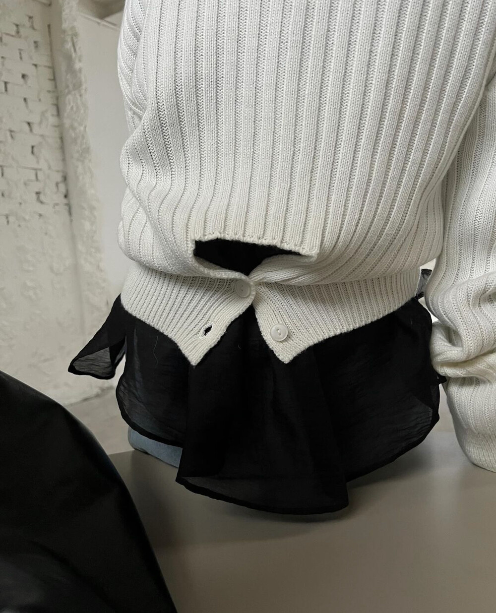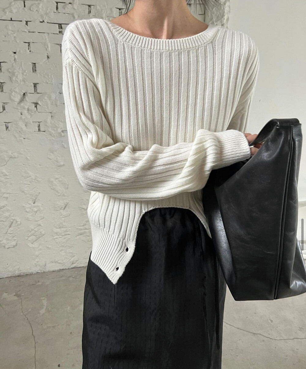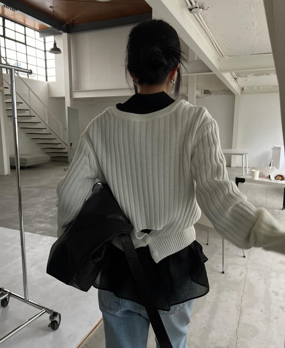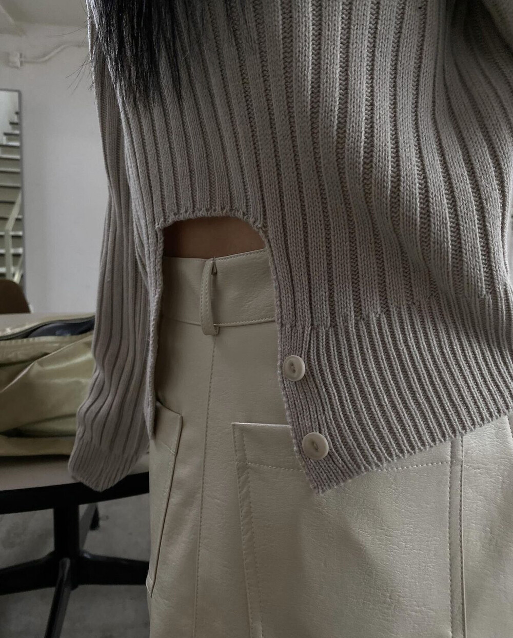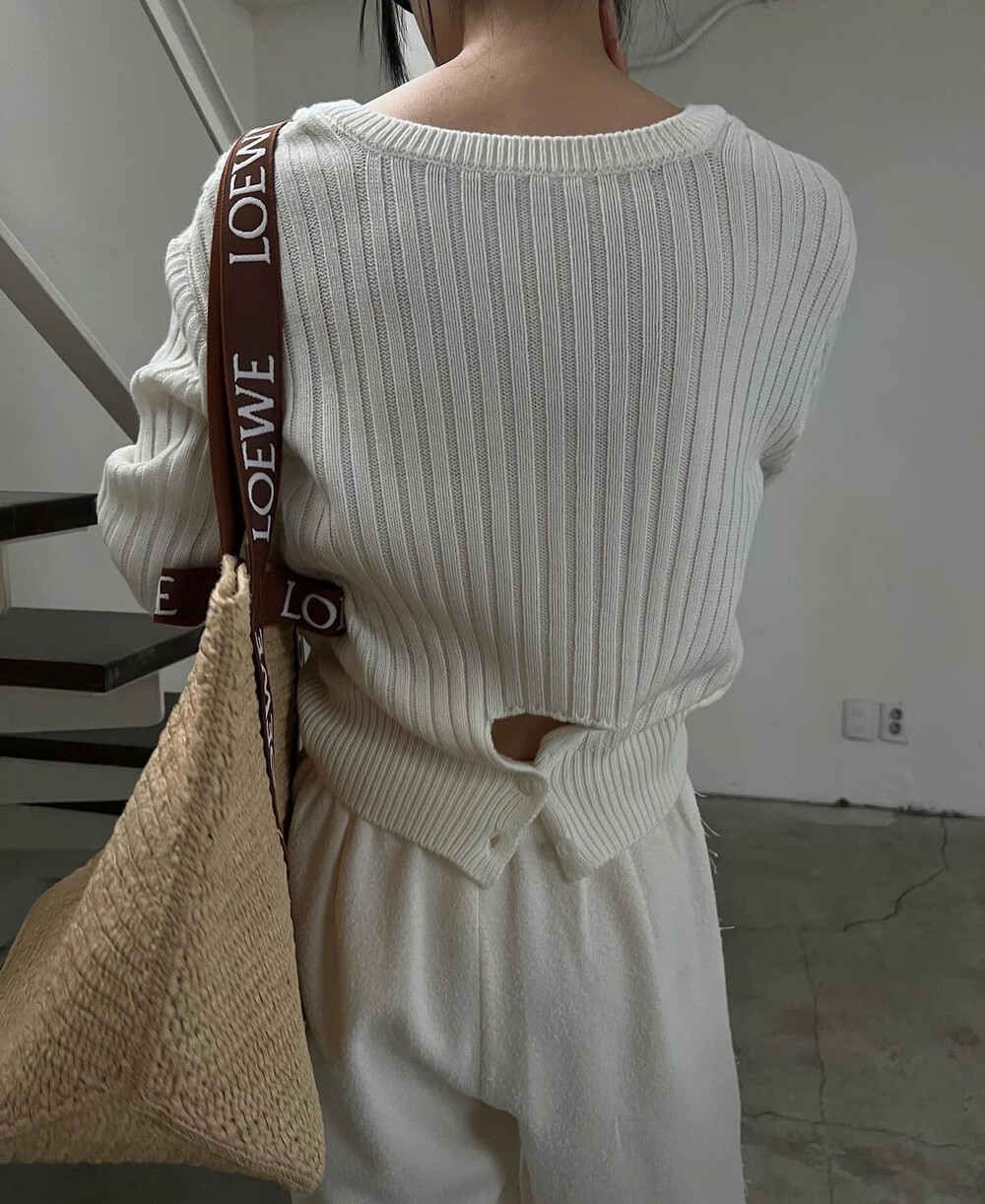 - 니트 뒷부분 클로징 단추가 있어 허리부분의 실루엣을 잡아주는 포인트가 있습니다.