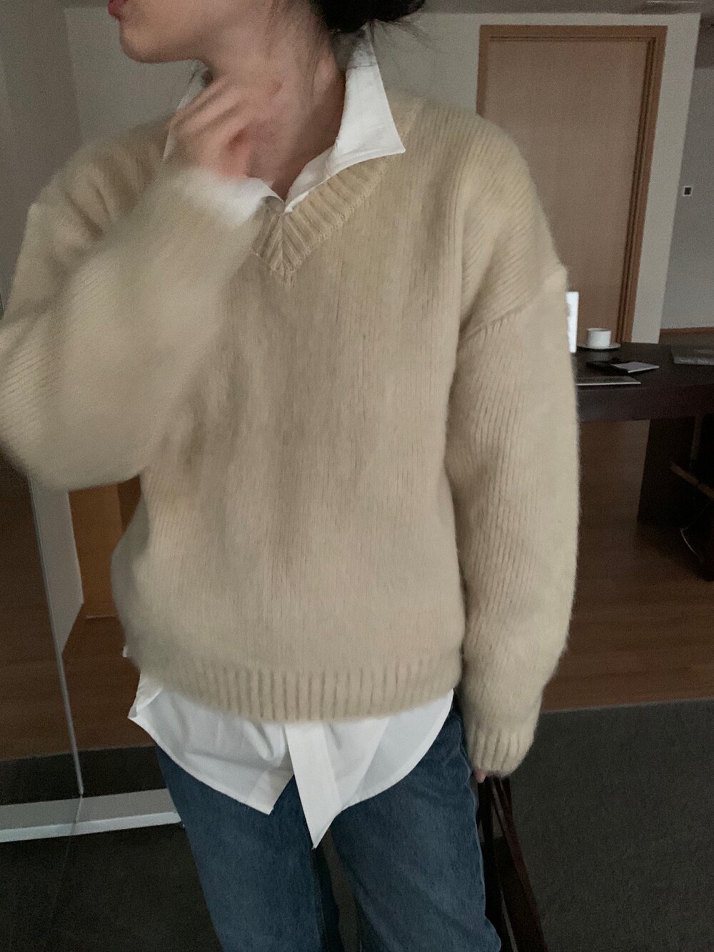 ―――――――――――――――――――――――――――――― PRODUCT INFO ∨ ―――――――――――――――――――――――――――――― - 보슬보슬한 헤어리한 텍스쳐가 포인트인 브이넥 스웨터입니다. - 니트 안쪽부분은 헤어리한 텍스쳐가 아닌 깔끔하게 처리가 되어있어 따가움이 거의 없는 편입니다. (개인차가 있을 수 있습니다.) - 도톰한 두께감으로 한겨울까지 매치할 수 있는 스웨터입니다. - 포근하고 부드러운 텍스쳐를 갖고 있습니다. - FW 시즌 활용하기 좋은 울 혼방 소재를 사용하여 따뜻한 무드를 연출합니다. - 기본에 충실한 디자인으로 이너로 활용하기 좋습니다. - 여유로운 사이즈감으로 다양하게 매치하기 좋습니다.