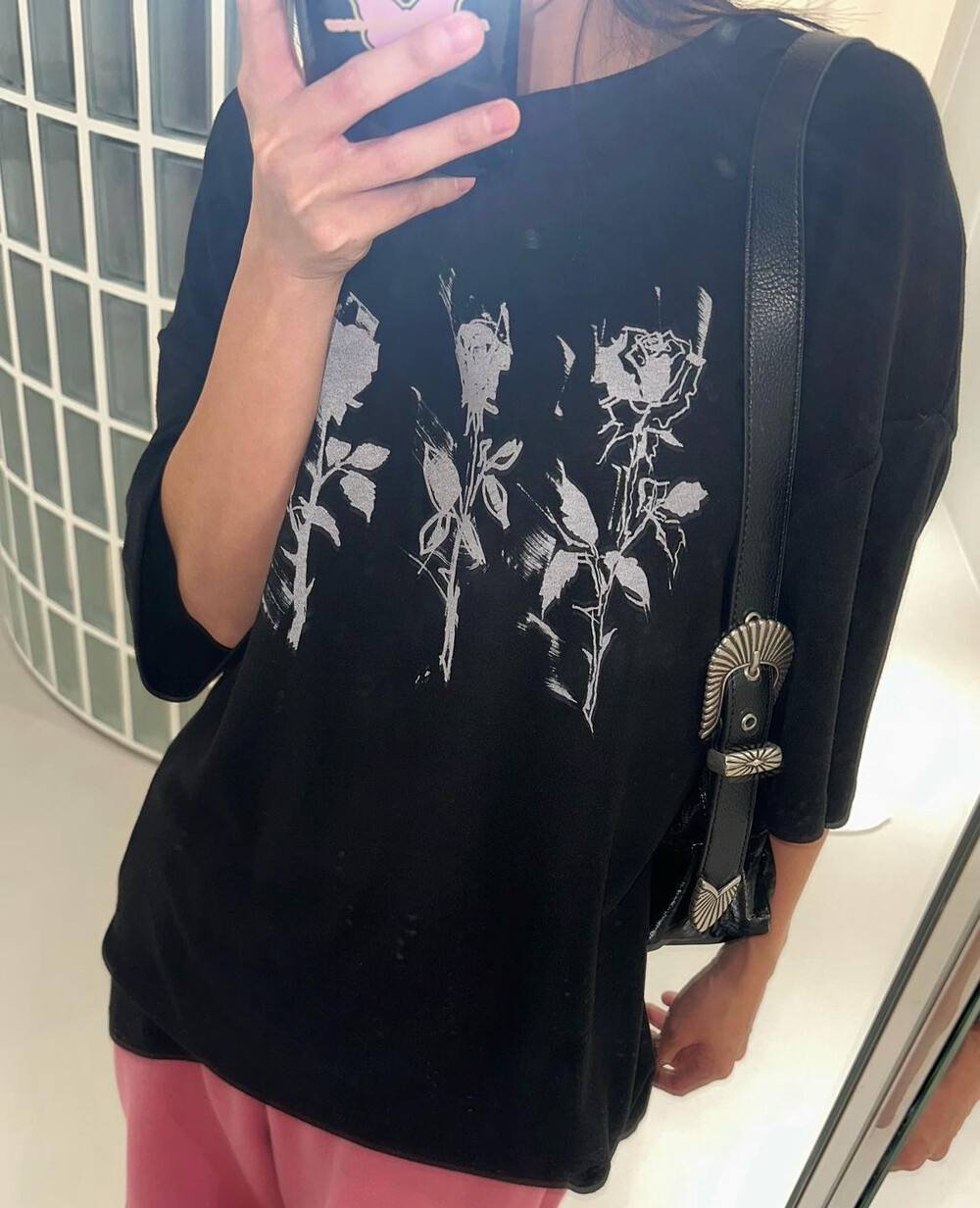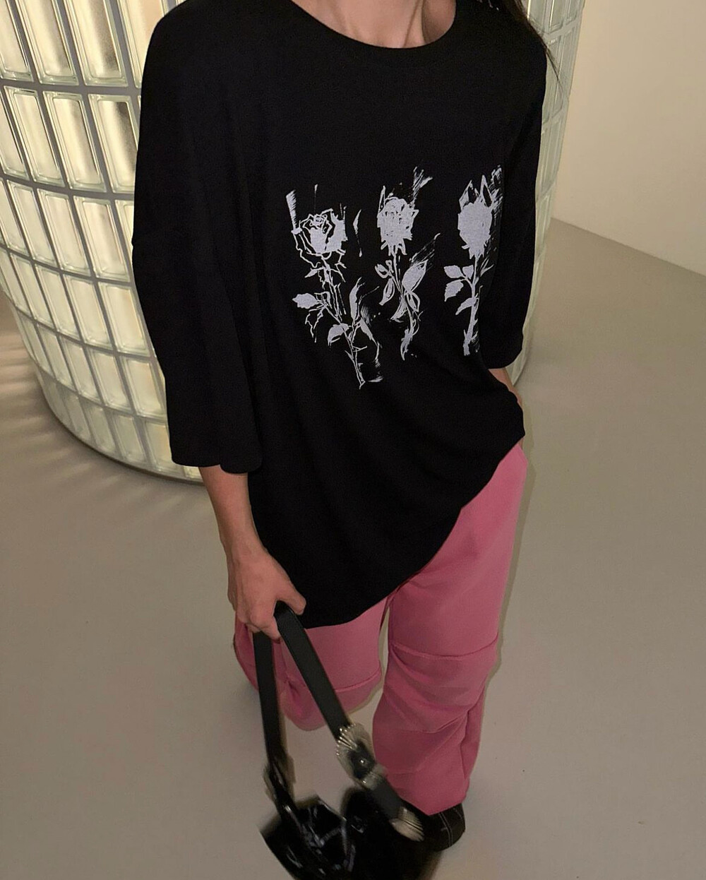 ―――――――――――――――――――――――――――――― PRODUCT INFO ∨ ―――――――――――――――――――――――――――――― - 섬세하고 포근한 울 혼방 소재로 활용하기 좋은 루즈핏 반팔 티셔츠입니다. - 베이직한 아이템으로 단독으로 착용하거나, 이너나 레이어드용으로 연출하기에도 좋은 활용도 높은 아이템 입니다. - 포근하고 부드러운 텍스쳐를 갖고 있습니다. - 단독으로 착용하기에도, 슬림한 이너 긴팔티와 레이어드하여 다양한 룩을 연출하기에도 좋은 매력적인 아이템입니다. - 여유로운 사이즈감으로 다양하게 매치하기 좋습니다. - 빈티지하면서도 매력적인 로즈 프린팅이 특징입니다.