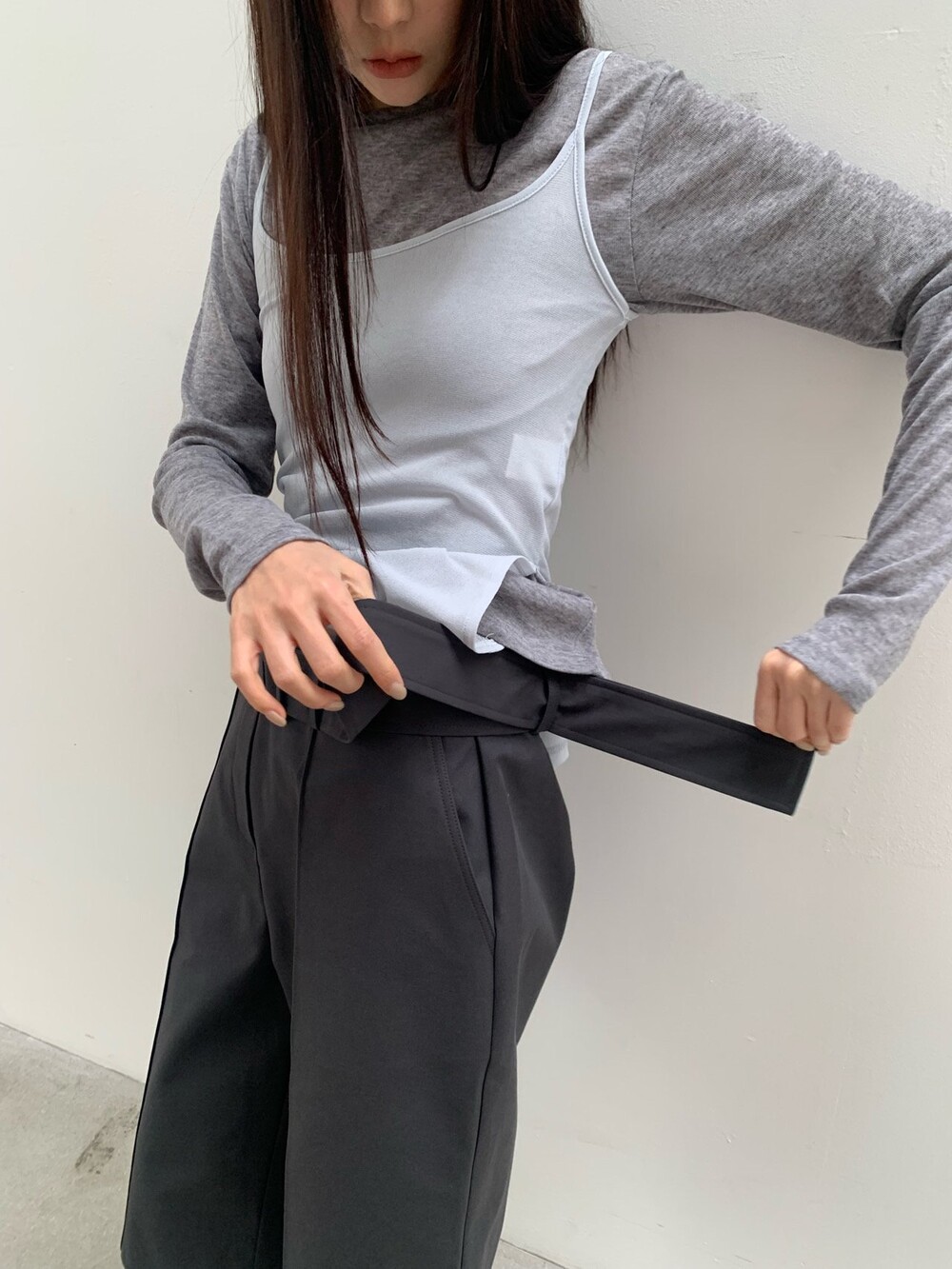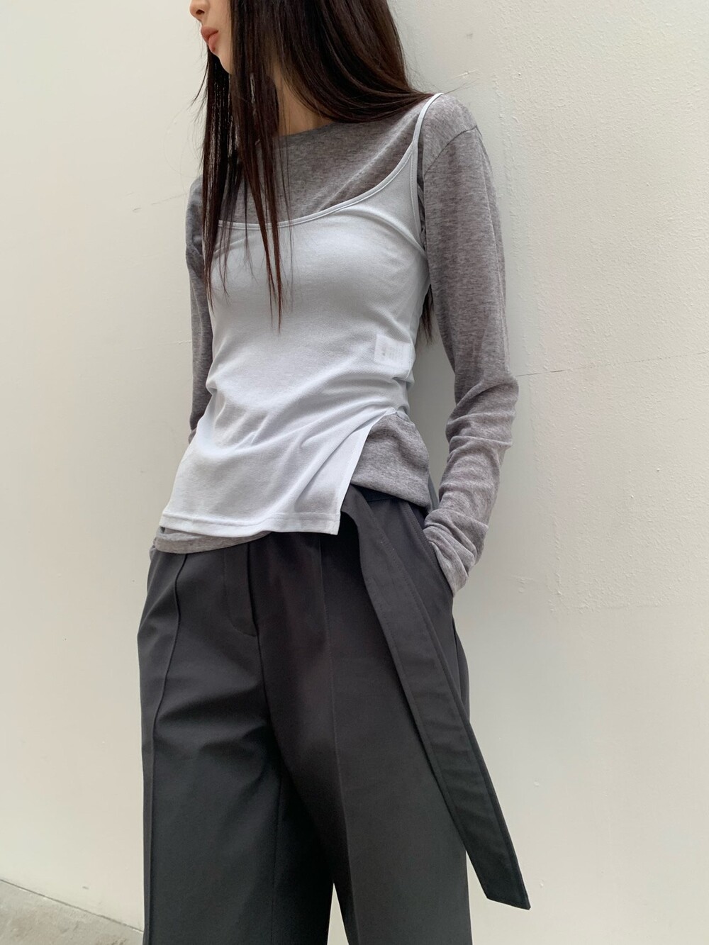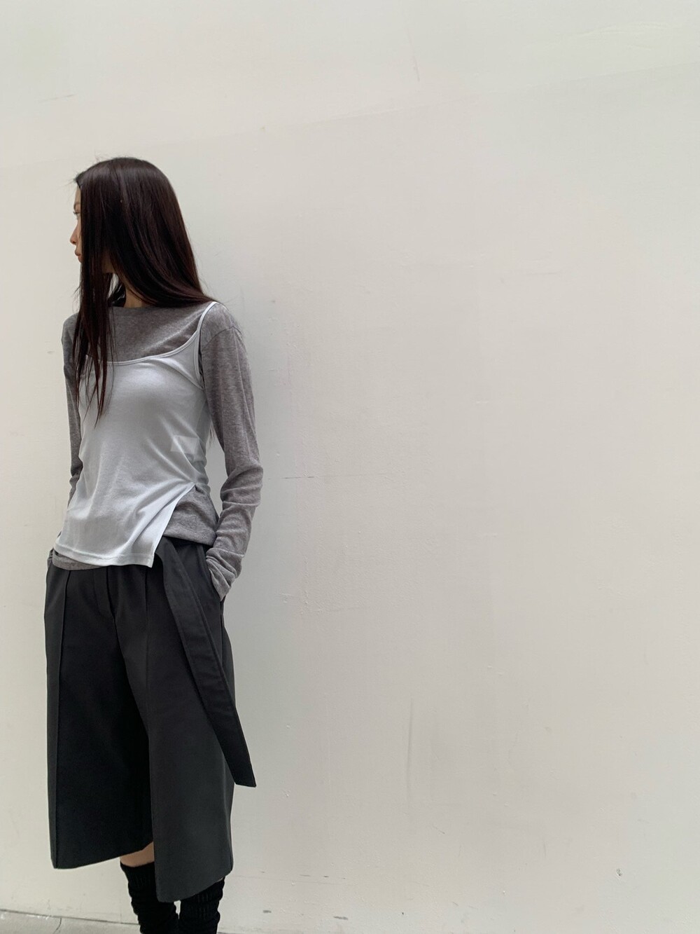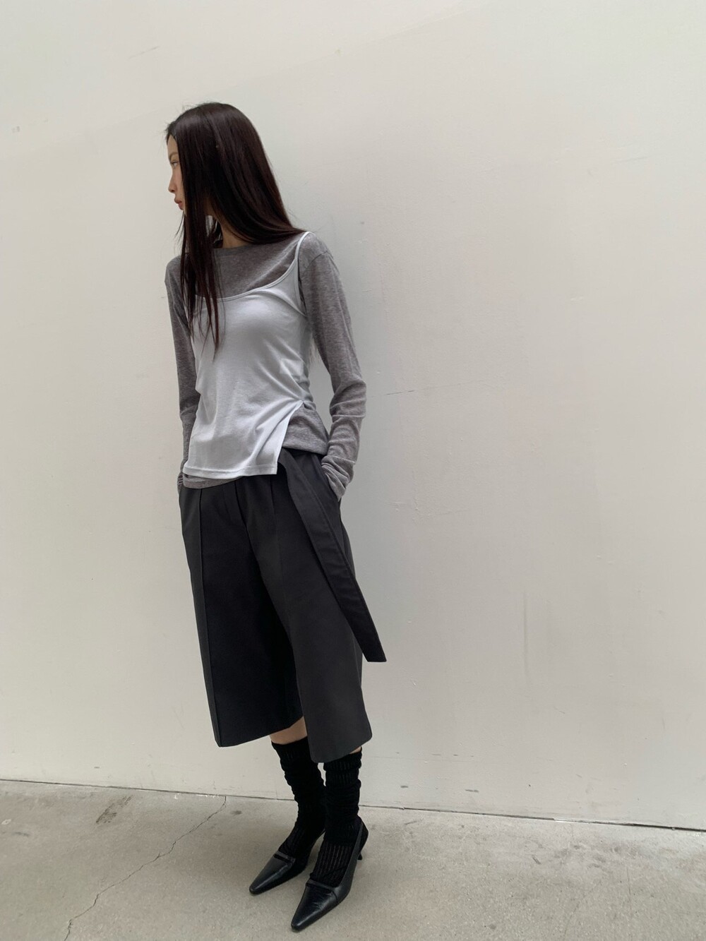슬리브리스를 레이어드해서 Flat solid micro top 과 매치하였습니다.