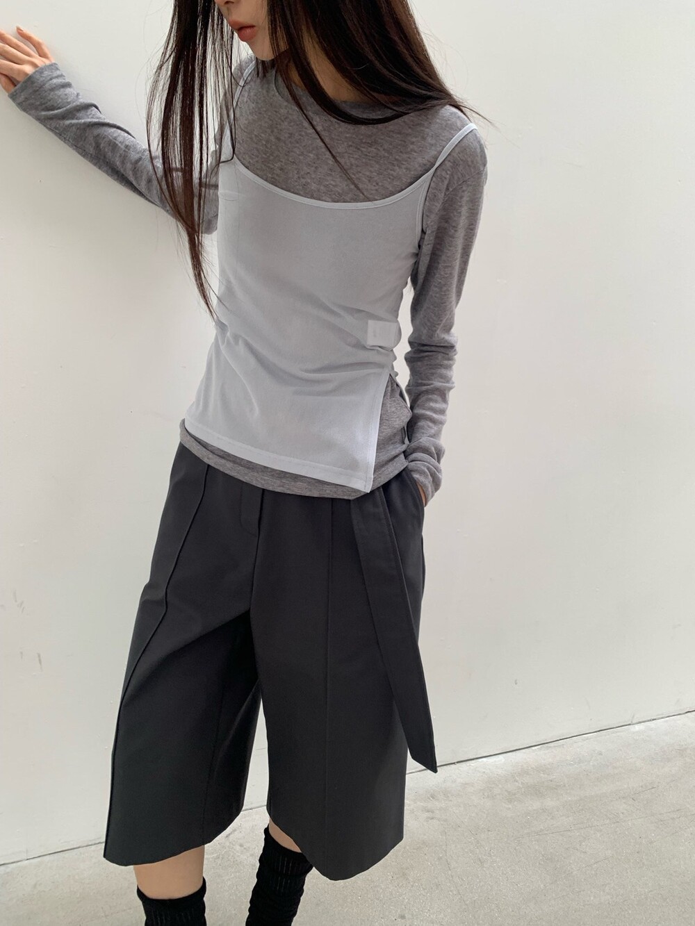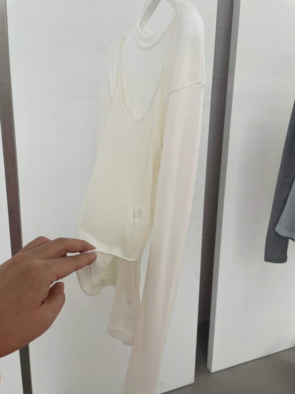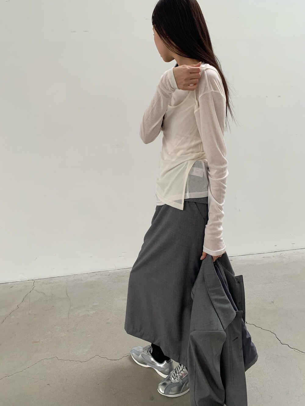 슬리브리스를 레이어드해서 Flat solid micro top 과 매치하였습니다.