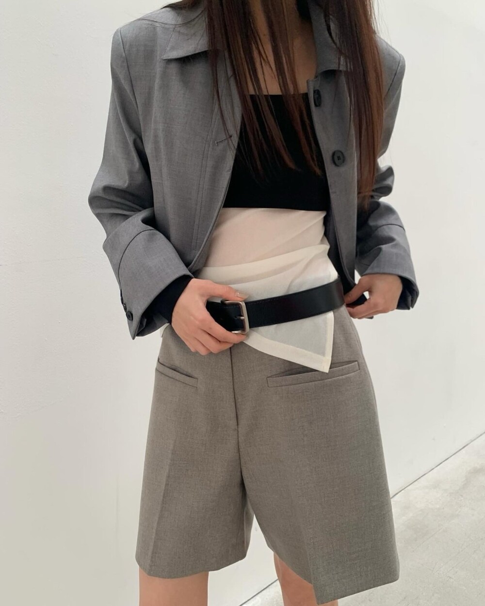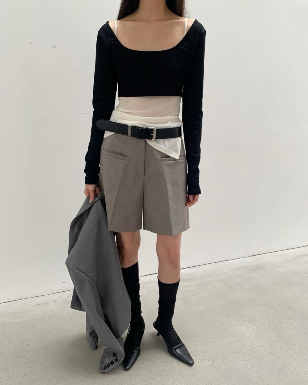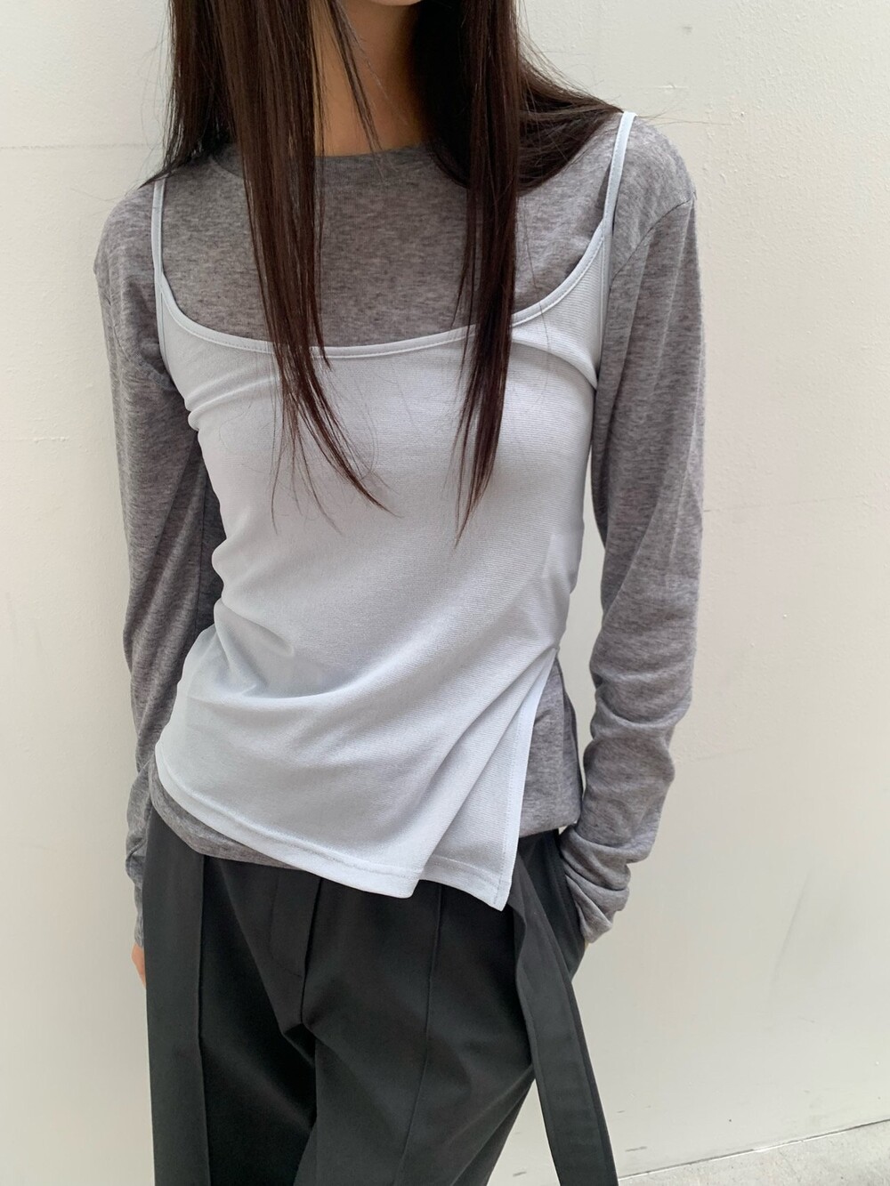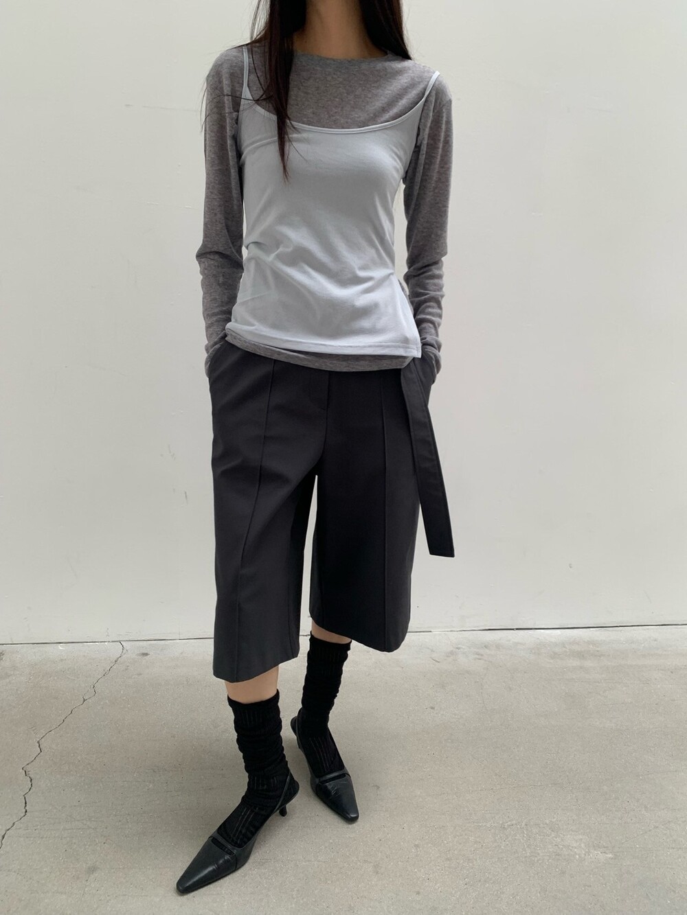 슬리브리스를 레이어드해서 Flat solid micro top 과 매치하였습니다.