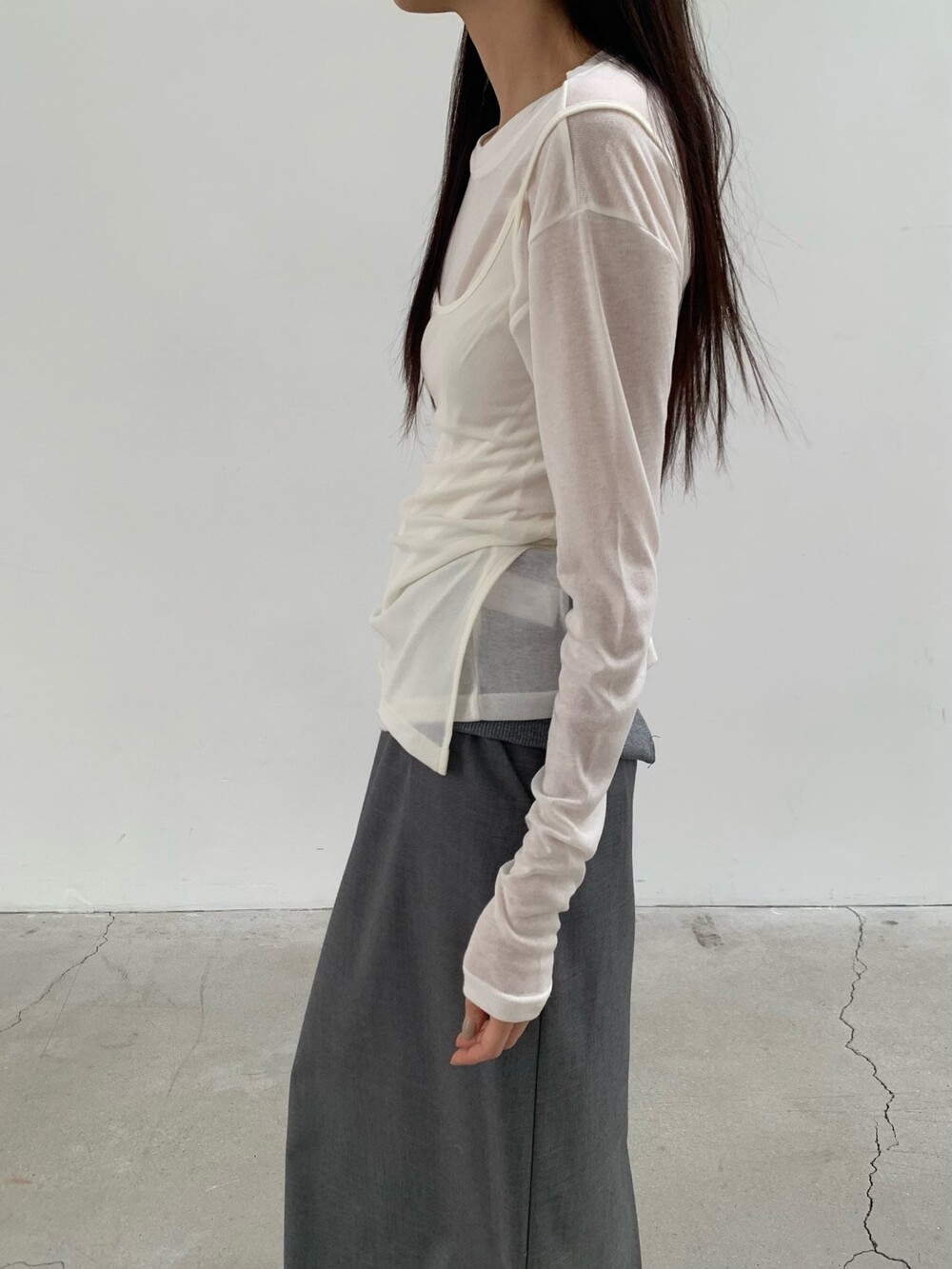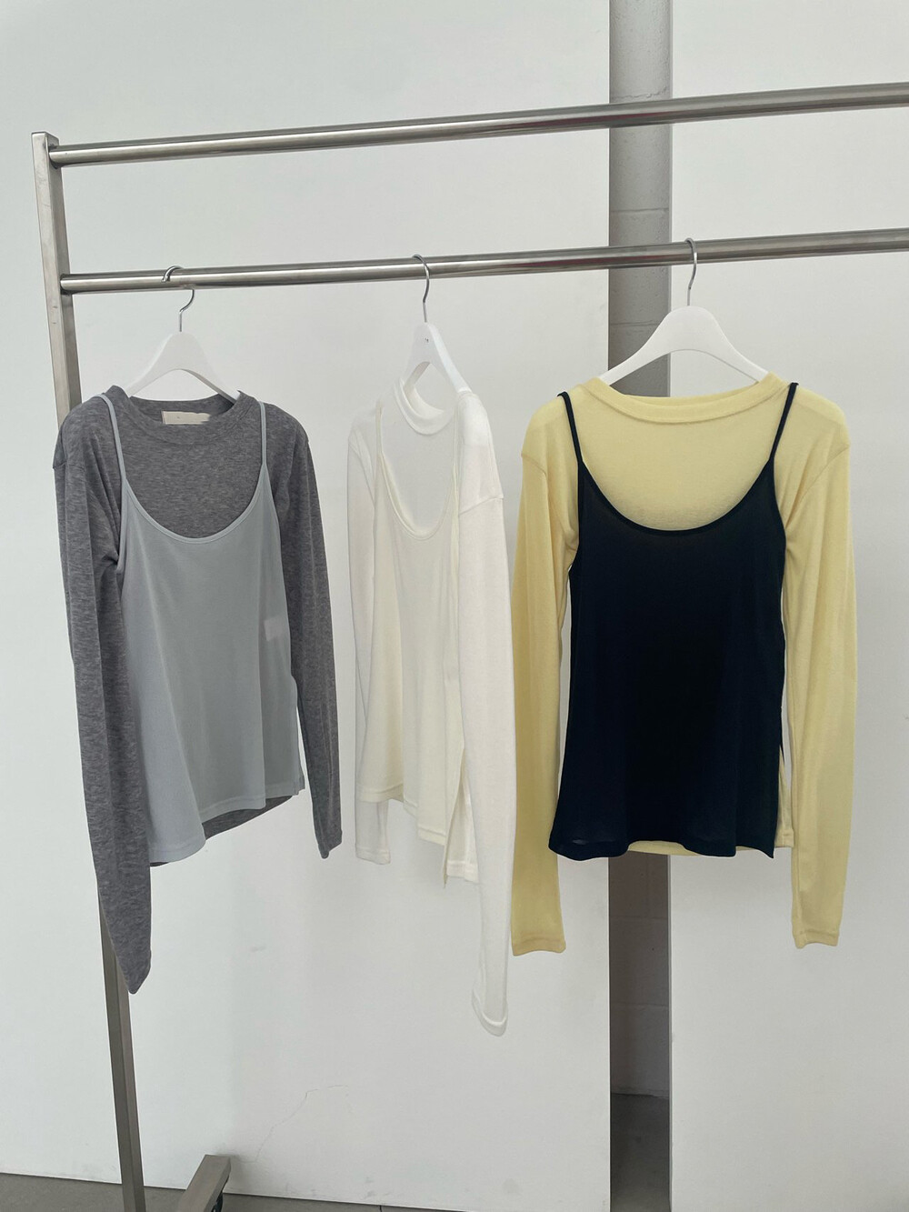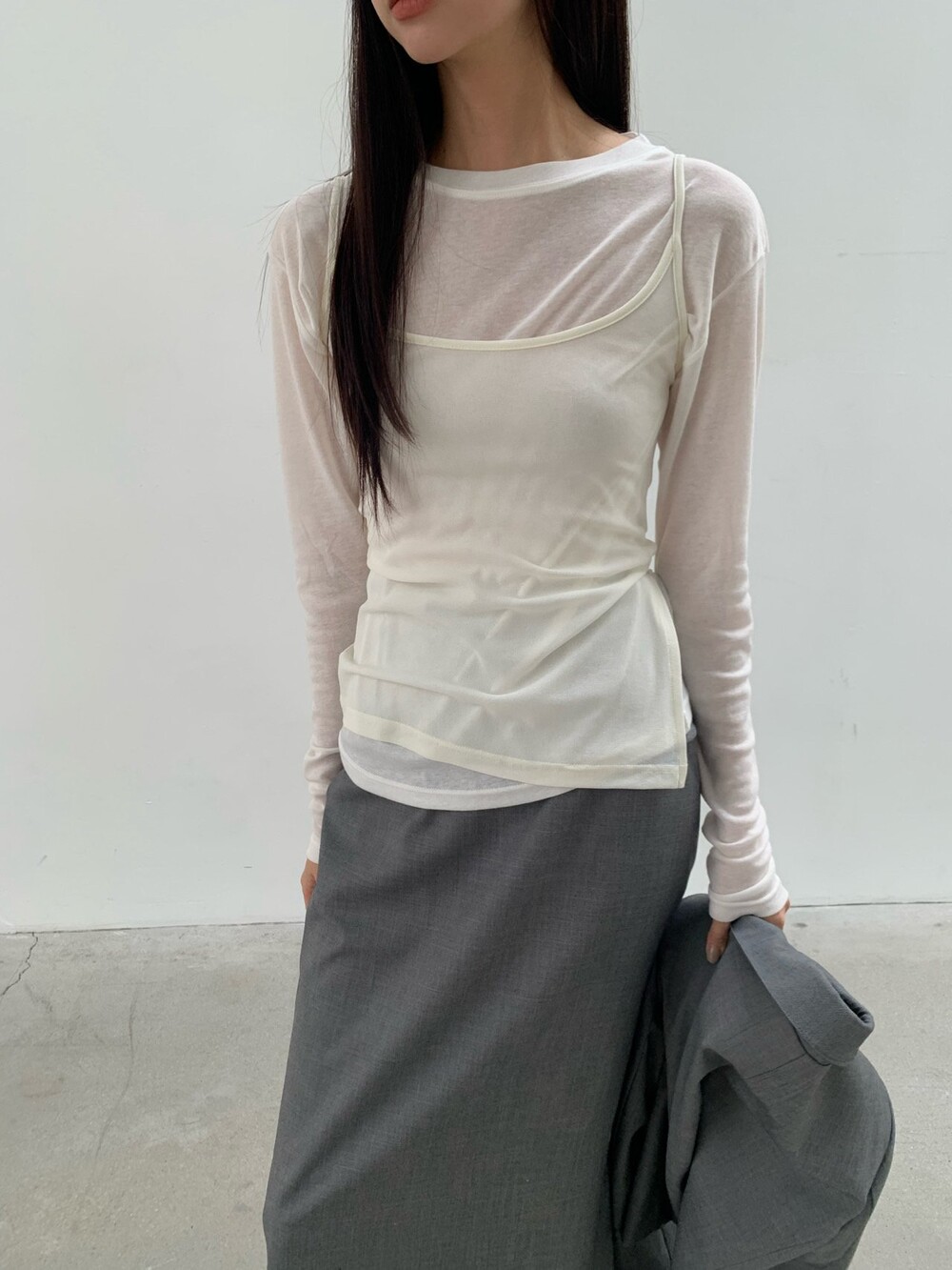 PLAIN SHEER SLEEVELESS & TOP SET (3C)