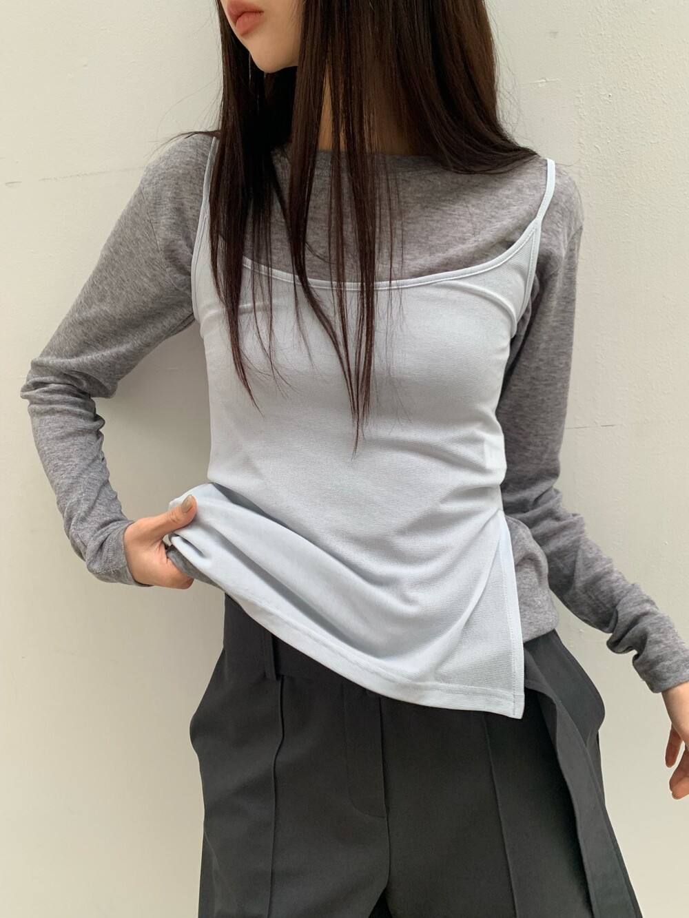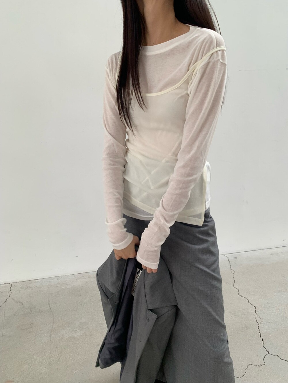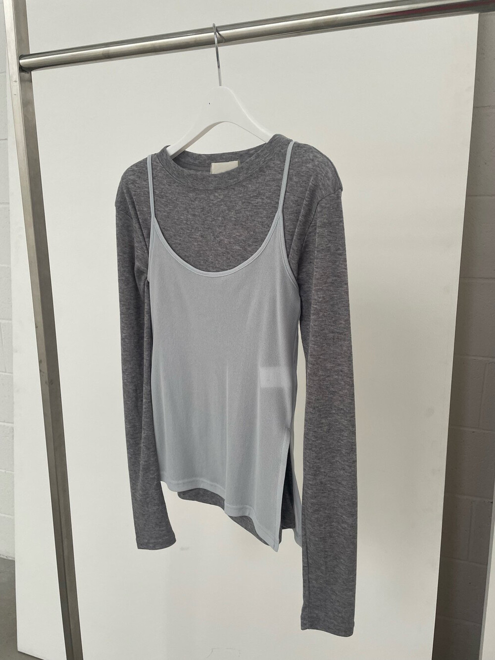 PLAIN SHEER SLEEVELESS & TOP SET (3C)