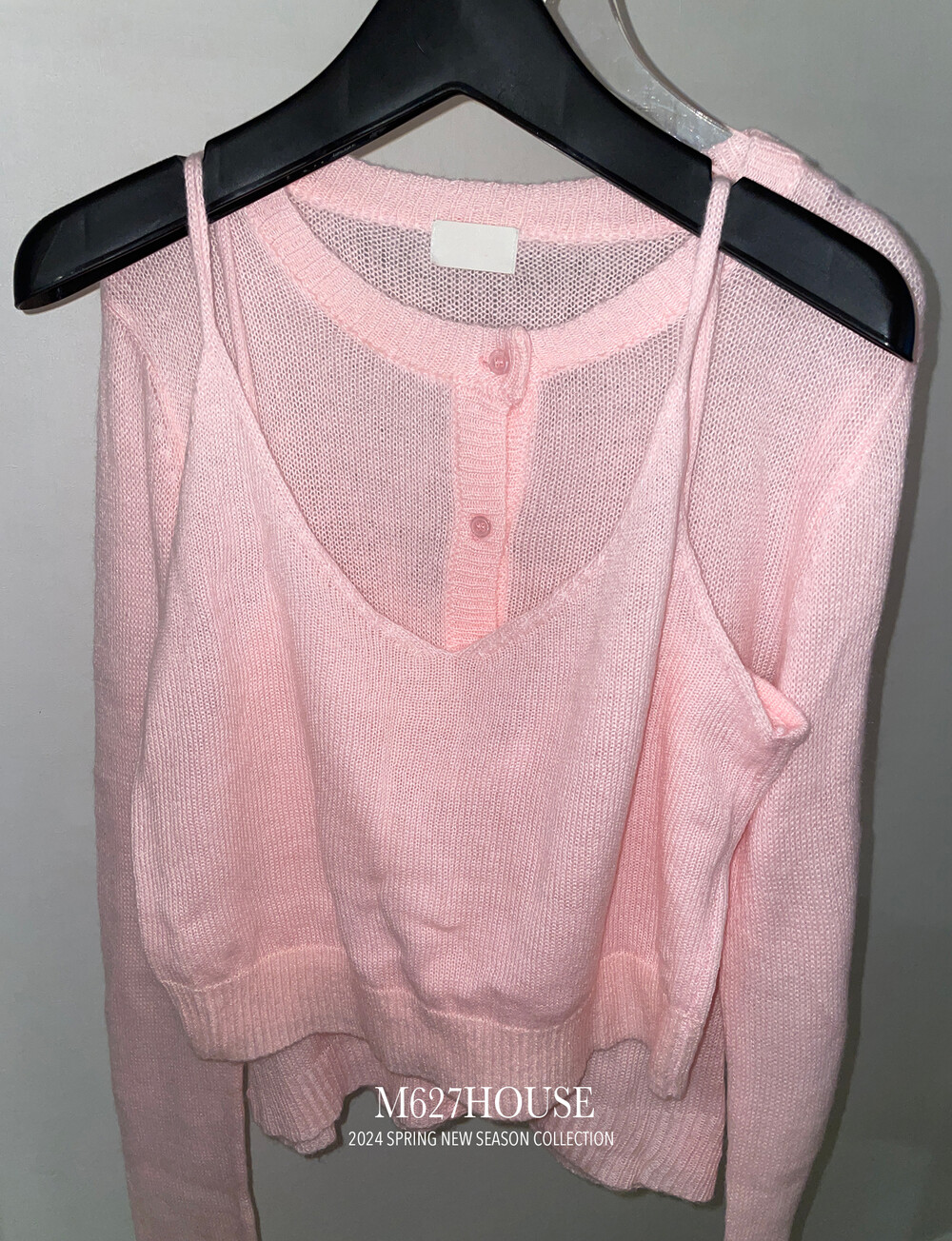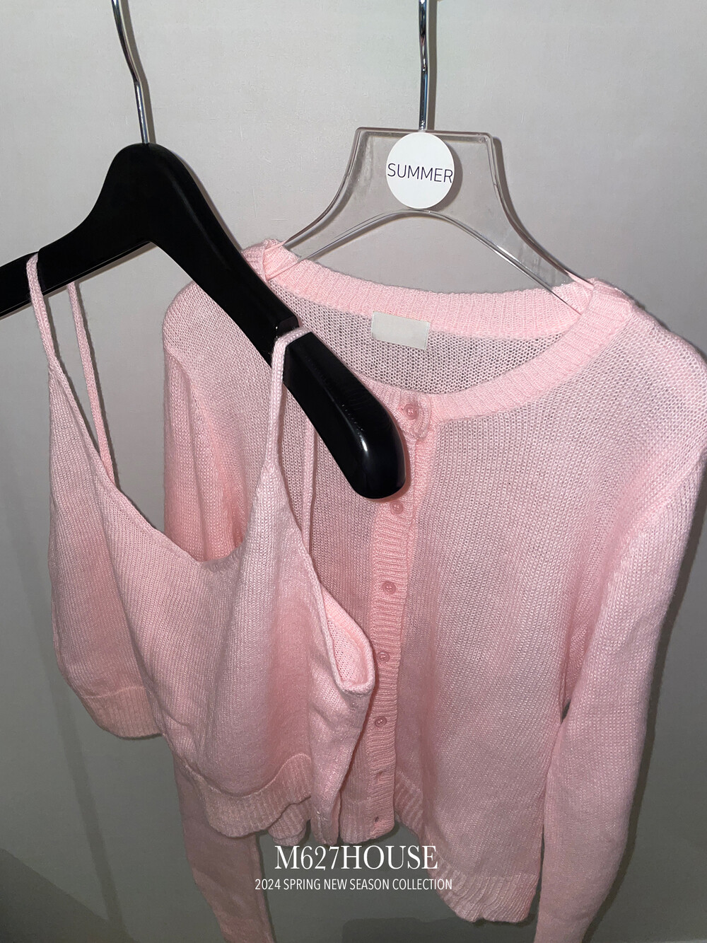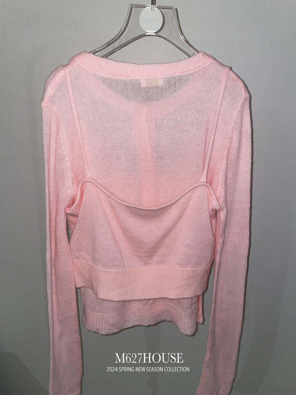 BREAD CARDIGAN+BUSTIER SET, POWDER PINK (3C)
