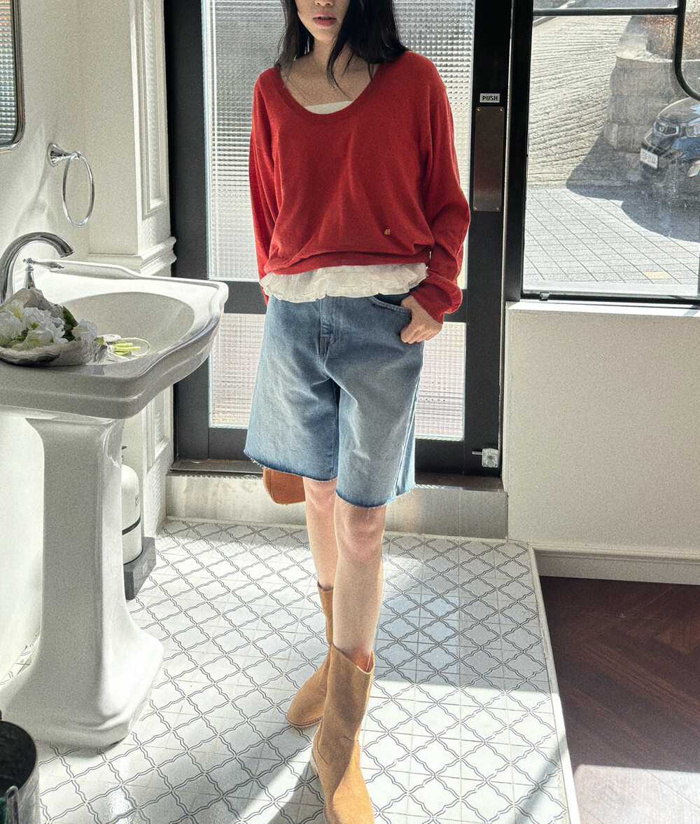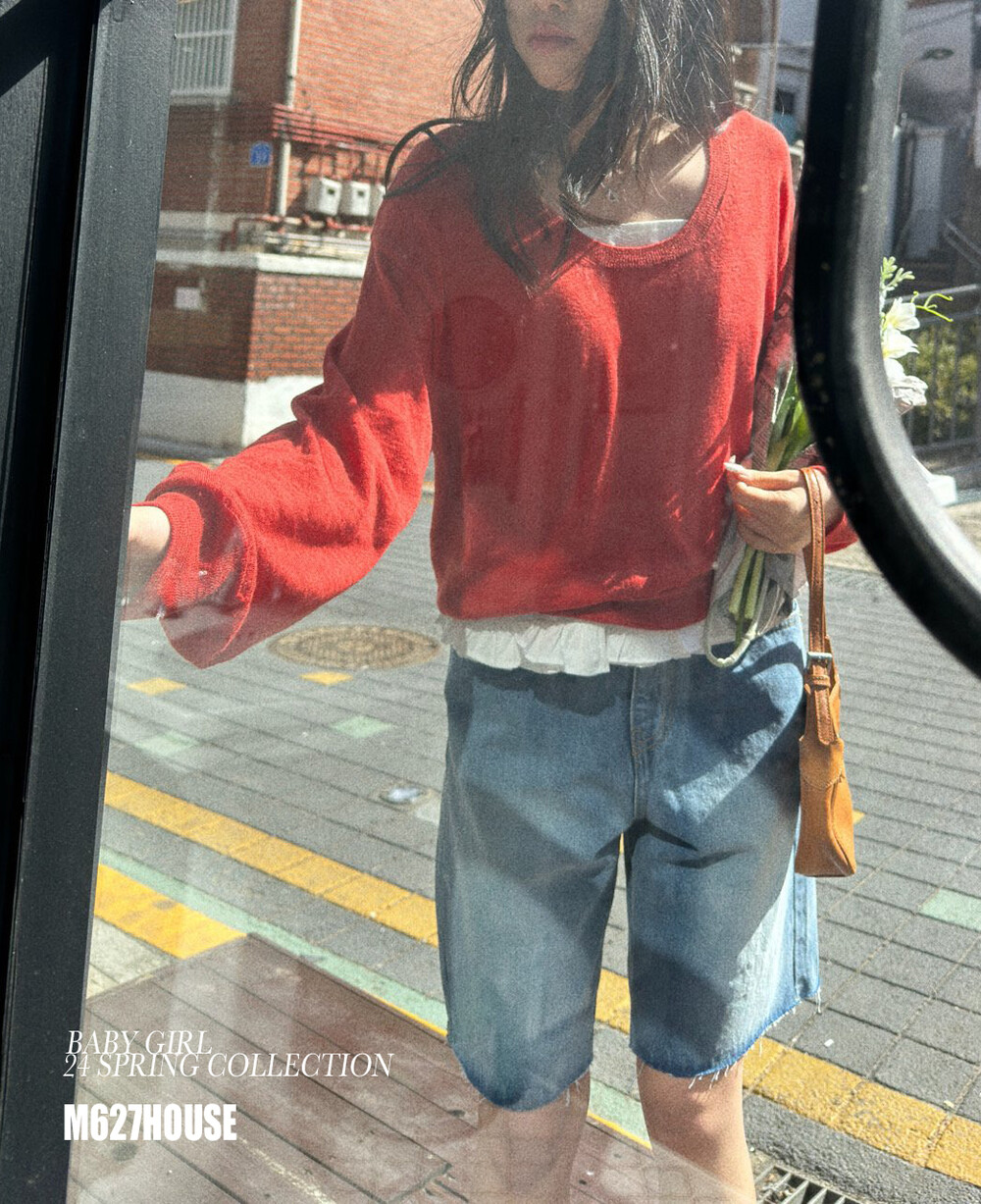 - 자연스럽게 흐르는 루즈핏의 스쿱넥 니트입니다.