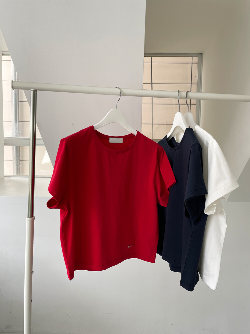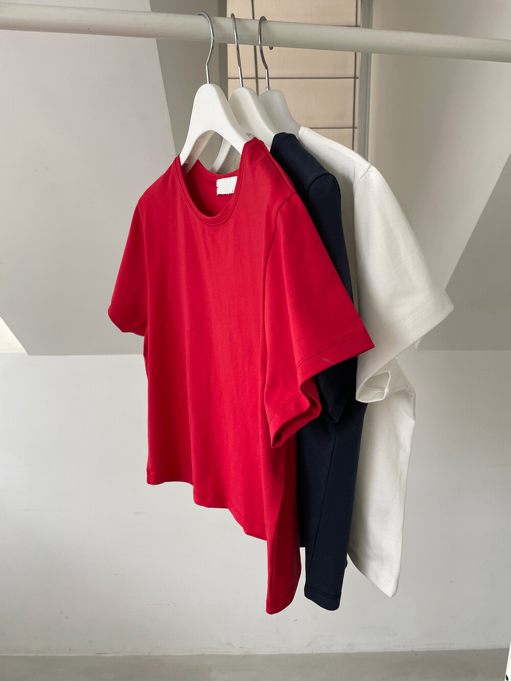- 탄탄하고 톡톡한 소재의 코튼 하프슬리브 티셔츠입니다.