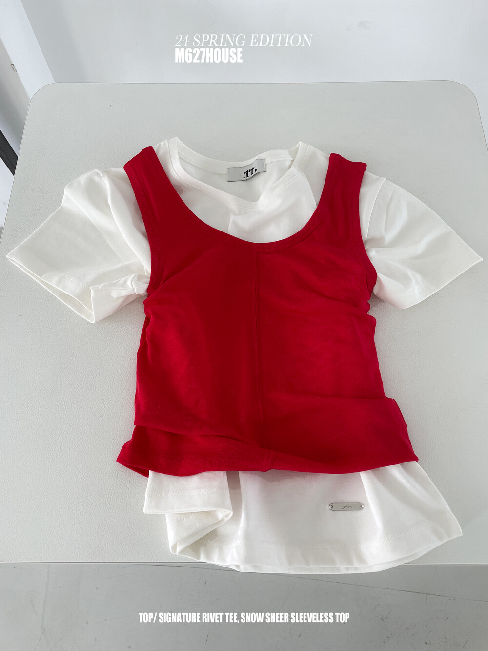 ―――――――――――――――――――――――――――――― PRODUCT INFO ∨ ―――――――――――――――――――――――――――――― - 가벼우면서 신축성이 높은 코튼혼방직의 슬리브리스 탑입니다. - 타이트하지 않으면서도 슬림하게 바디라인을 잡아줍니다. - 앞면에 절개 디테일을 더하여 유니크한 터치를 더하였습니다. - 24SS 트렌드인 쉬어한 텍스쳐를 사용해 트렌디함을 가미했습니다. - 매일 착용하기 좋은 디자인으로 탑으로 베이스 레이어로도 활용이 가능하고 데님 또는 가벼운 팬츠 등과 다양한 아웃핏을 만들어낼 수 있습니다.