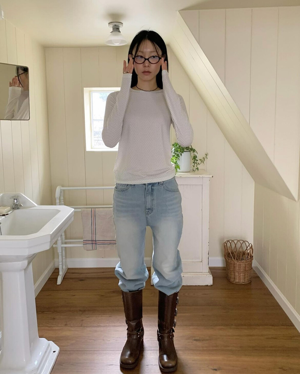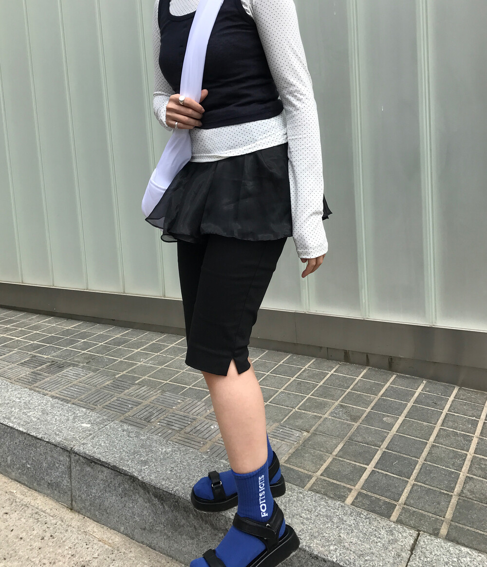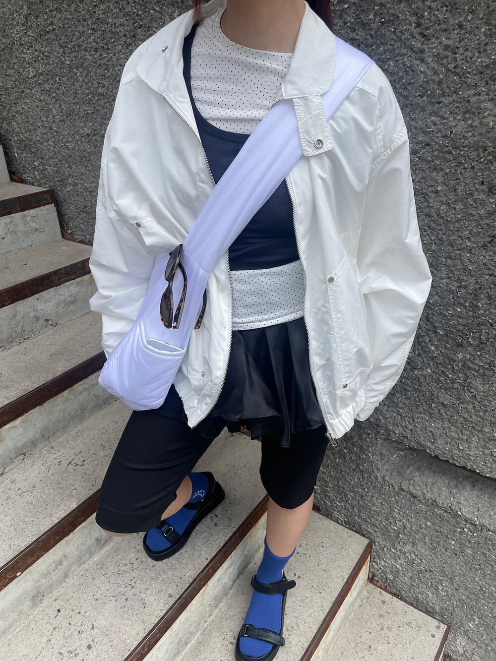 - 텐션감이 높아 답답하지 않으면서도 바디라인을 적당히 잡아주어 슬림해보입니다.
