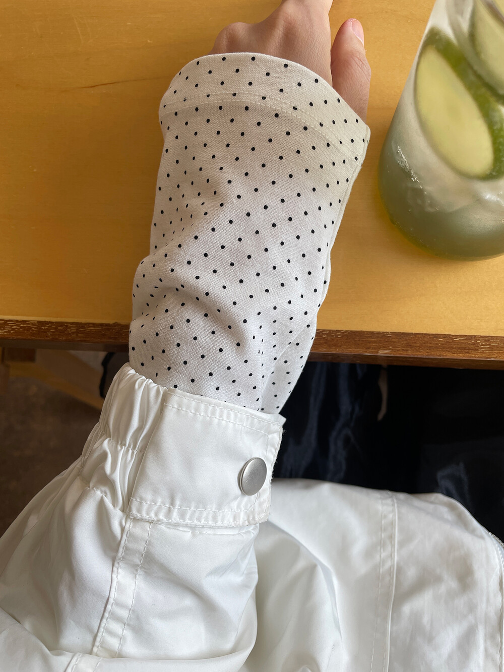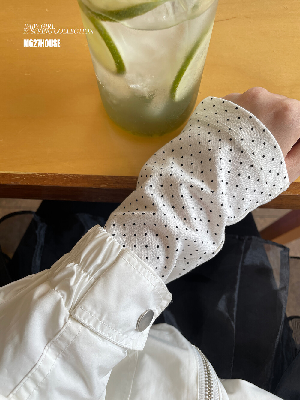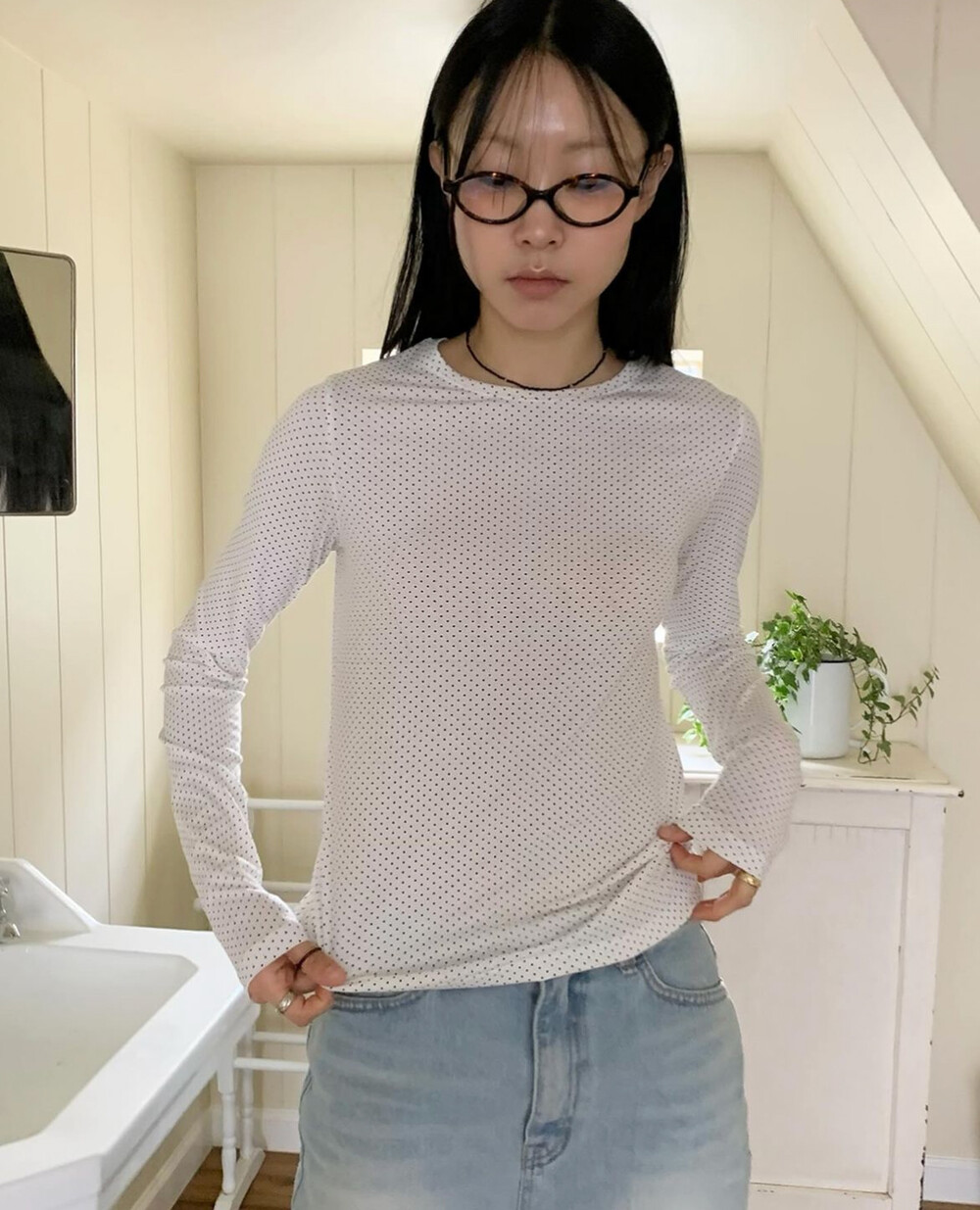 - 큐트한 무드의 도트 패턴물이 돋보이는 롱 슬리브 티셔츠입니다.