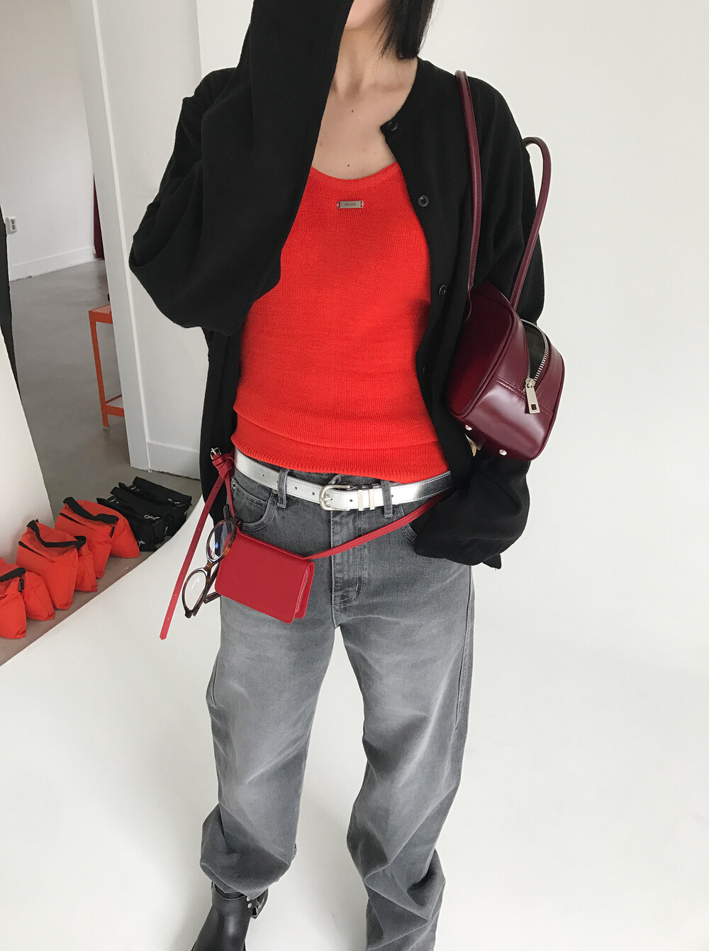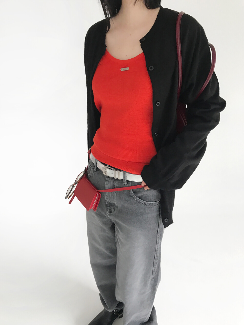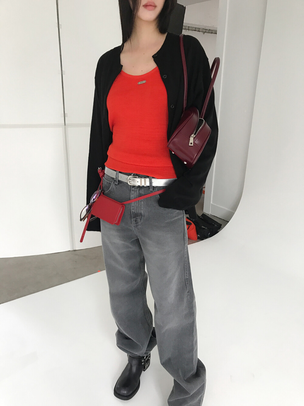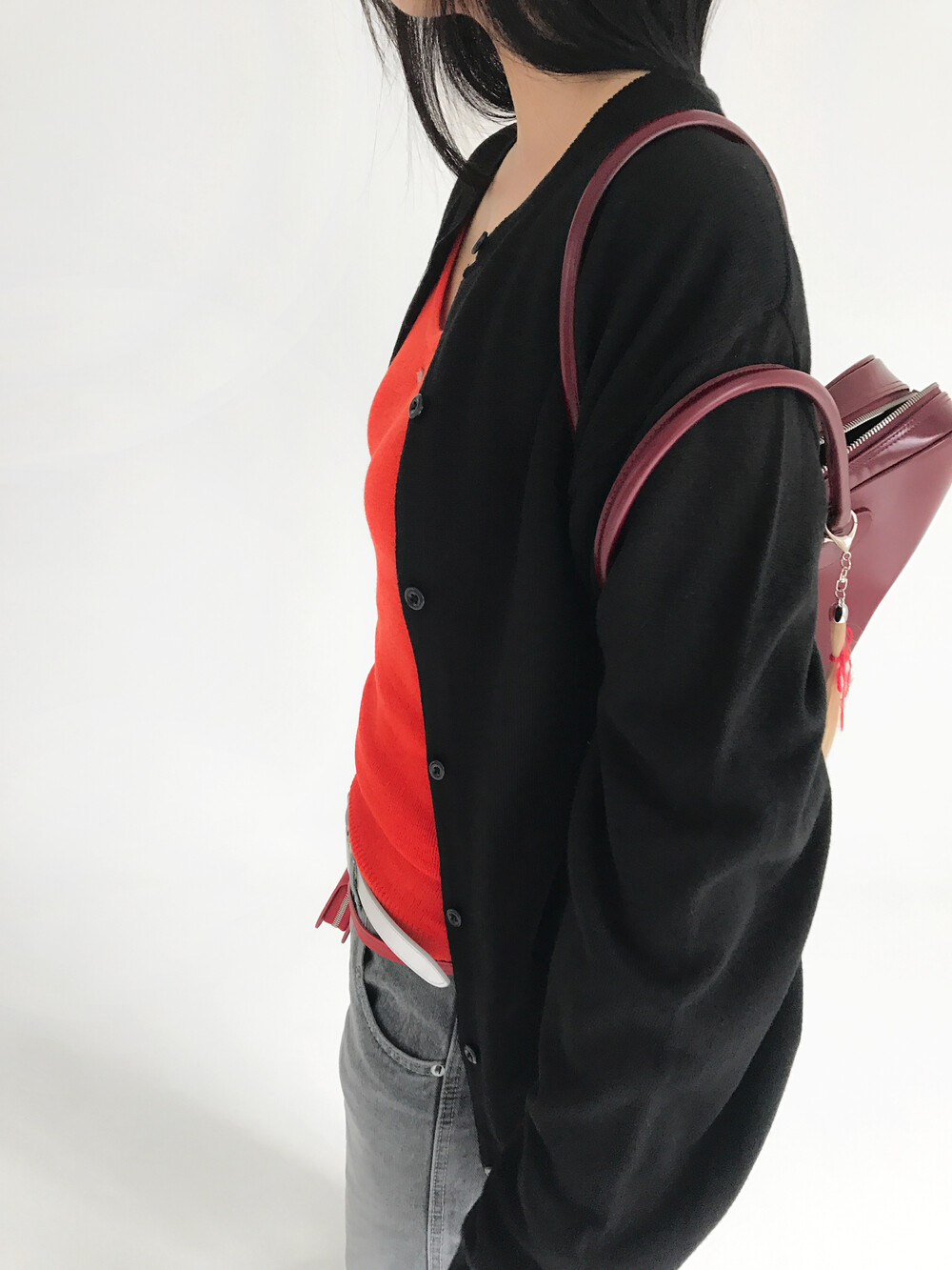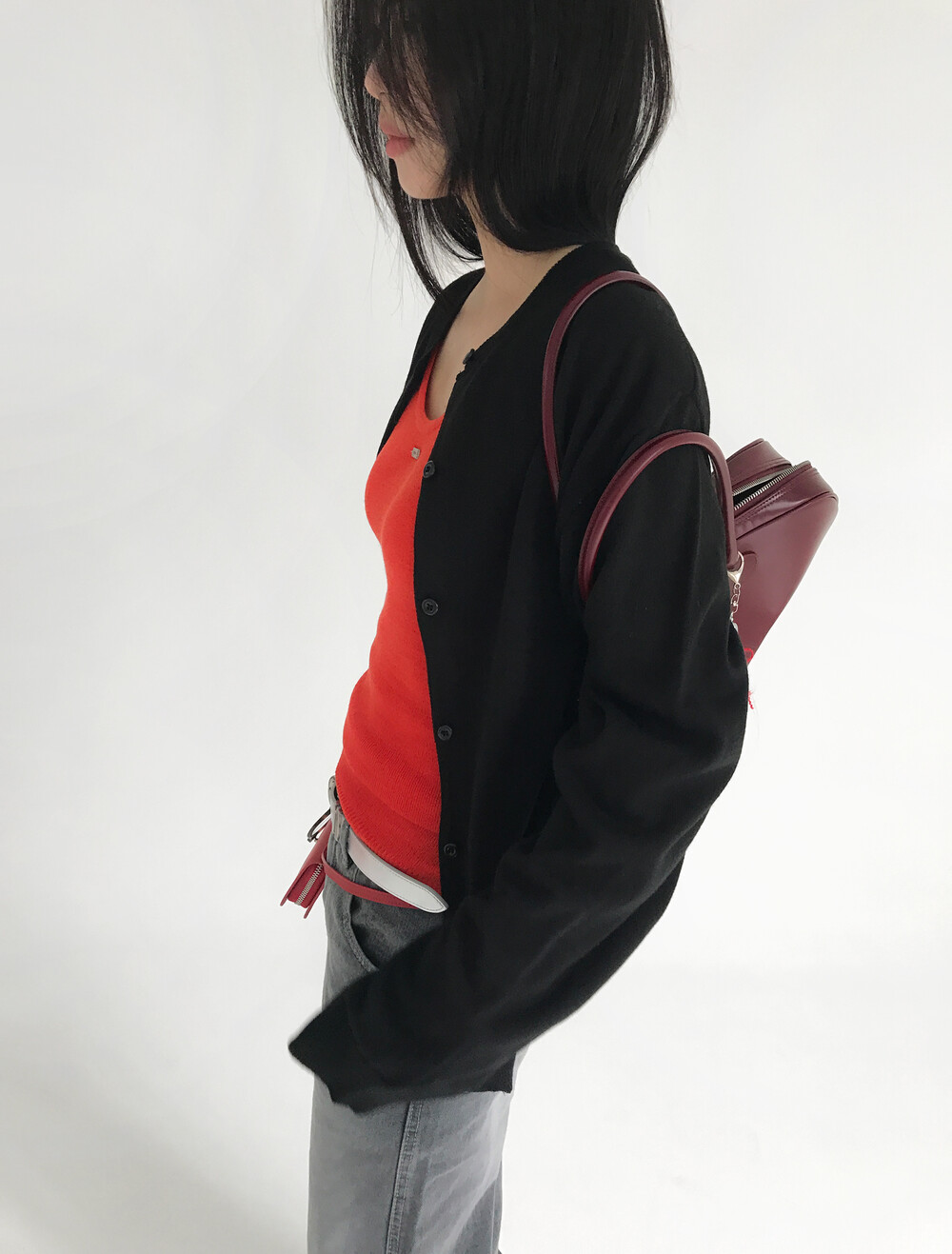 레드보다는 좀 더 부드러운 컬러의 다홍색이에요!