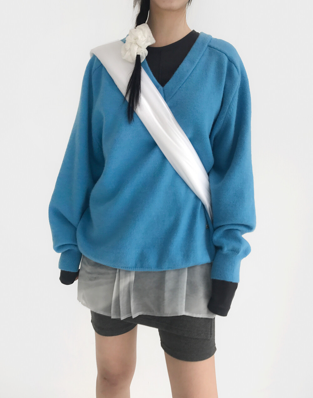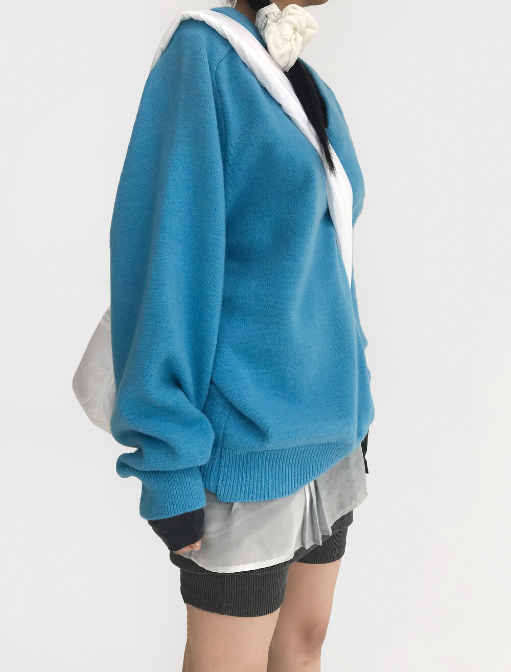AIRY COLOR V-NECK KNIT, SODA BLUE (3C)