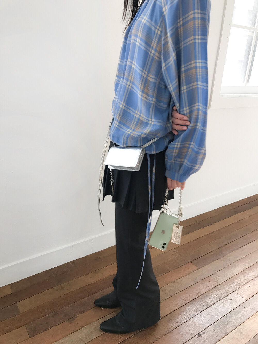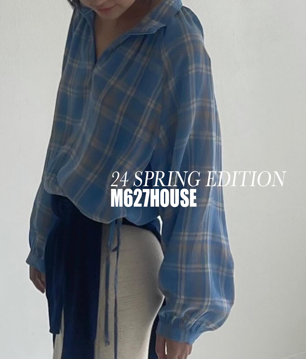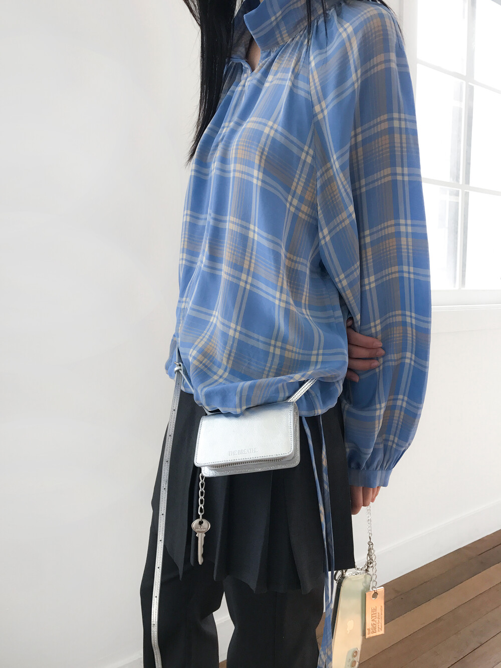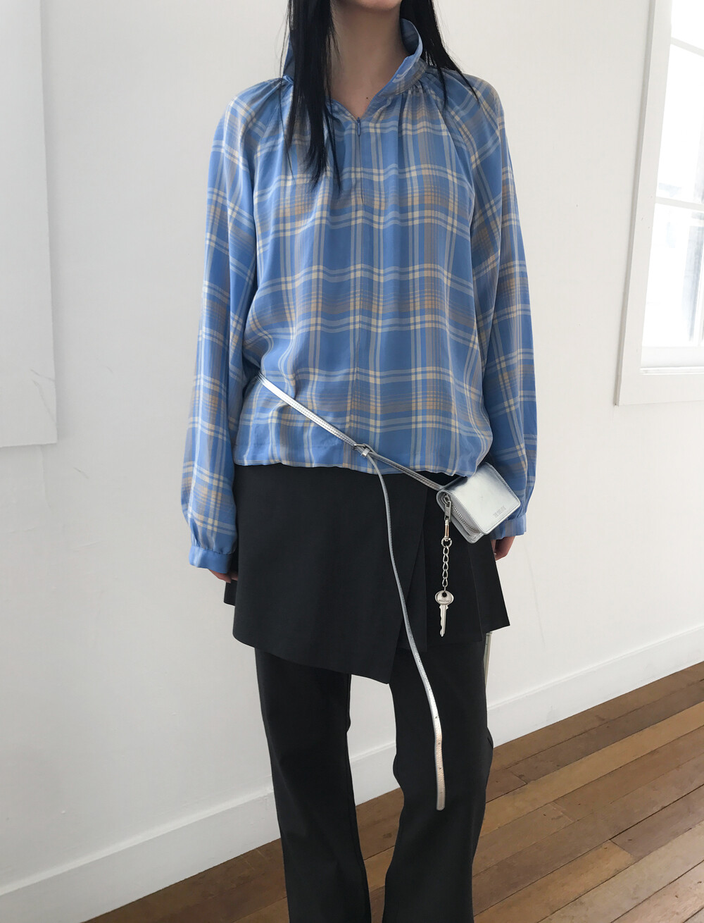 바로 제가 가장 사랑하는 체크+파우더블루컬러+블라우스 소재인데