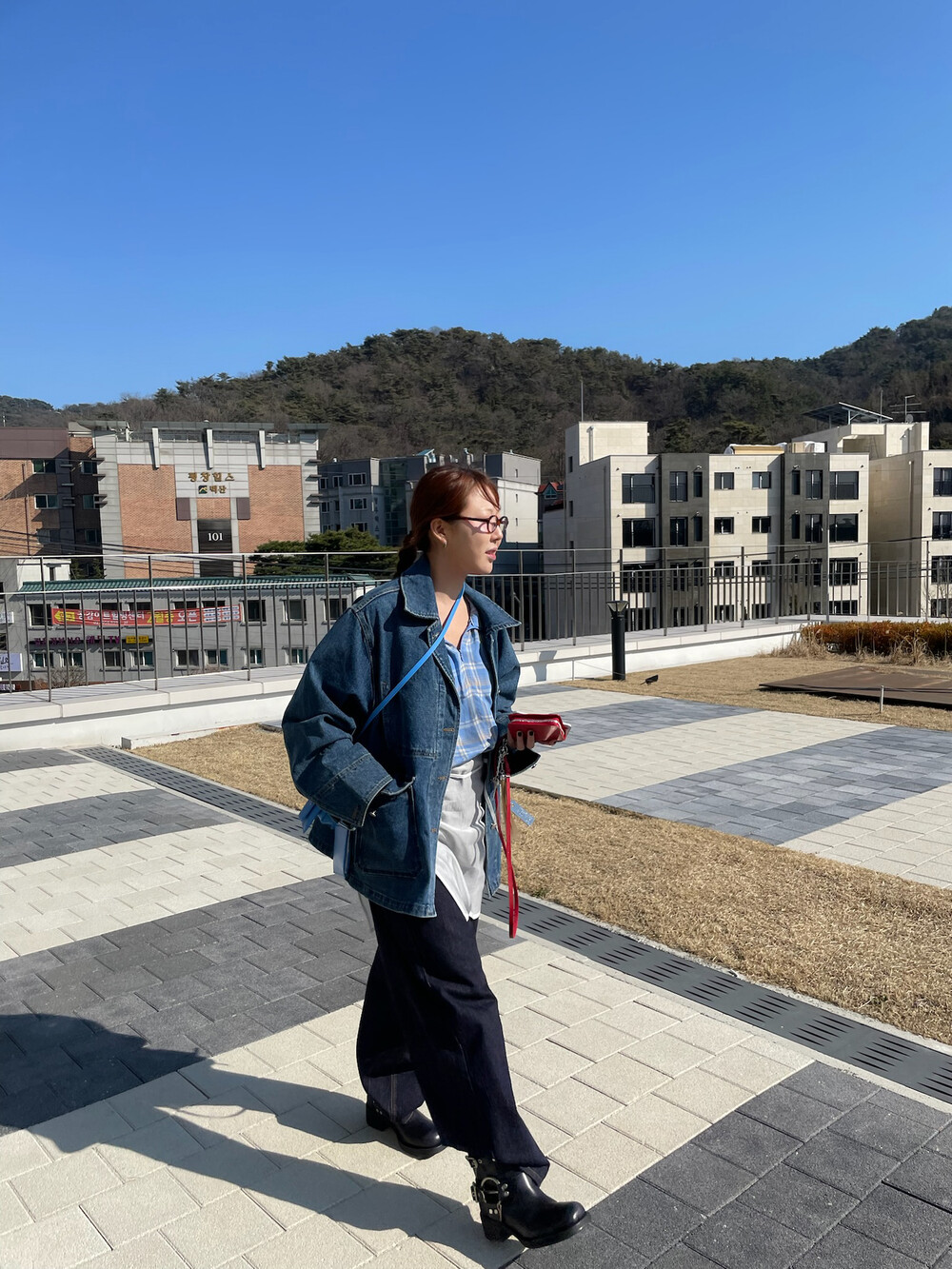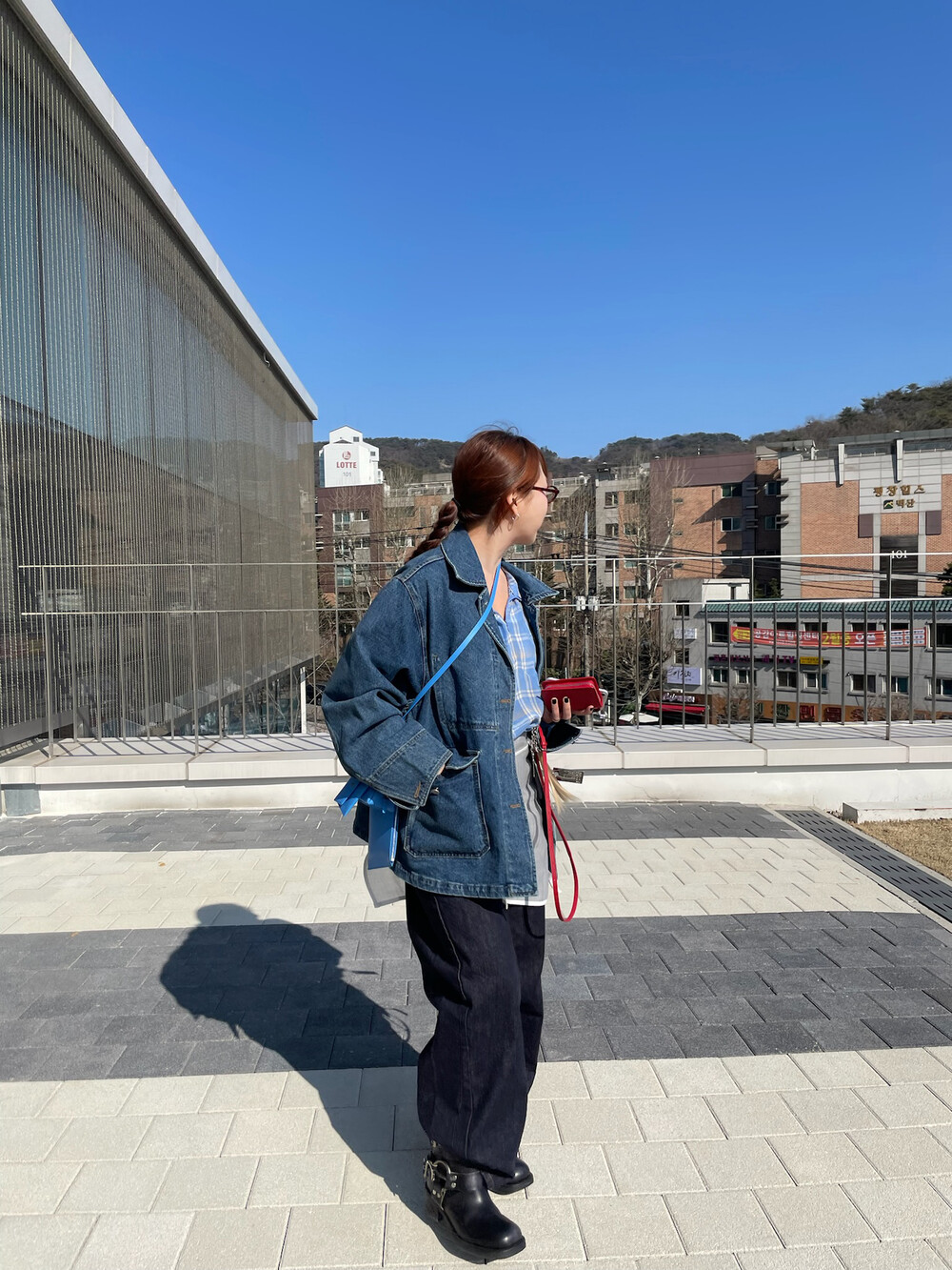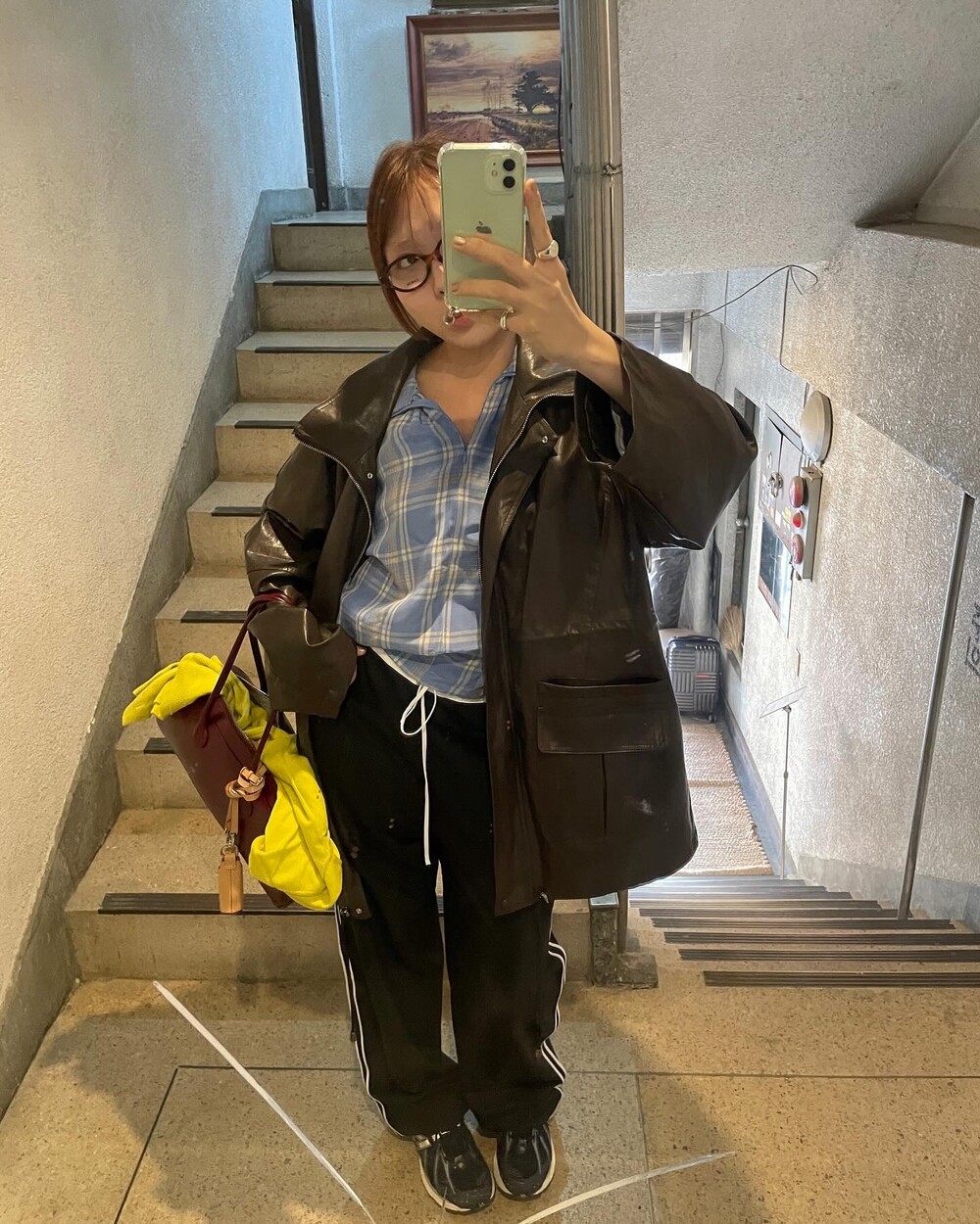 또 은은한 체크패턴으로 무난한 룩에 포인트가 되어주는데 튀지도 않고!