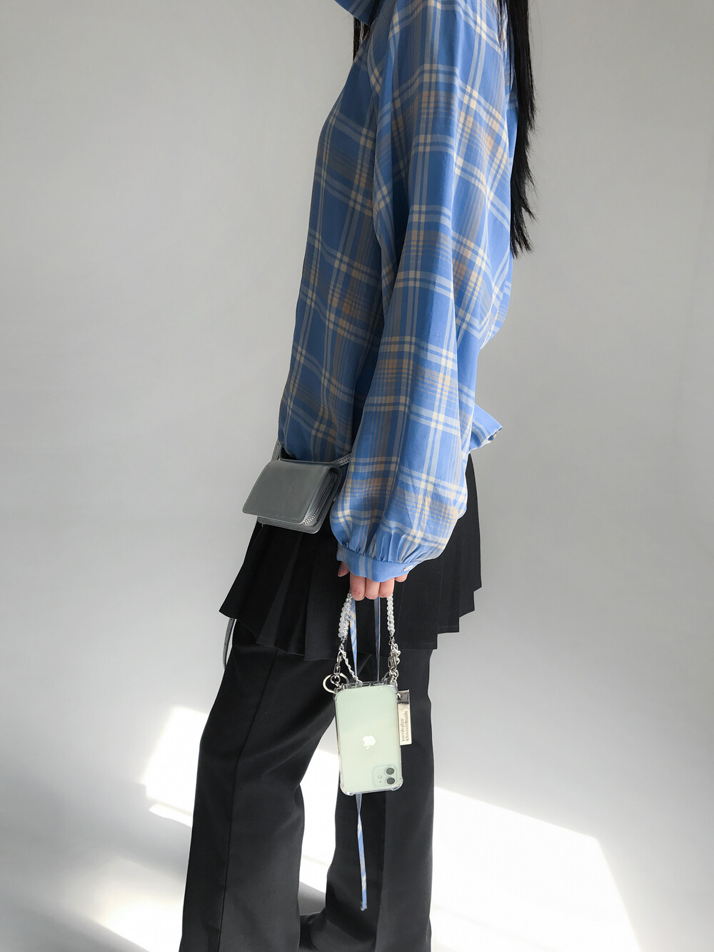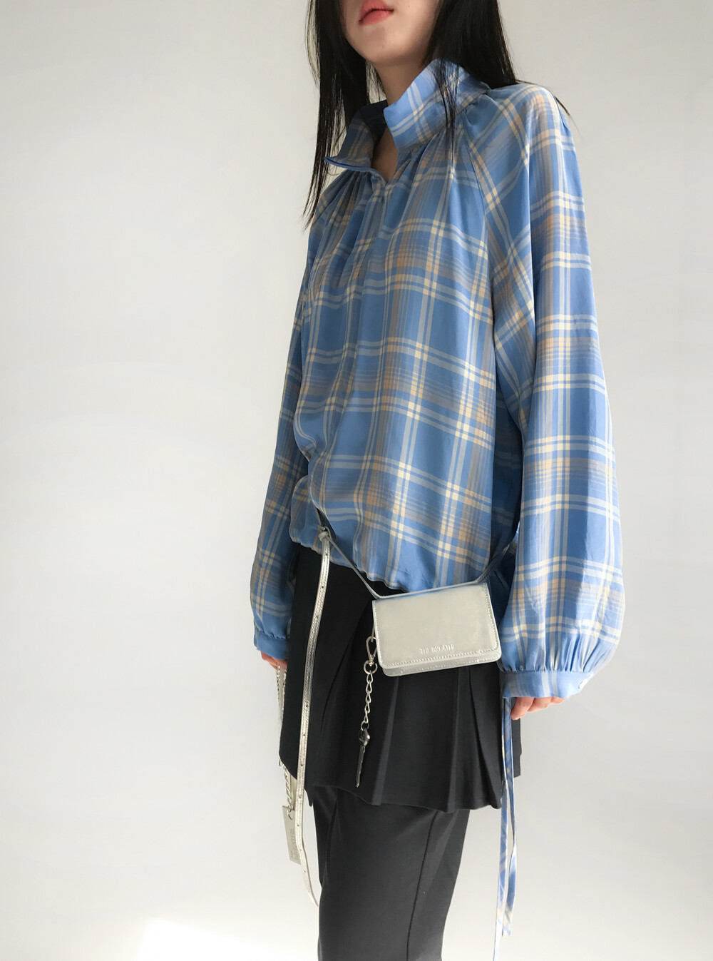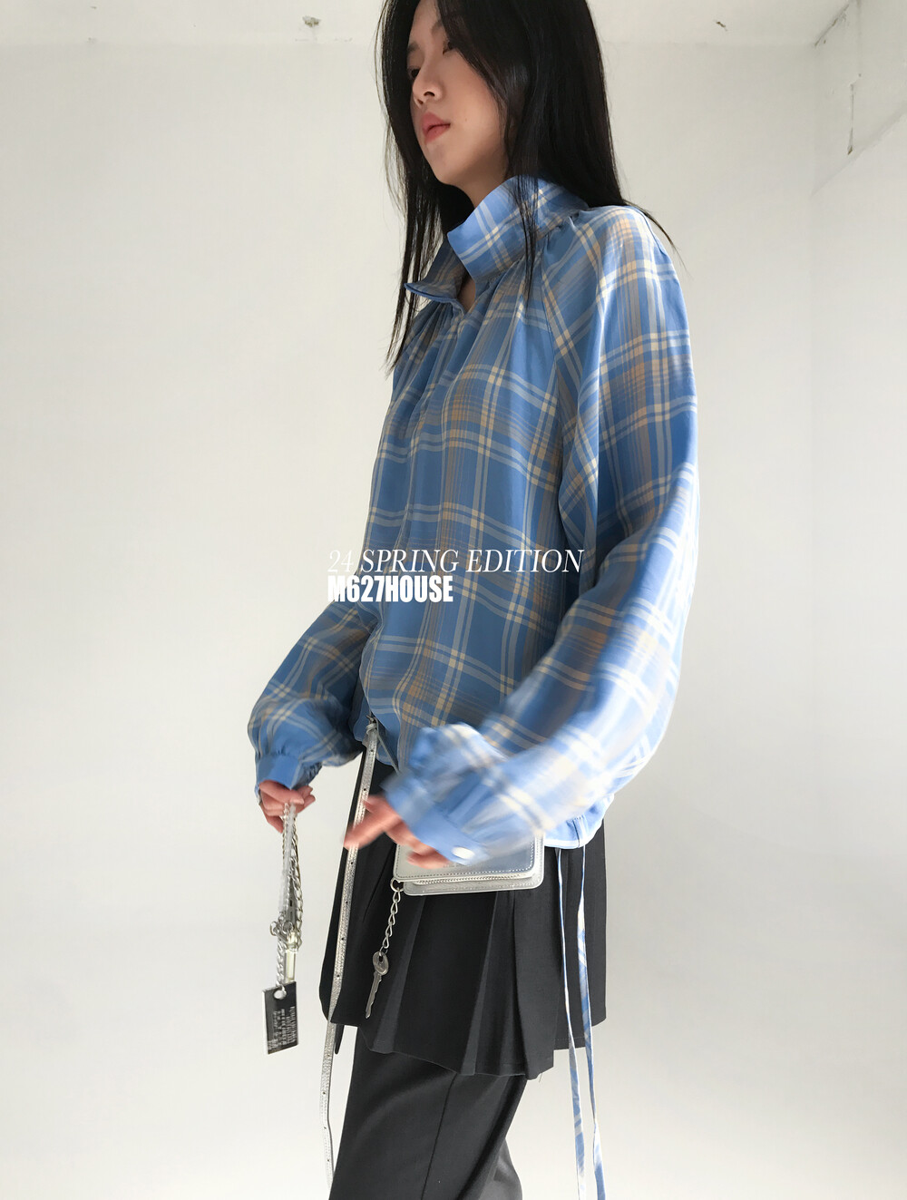 블라우스인데 또 패턴과 컬러는 결코 흔하지 않은 고급스러운 체크패턴까지.