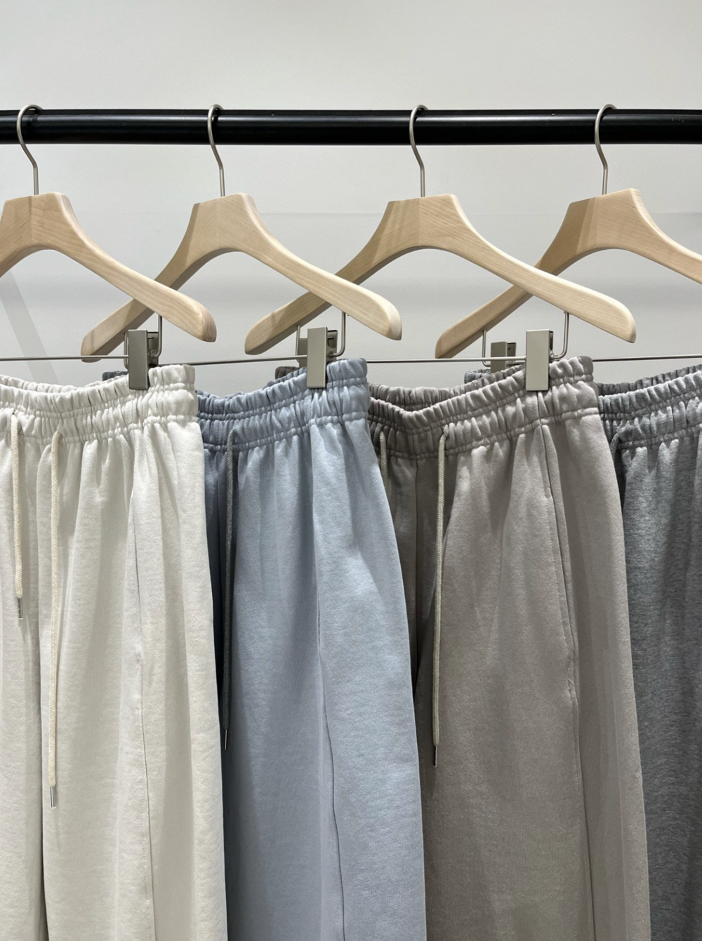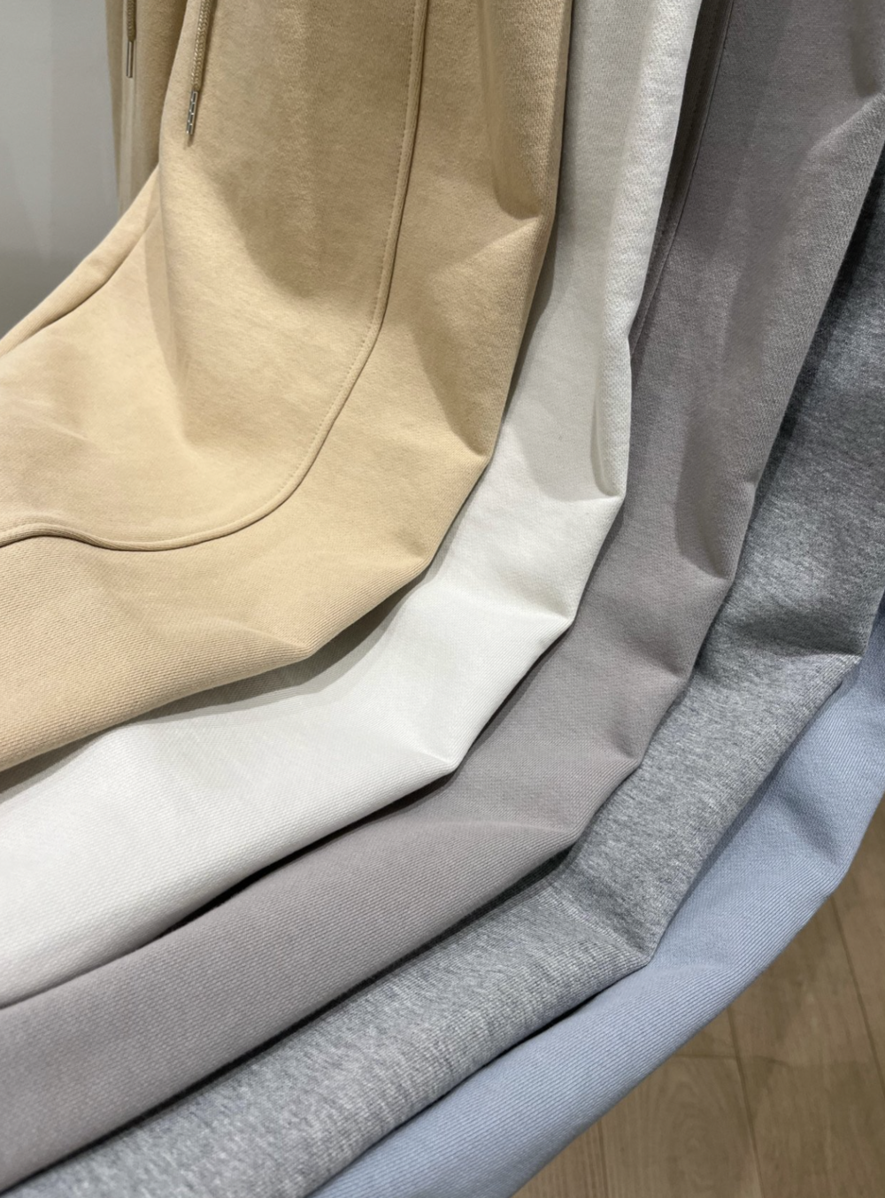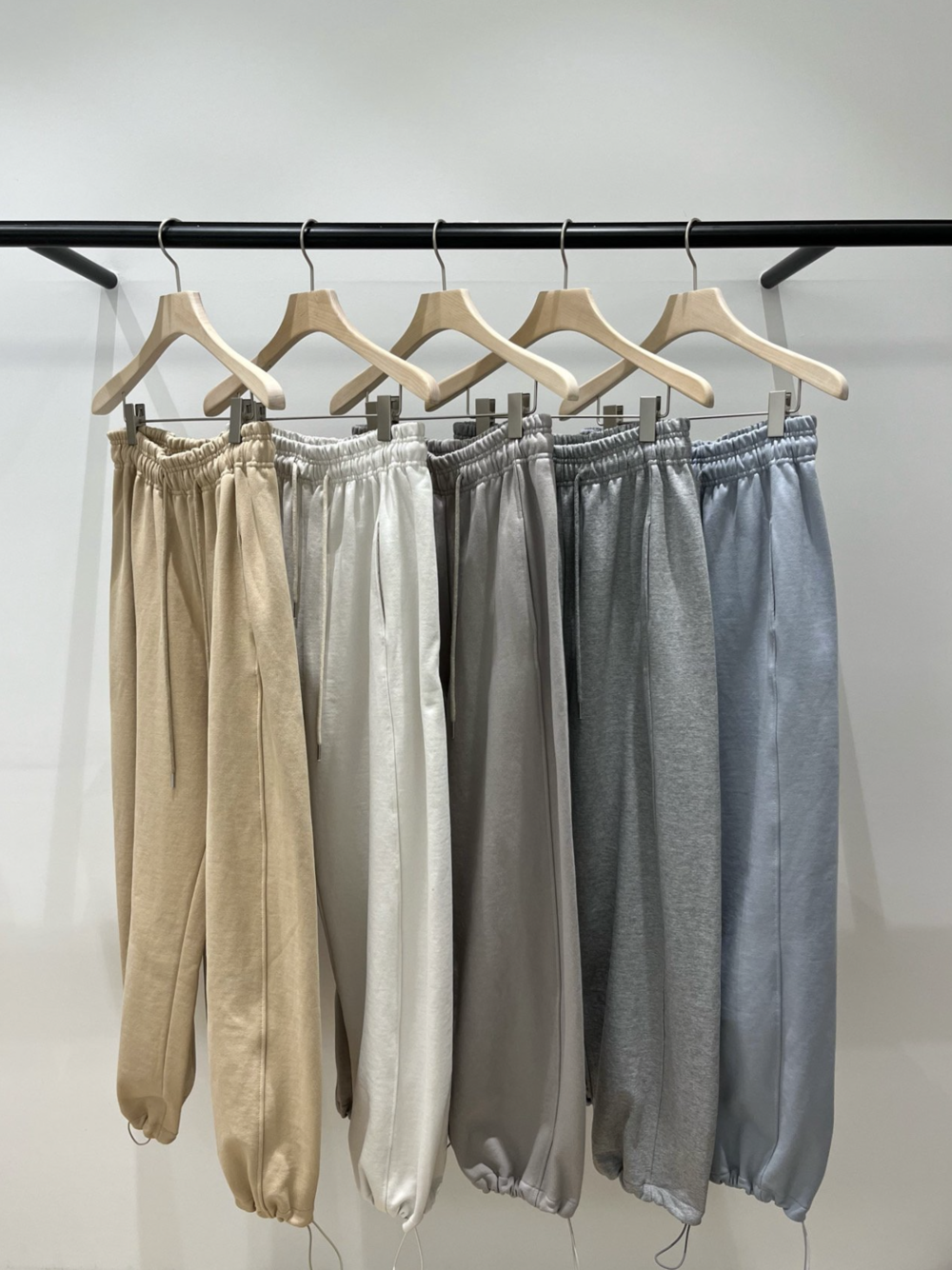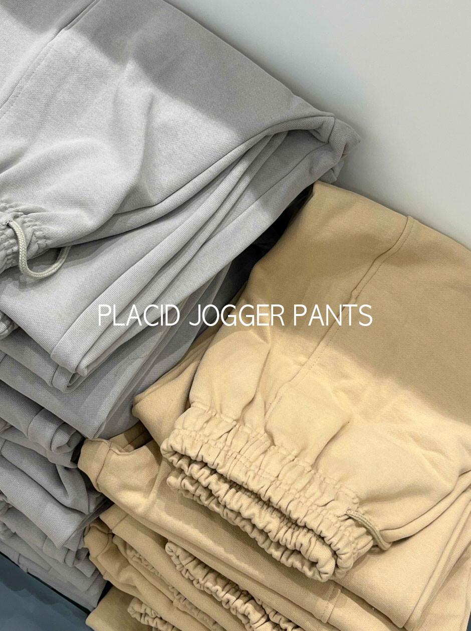 이번 컬렉션에서 가장 추천드리고 싶은 제품 중 하나인 플라시드 조거 팬츠입니다! 원래 제품들 컬러를 셀렉할 때 컬러가 너무 많아서 고르기 힘들고 고민이 많아지고 그런걸 좋아하지 않아서, 항상 소량의 컬러들로만 셀렉해서 보여드렸어요.