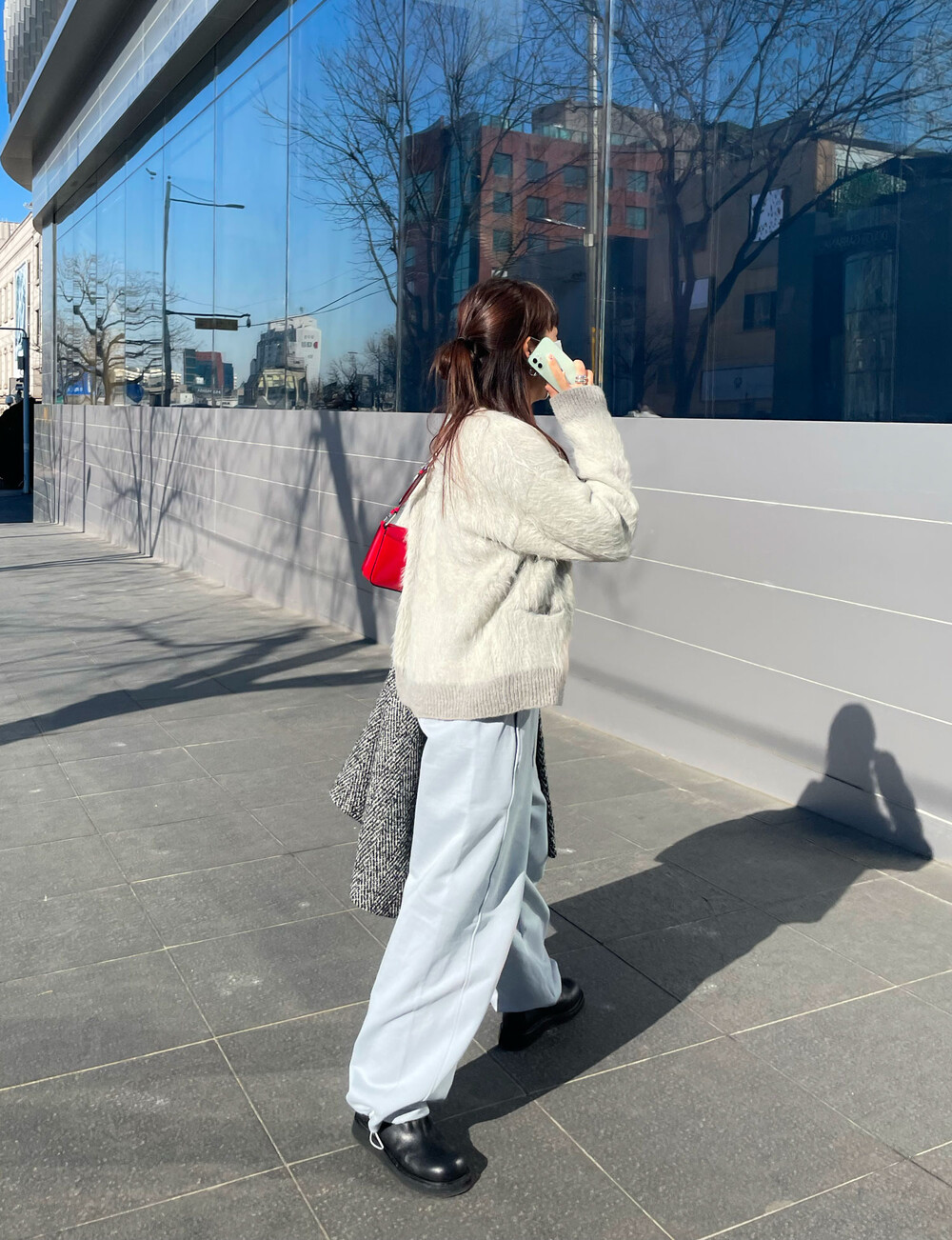 아! 그리고 소재가 막 두꺼운건 아니지만, 정말 사계절 전부 착용할 수 있는 소재에요. 아주 한겨울엔 단독으로 입기엔 조금 추울 수도 있지만, 저는 이번에 한파가 갑자기 찾아왔을 땐 안에 히트텍 입고 매치했어요. 정말 시즌리스 아이템들이 가성비로도 그렇고 최고인 것 같아요.