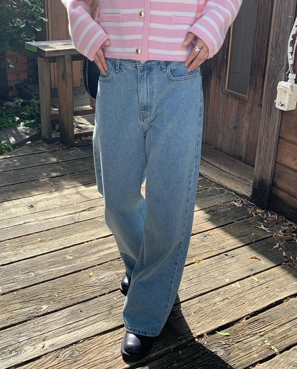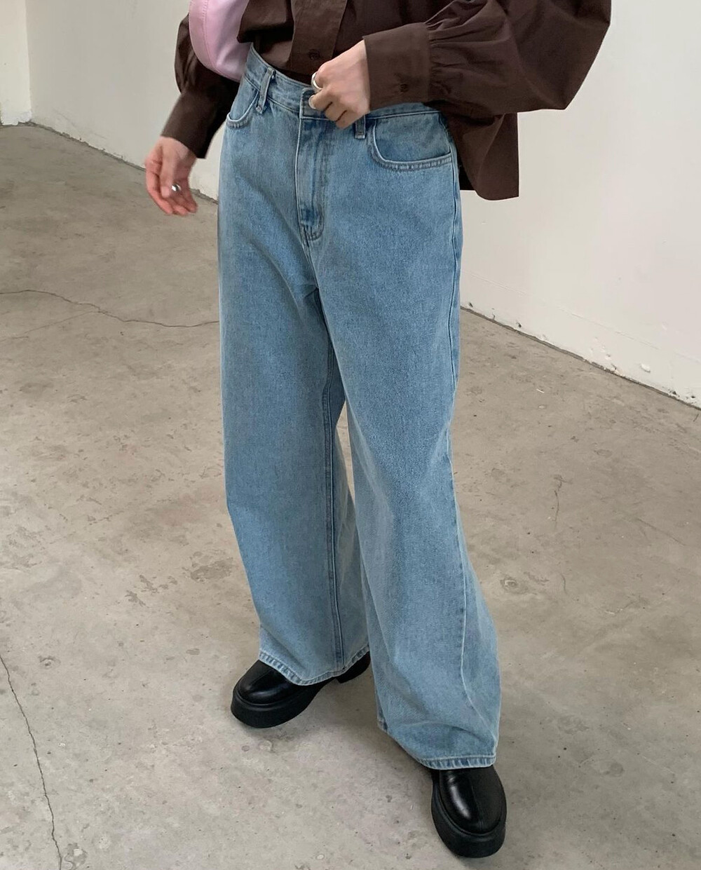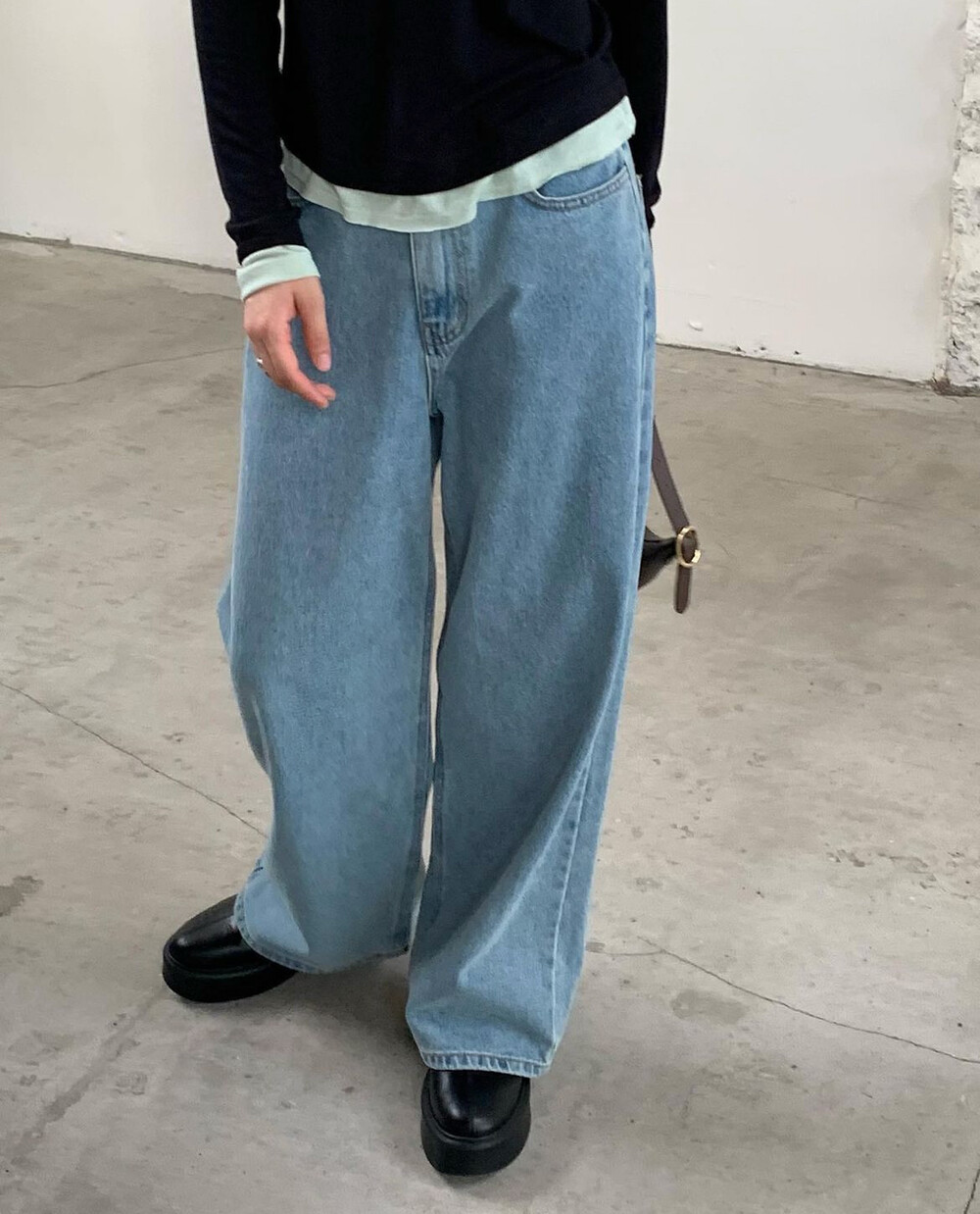 - 밀키한 컬러감의 라이트 블루 중청 데님입니다.