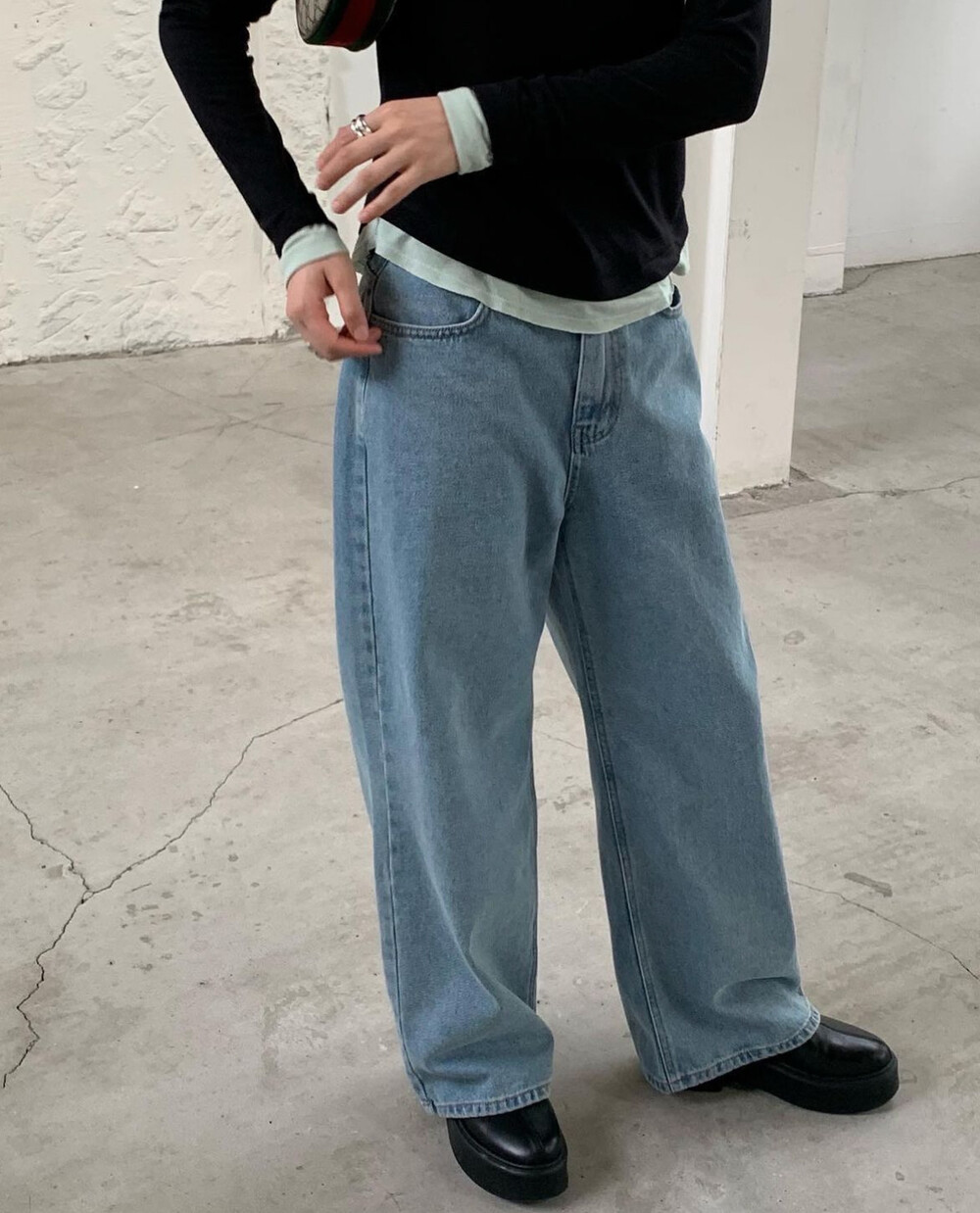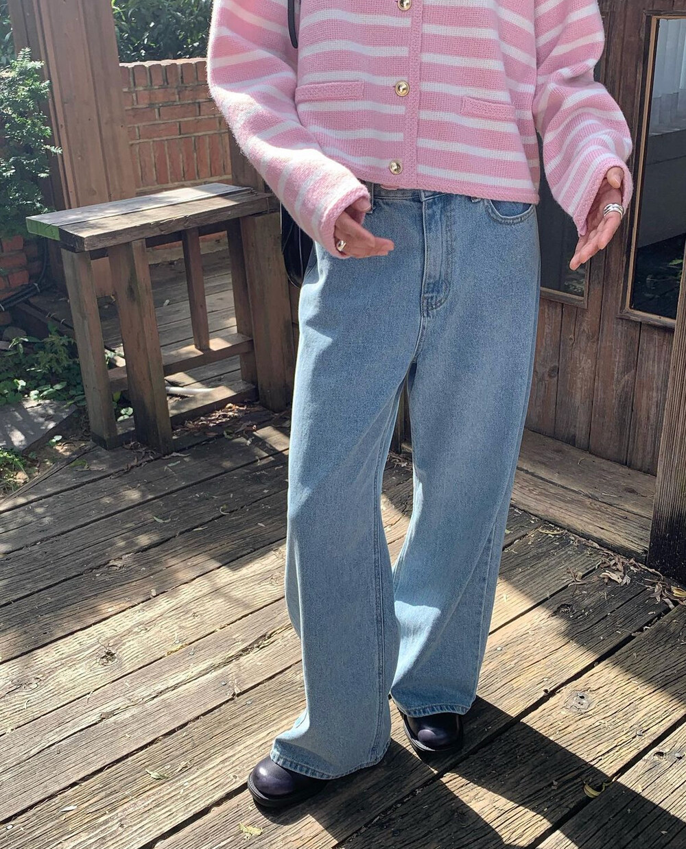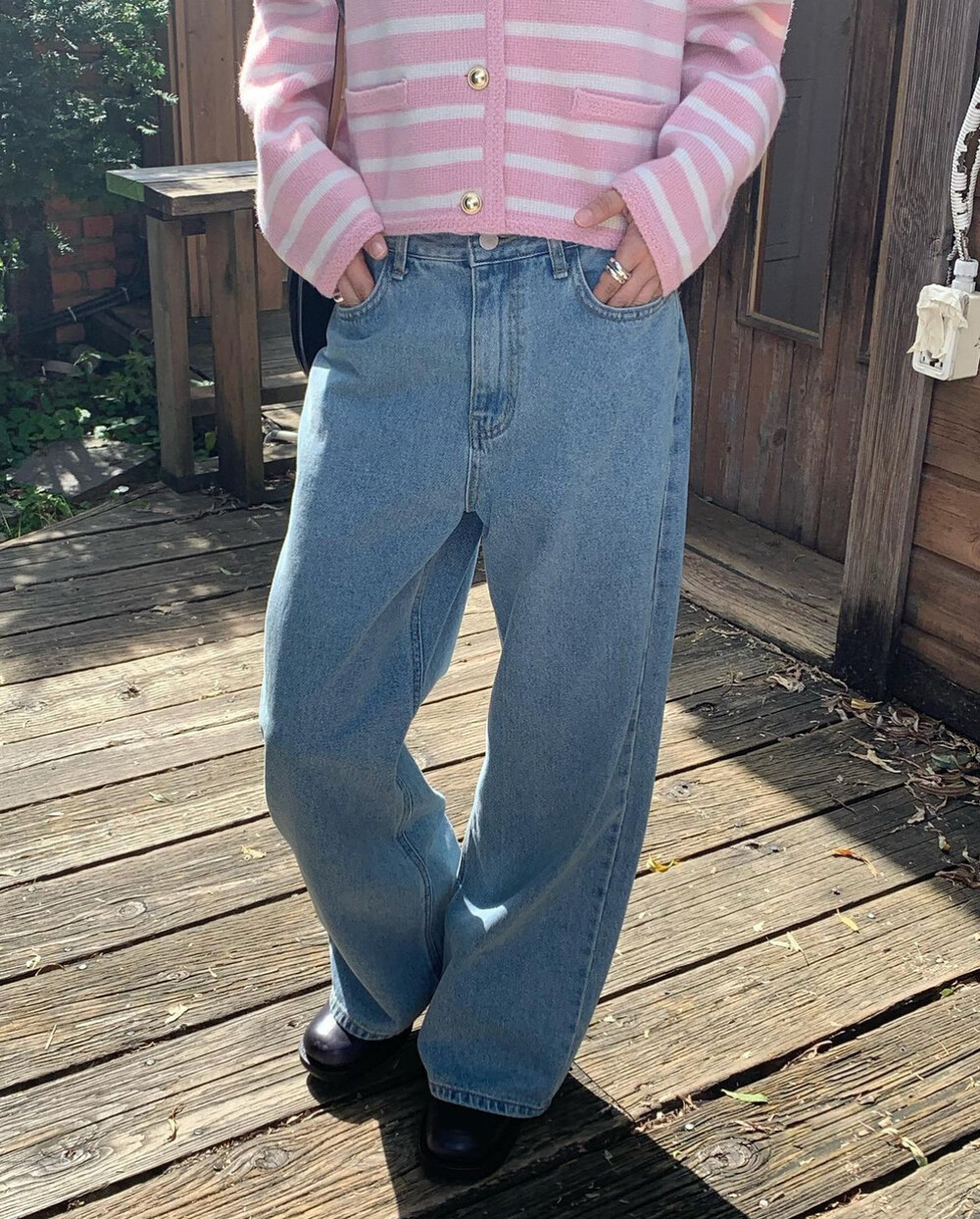 - 밀키한 컬러감의 라이트 블루 중청 데님입니다.