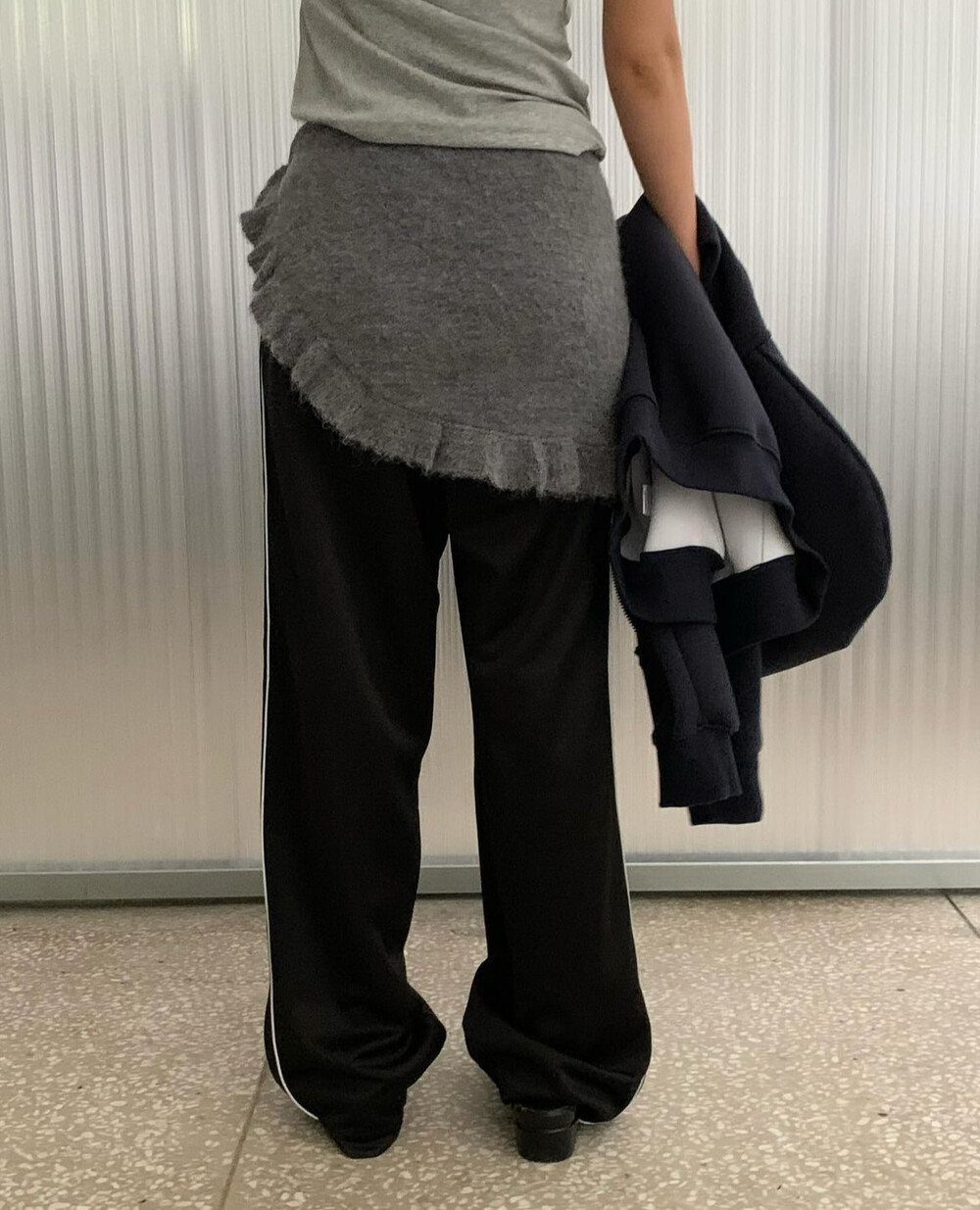 스포티하면서도 포인트가 되는 트레이닝 트랙팬츠.