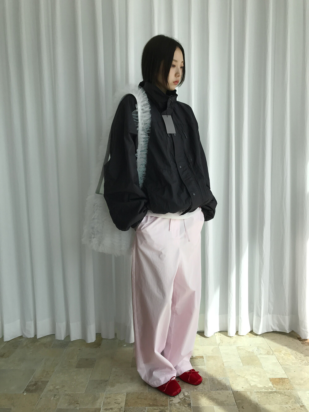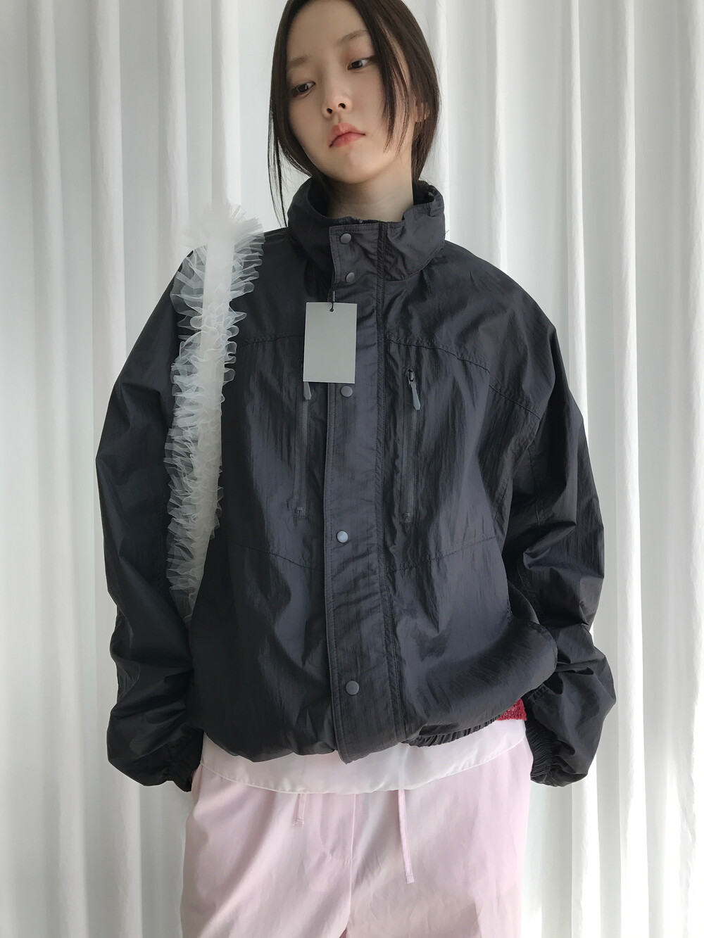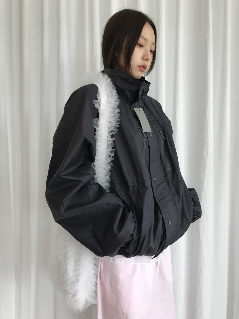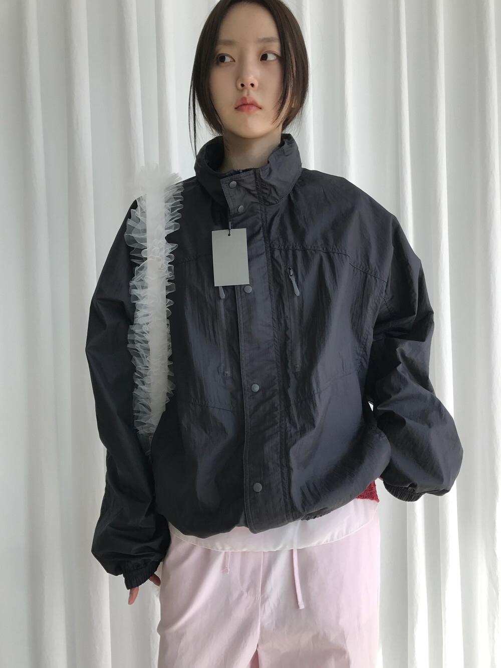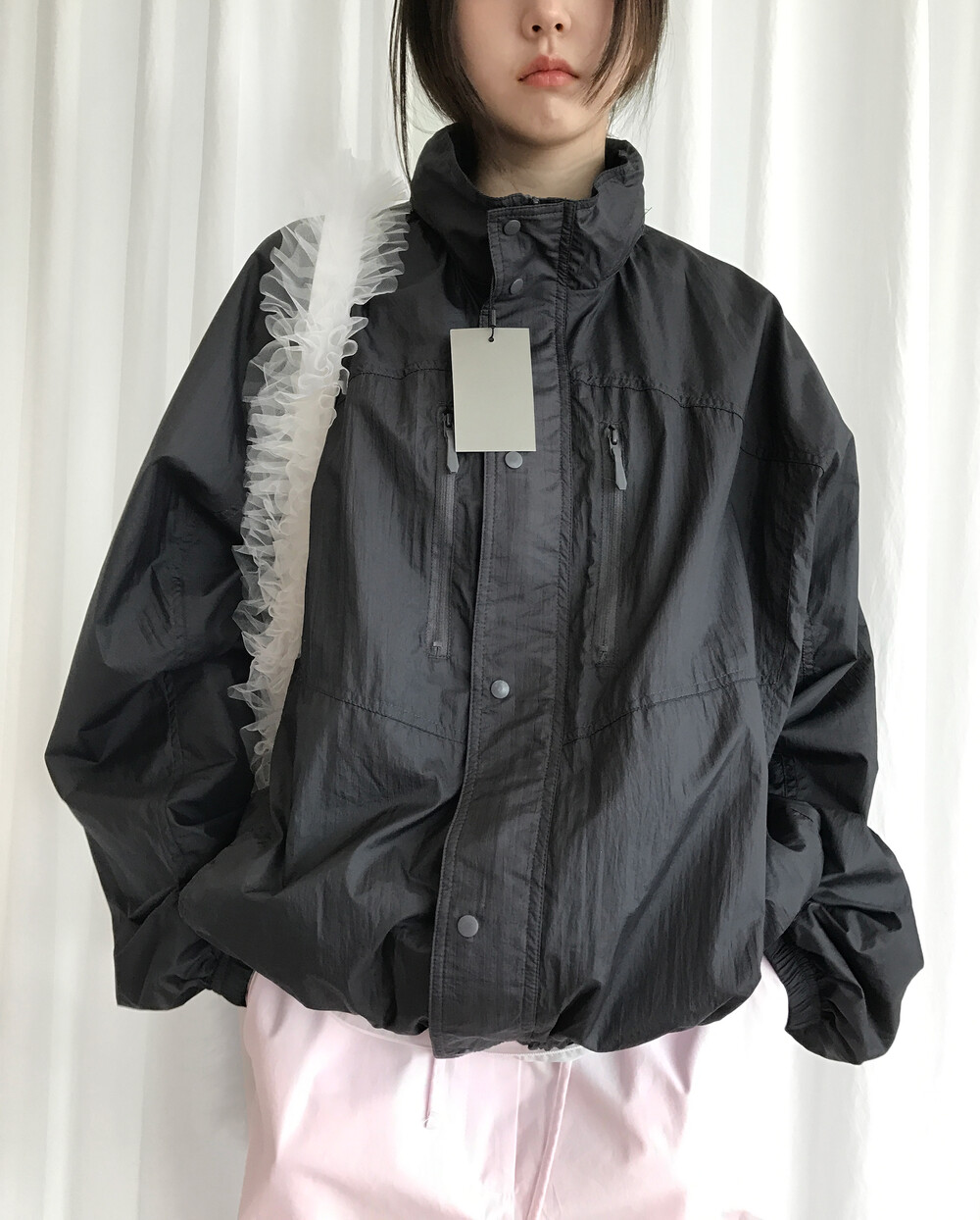 바스락거리는 나일론 소재 특유의 텍스처는 빛에 따라 은은한 광택이 살아나며,