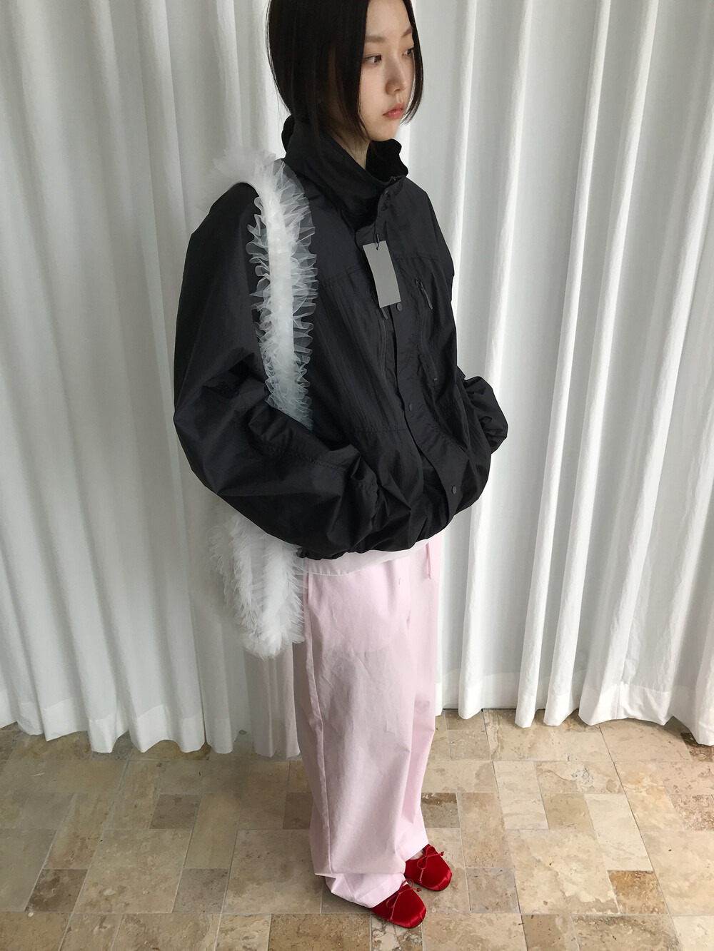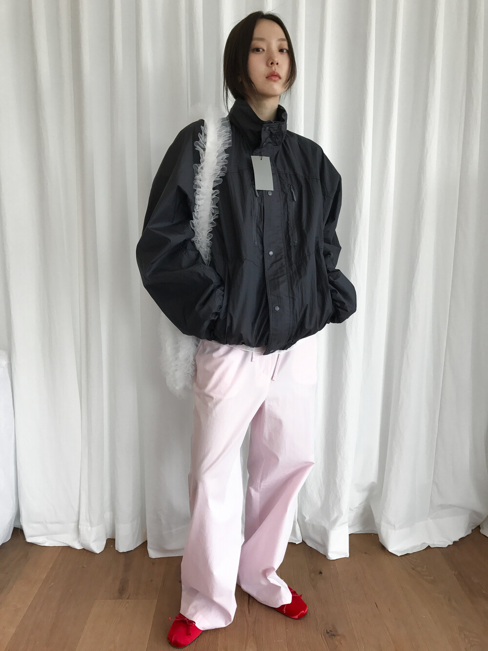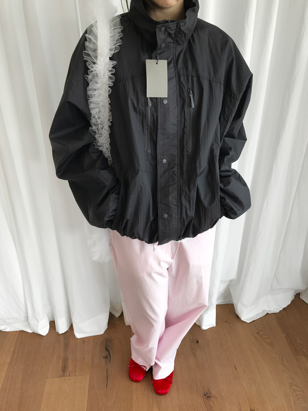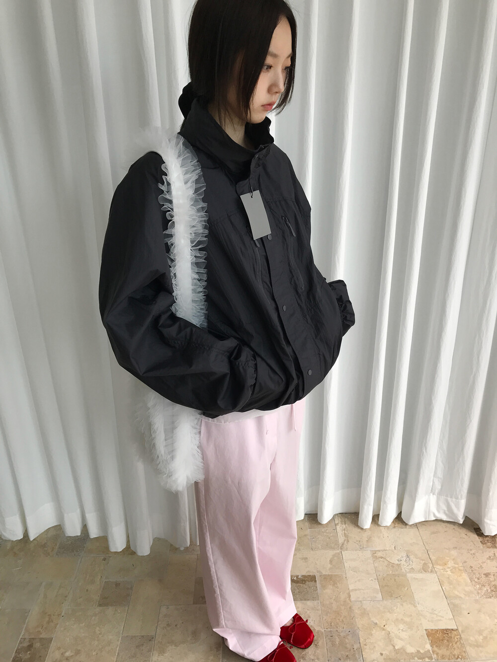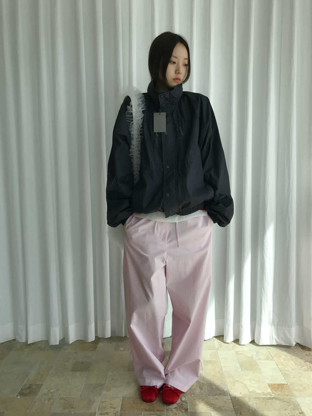 바스락거리는 나일론 소재 특유의 텍스처는 빛에 따라 은은한 광택이 살아나며,