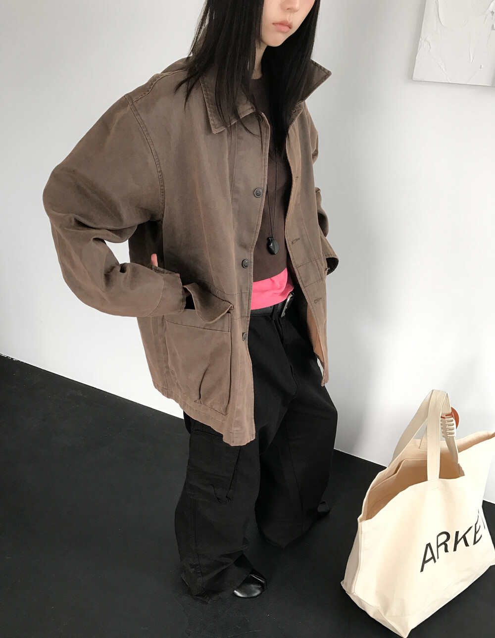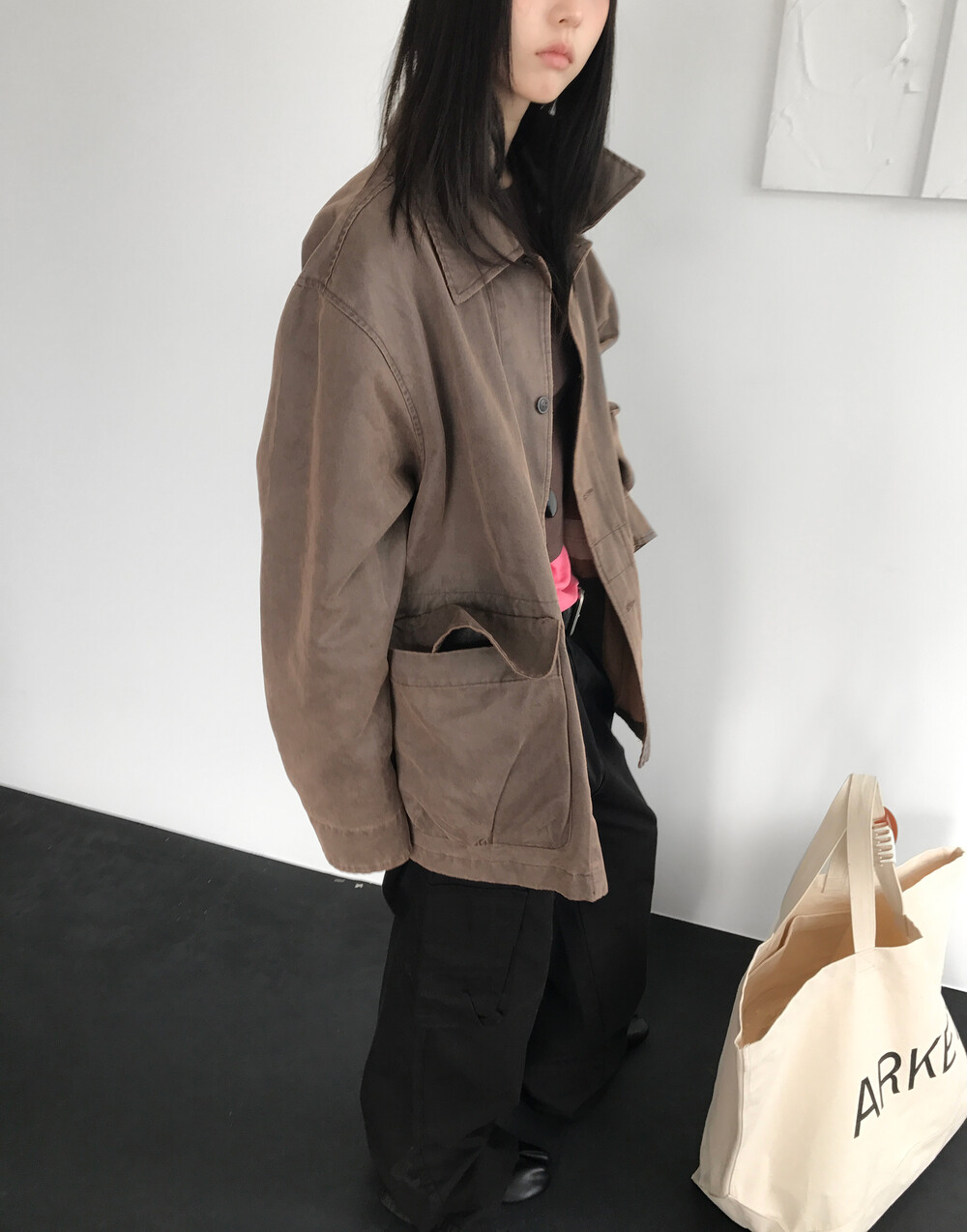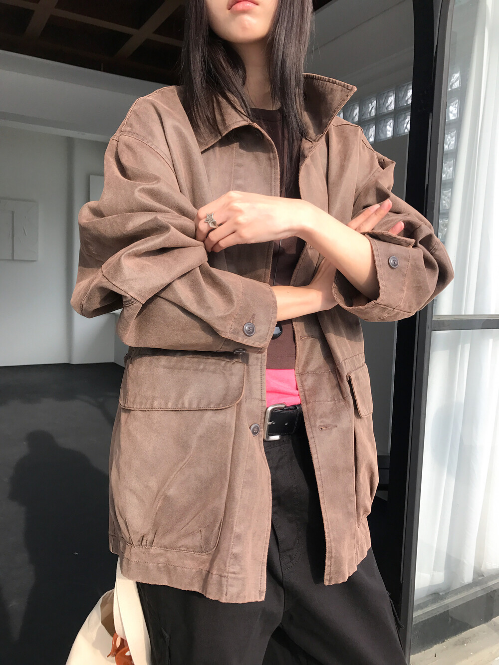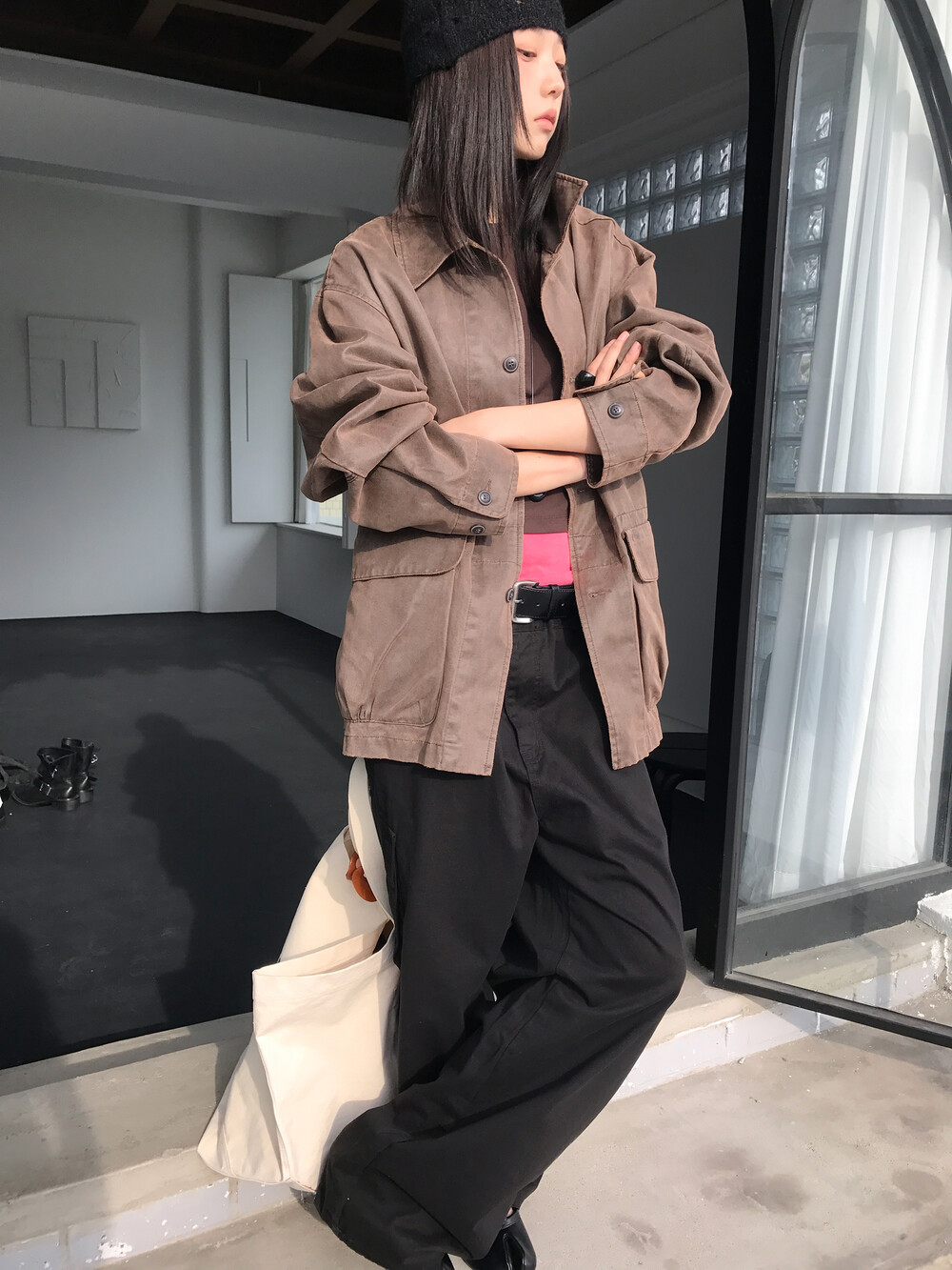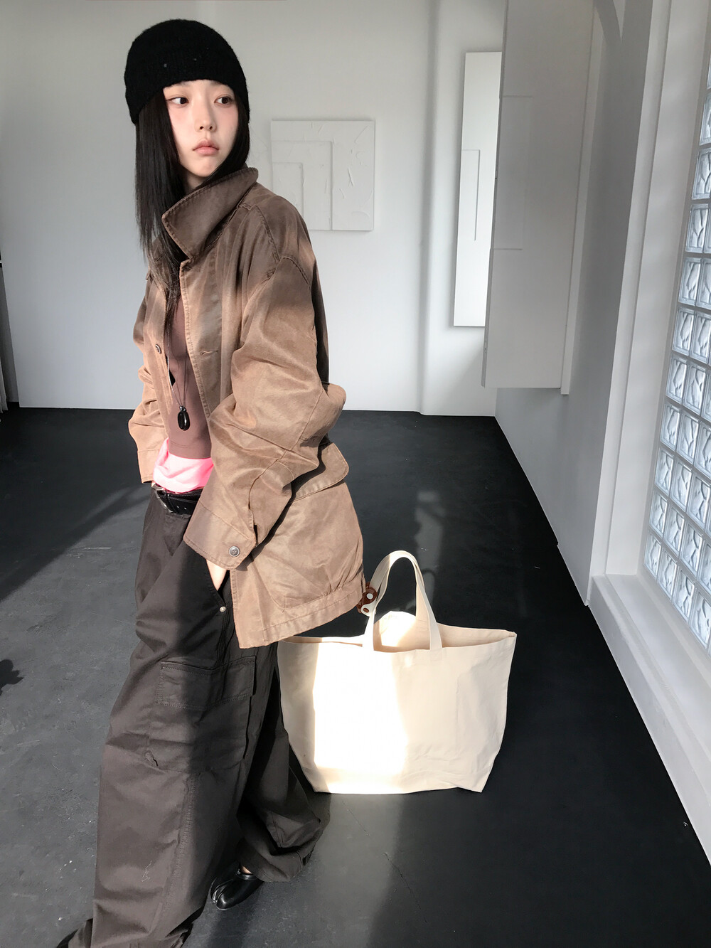 이 야상 자켓은 코튼 혼방 원단으로 제작되어 클래식한 왁스 자켓의 질감을 현대적으로 재현한 아이템이에요. 은은한 왁싱 처리감이 주는 빈티지한 무드와 동시에, 가볍고 관리가 쉬운 소재 덕분에 데일리로 즐기기 좋은 것이 특징이에요.