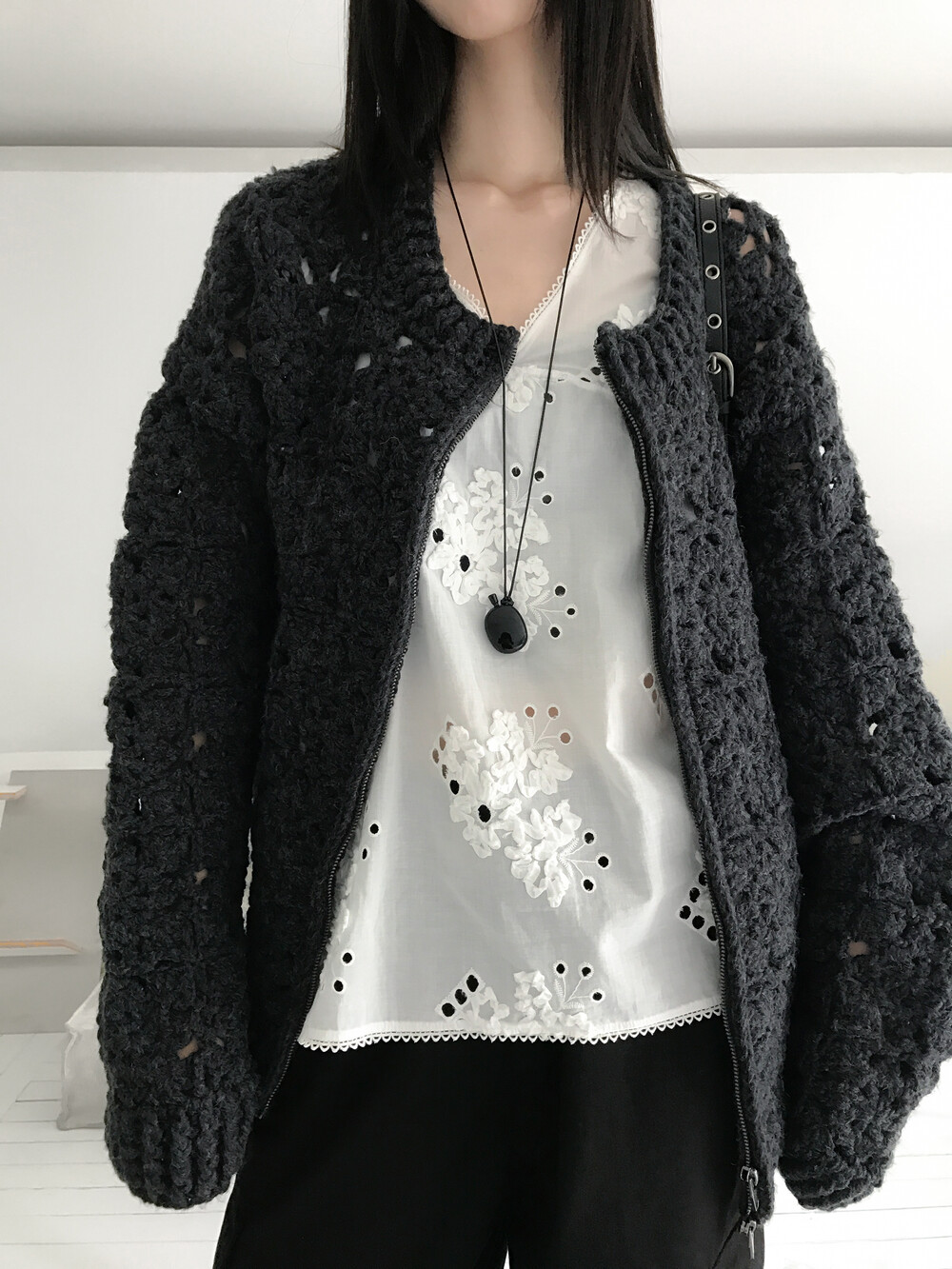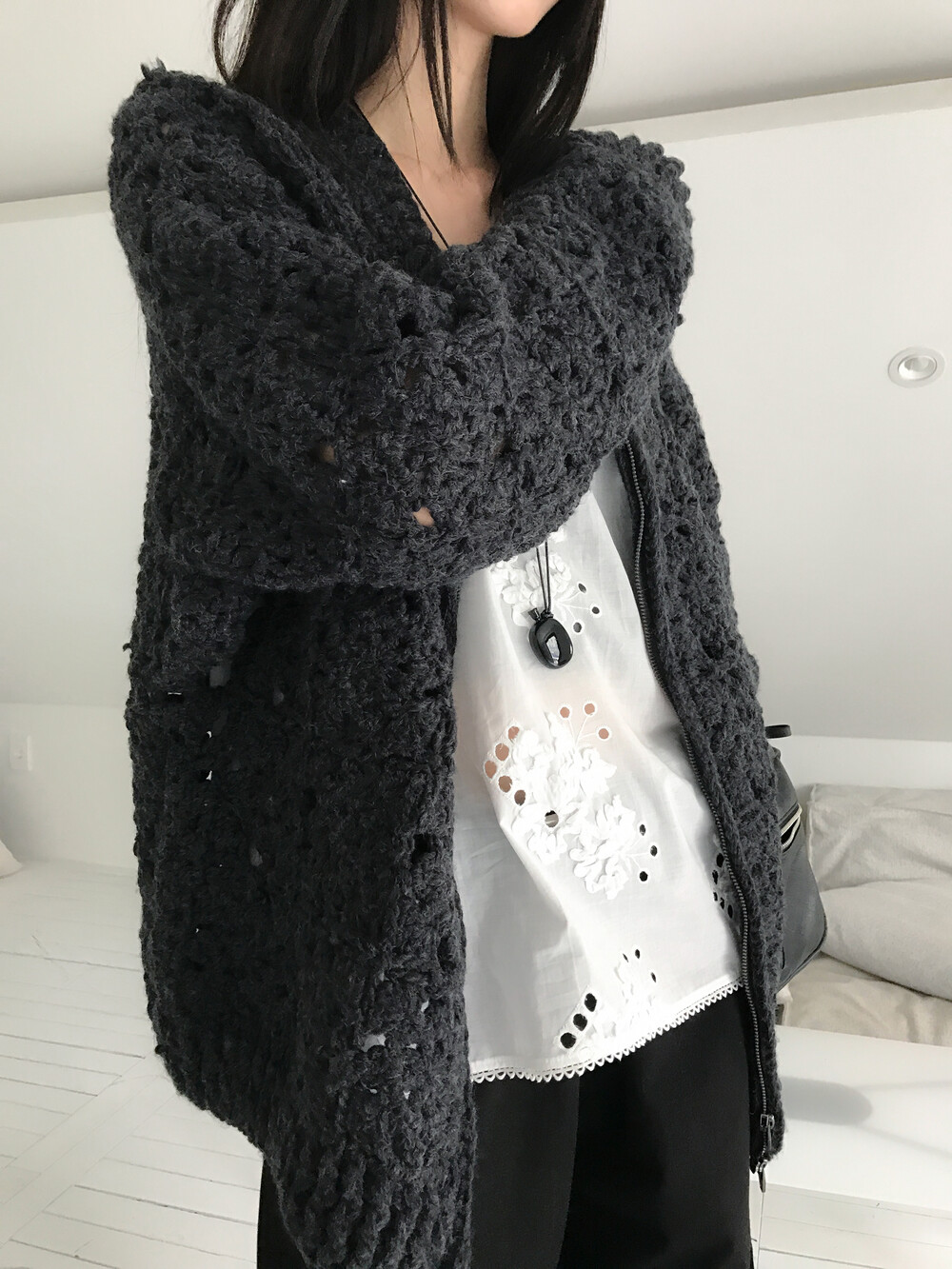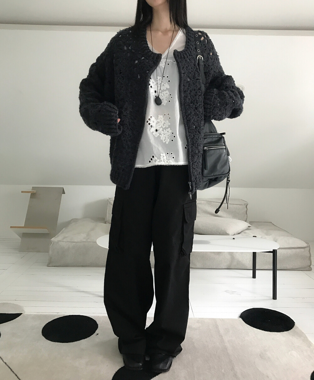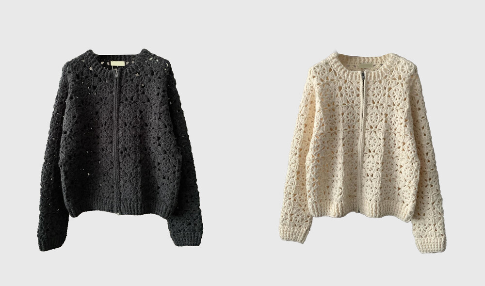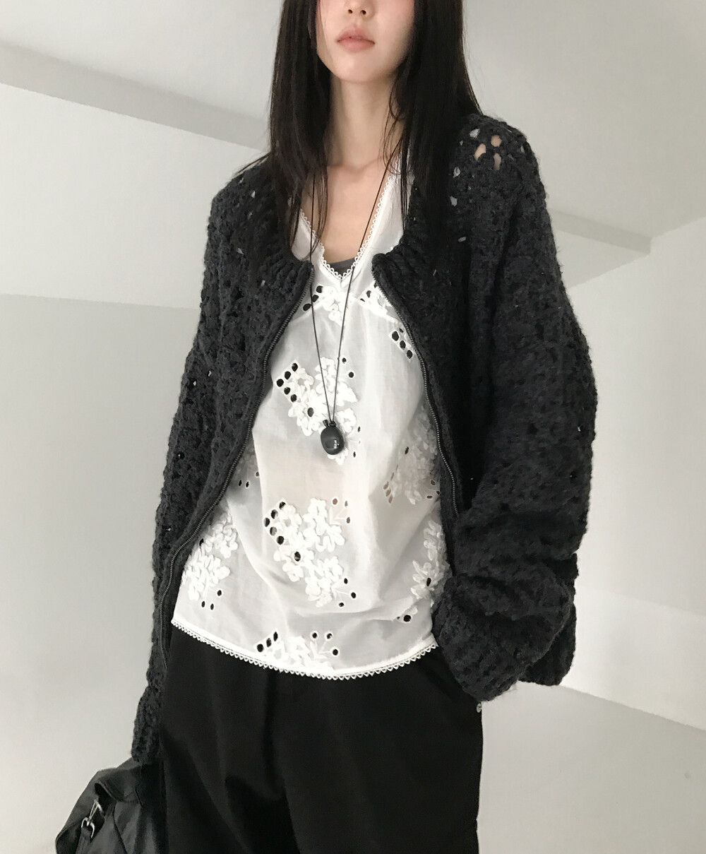 Blooming Crochet Knit Cardigan, Charcoal (2c)