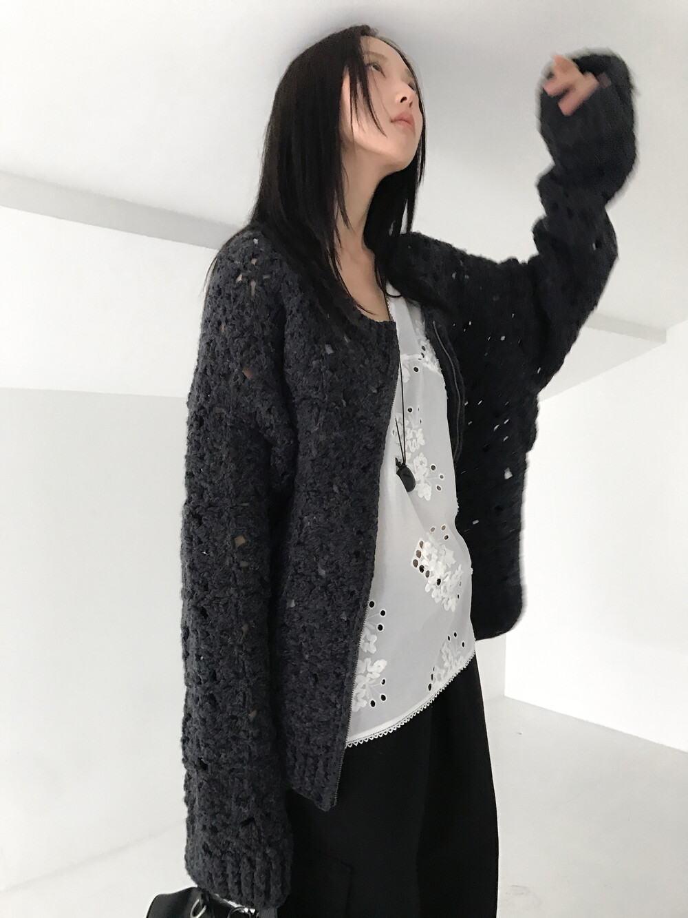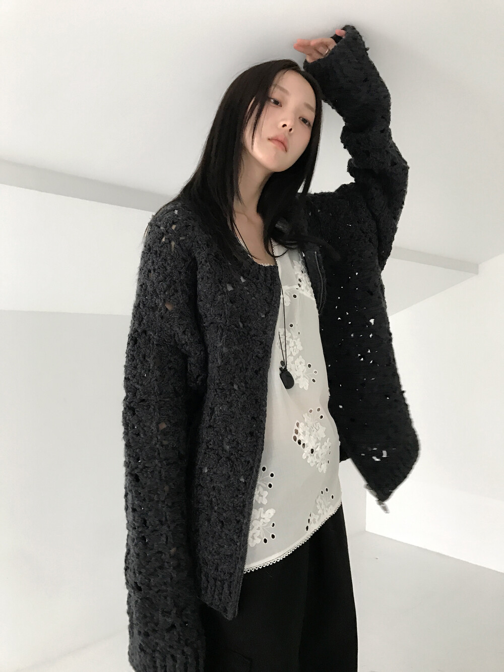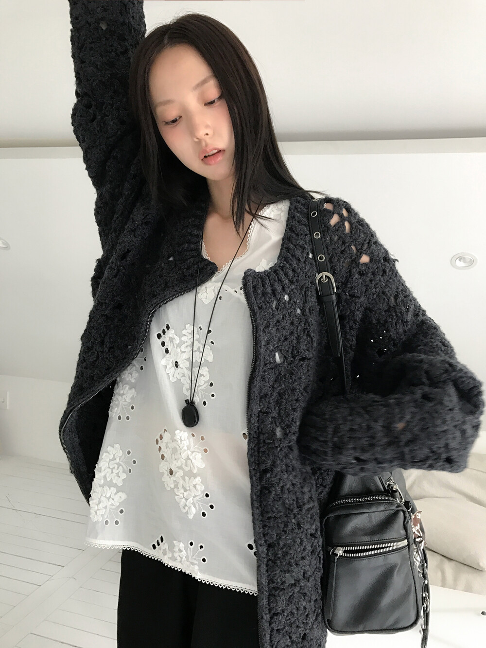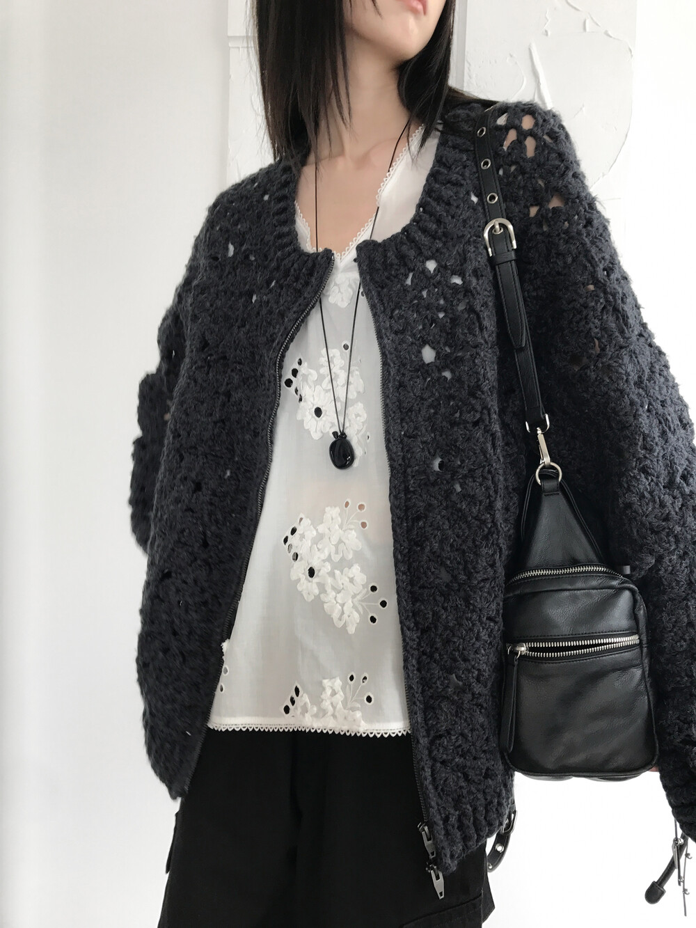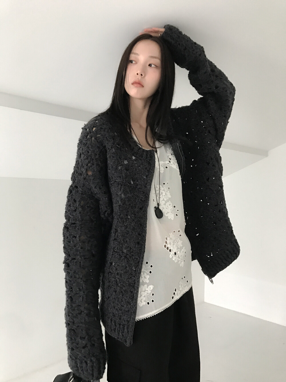 Blooming Crochet Knit Cardigan, Charcoal (2c)