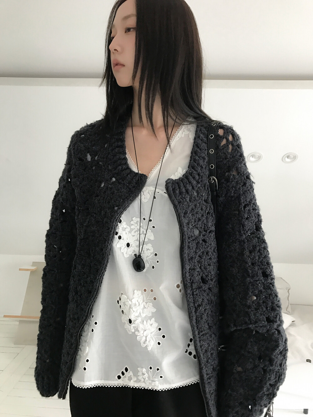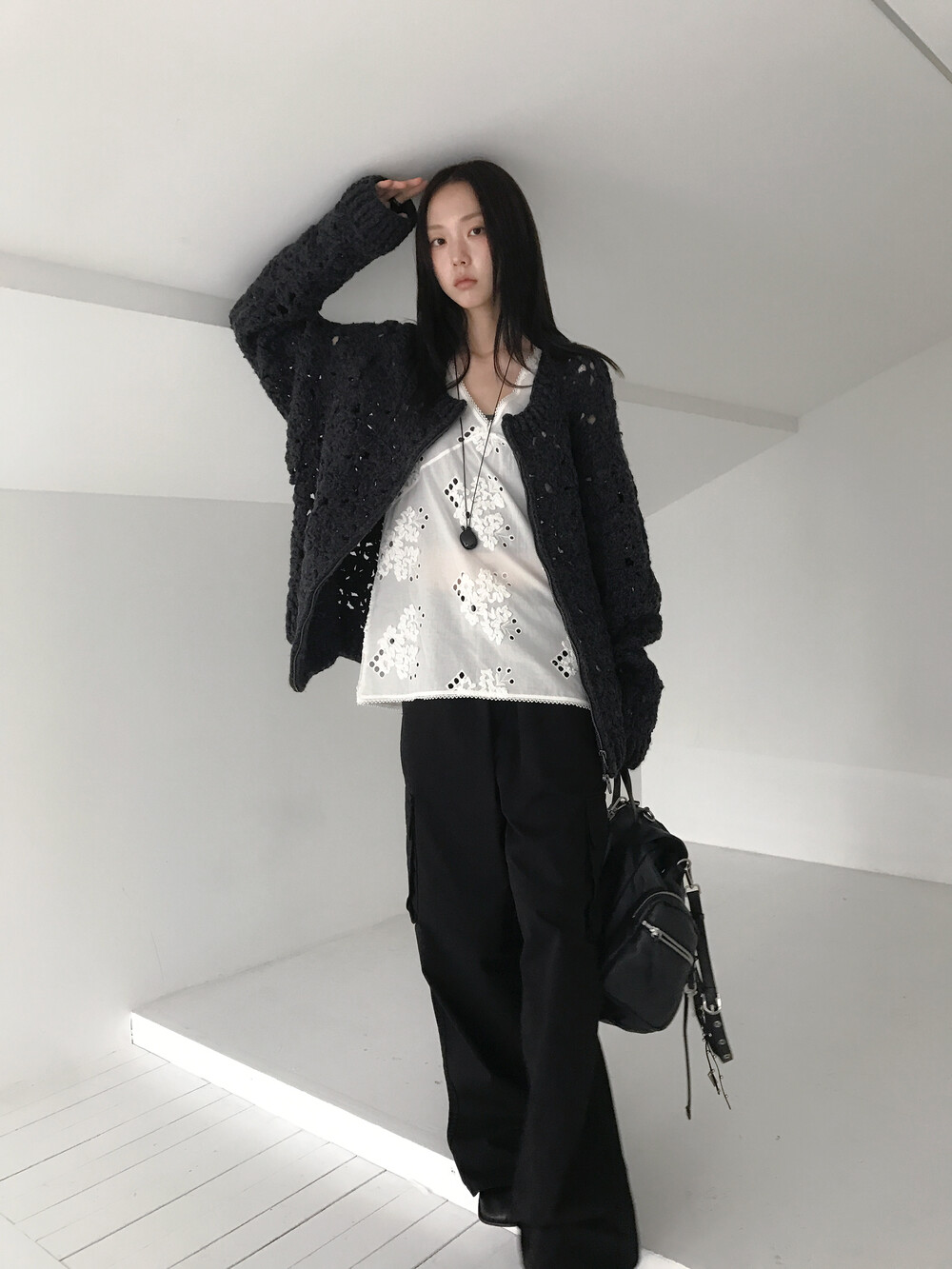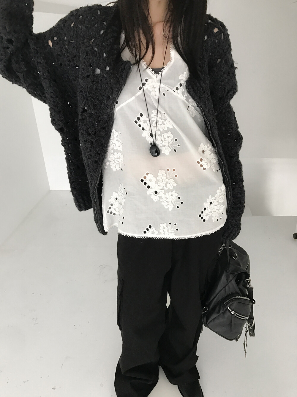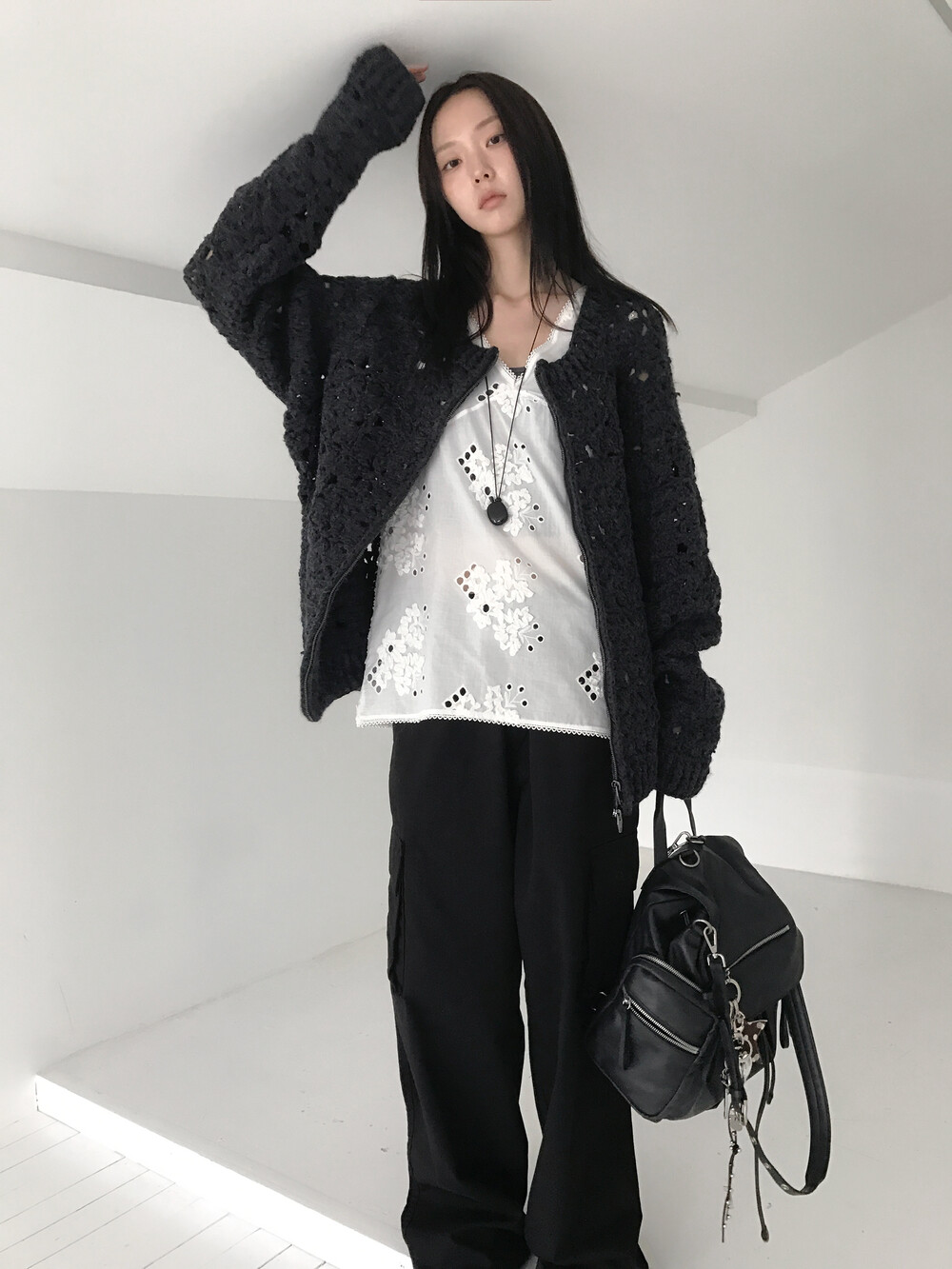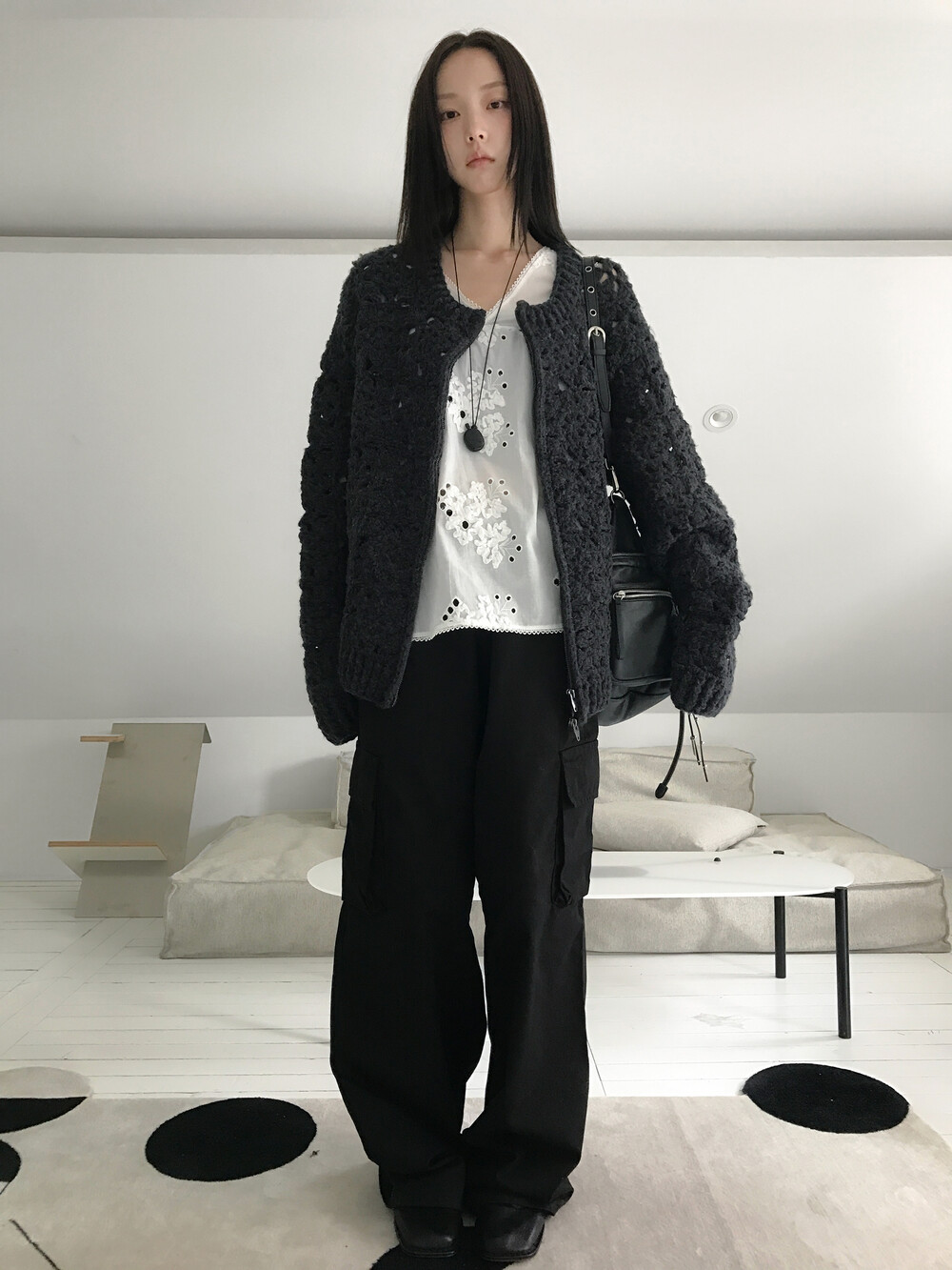 Blooming Crochet Knit Cardigan, Charcoal (2c)